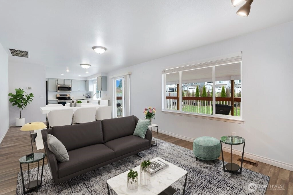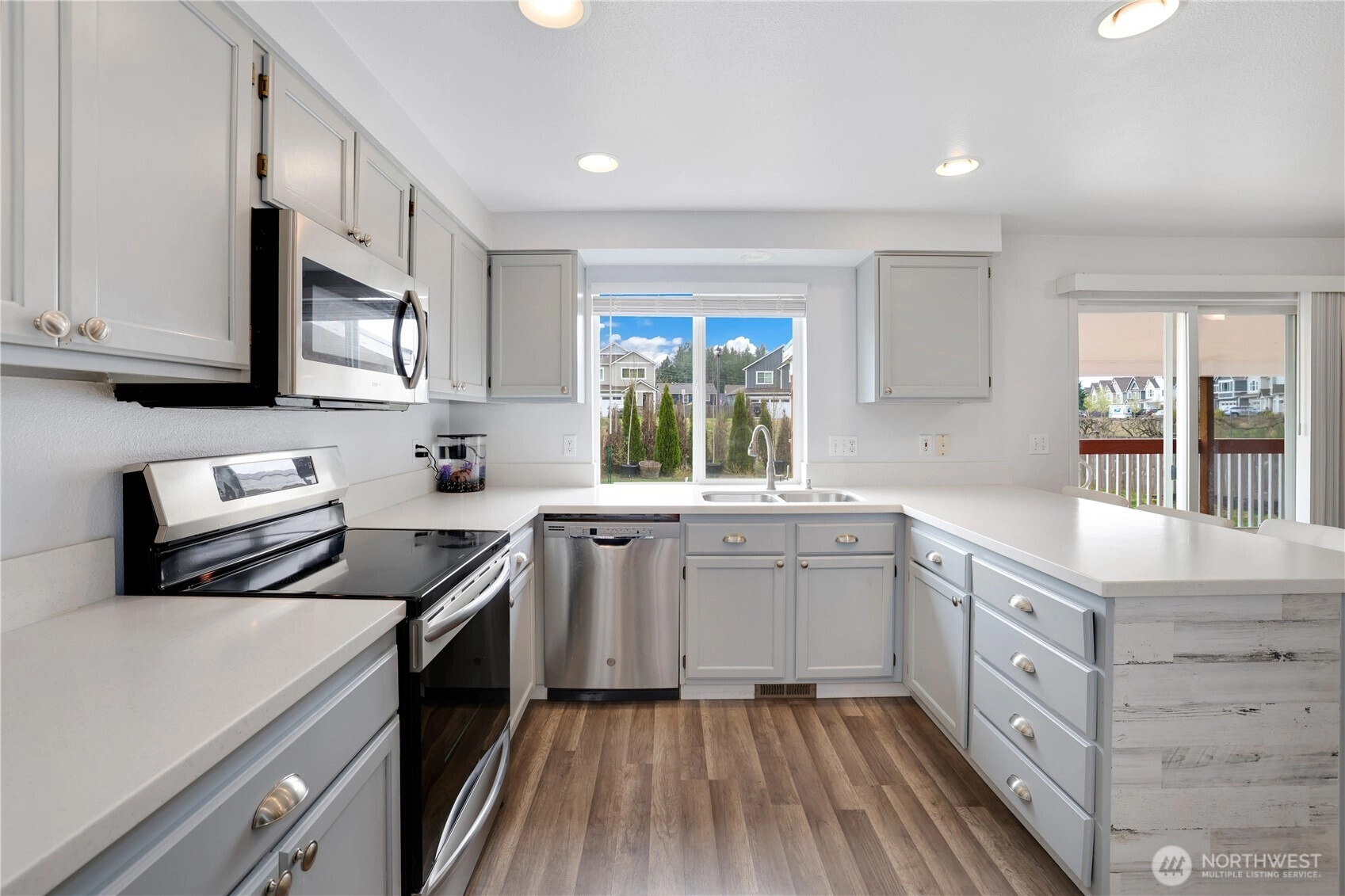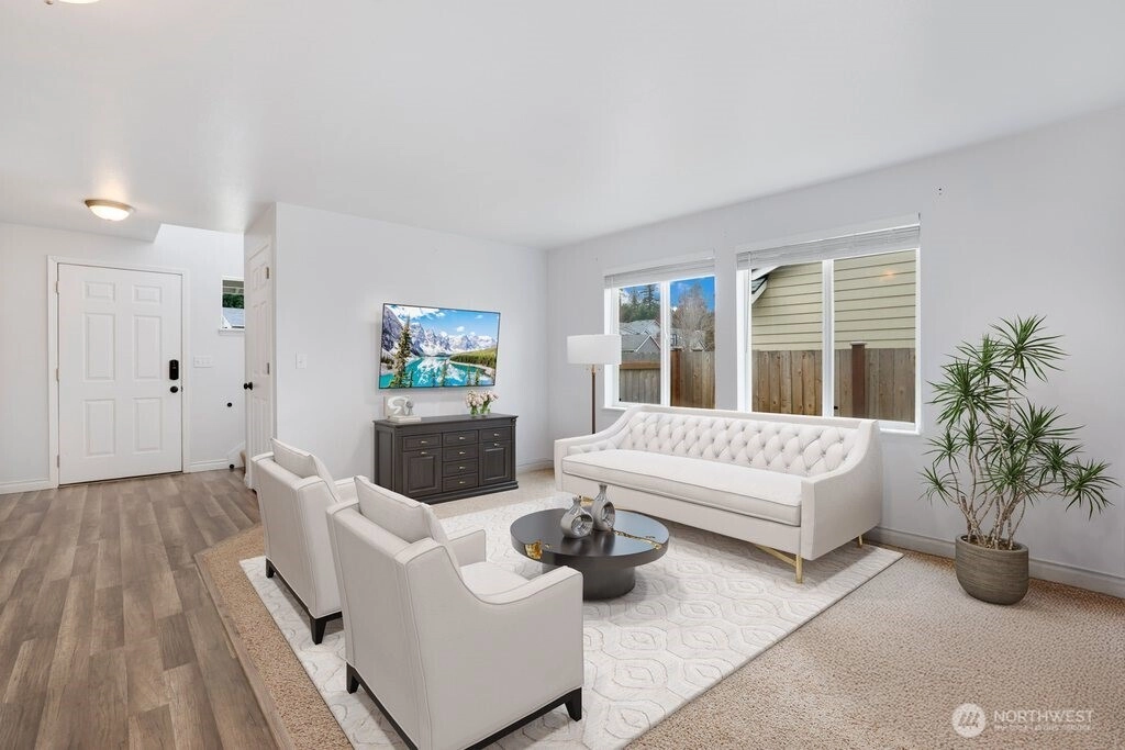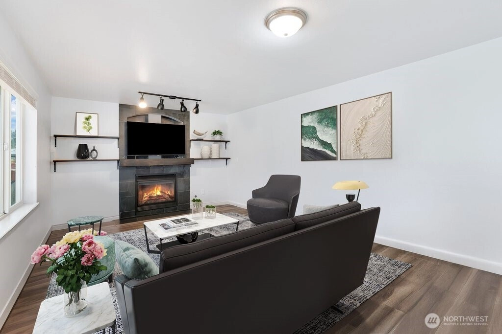 Craftsman cutie in the heart of Maple Valley! Upon entry, you are welcomed into a cozy living room with oversized windows. Well-appointed chef’s kitchen with breakfast bar connects to a sunny dining nook and family room. Large slider opens to a covered deck and spacious fenced backyard, perfect for gardening and lawn games. Laundry room and half bath complete the space. Upstairs primary retreat with 2-sided fireplace nestled between the bedroom and bathroom with dual vanities and soaking tub. 3 additional bedrooms, perfect for an office or guest space. 2-car garage with EV charger, A/C. Settled in a cul-de-sac and ideally located near parks, shopping and highways. Tahoma Schools. Mortgage savings may be available for buyers of this listing!