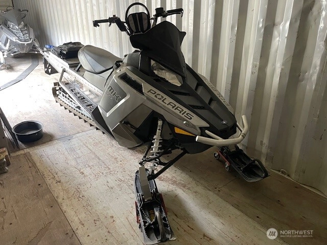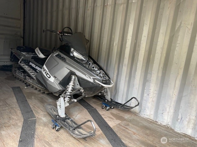 6 Acres with Conex box storage and 2 Polaris snowmobiles.
