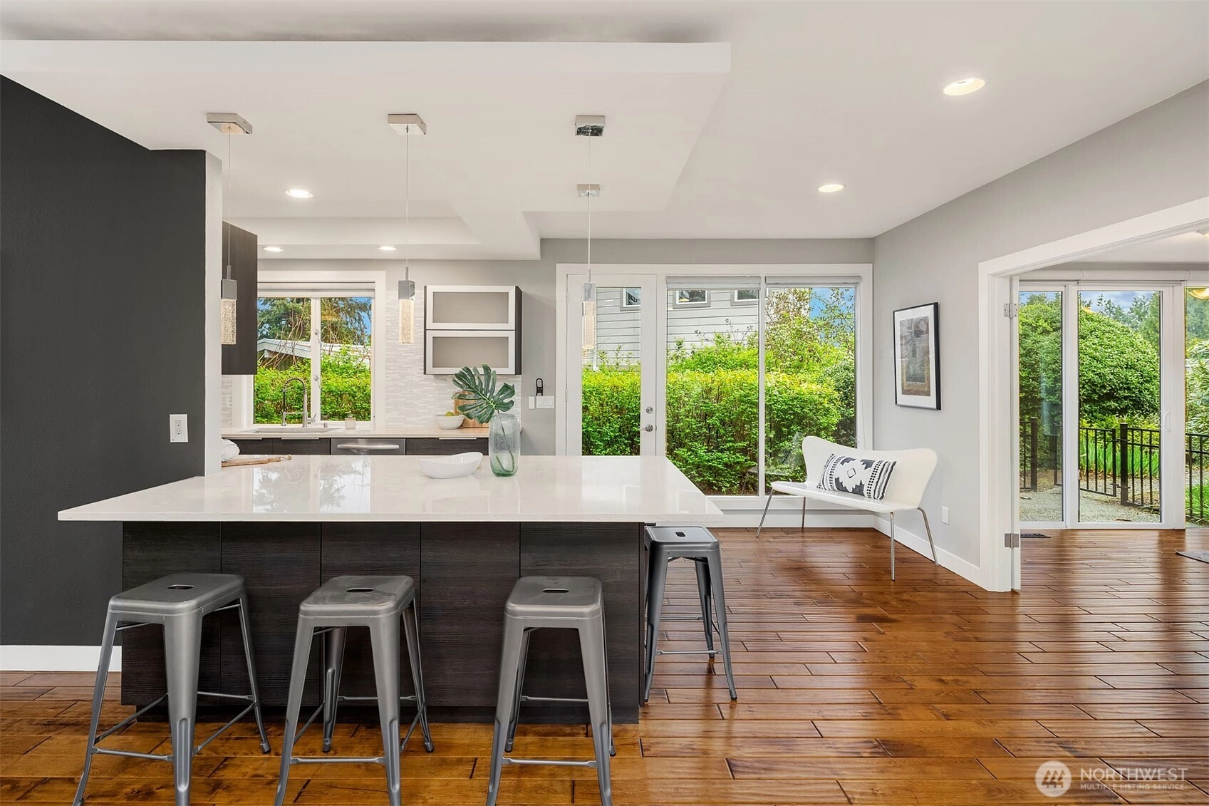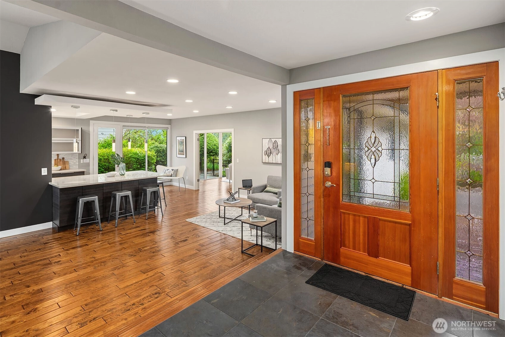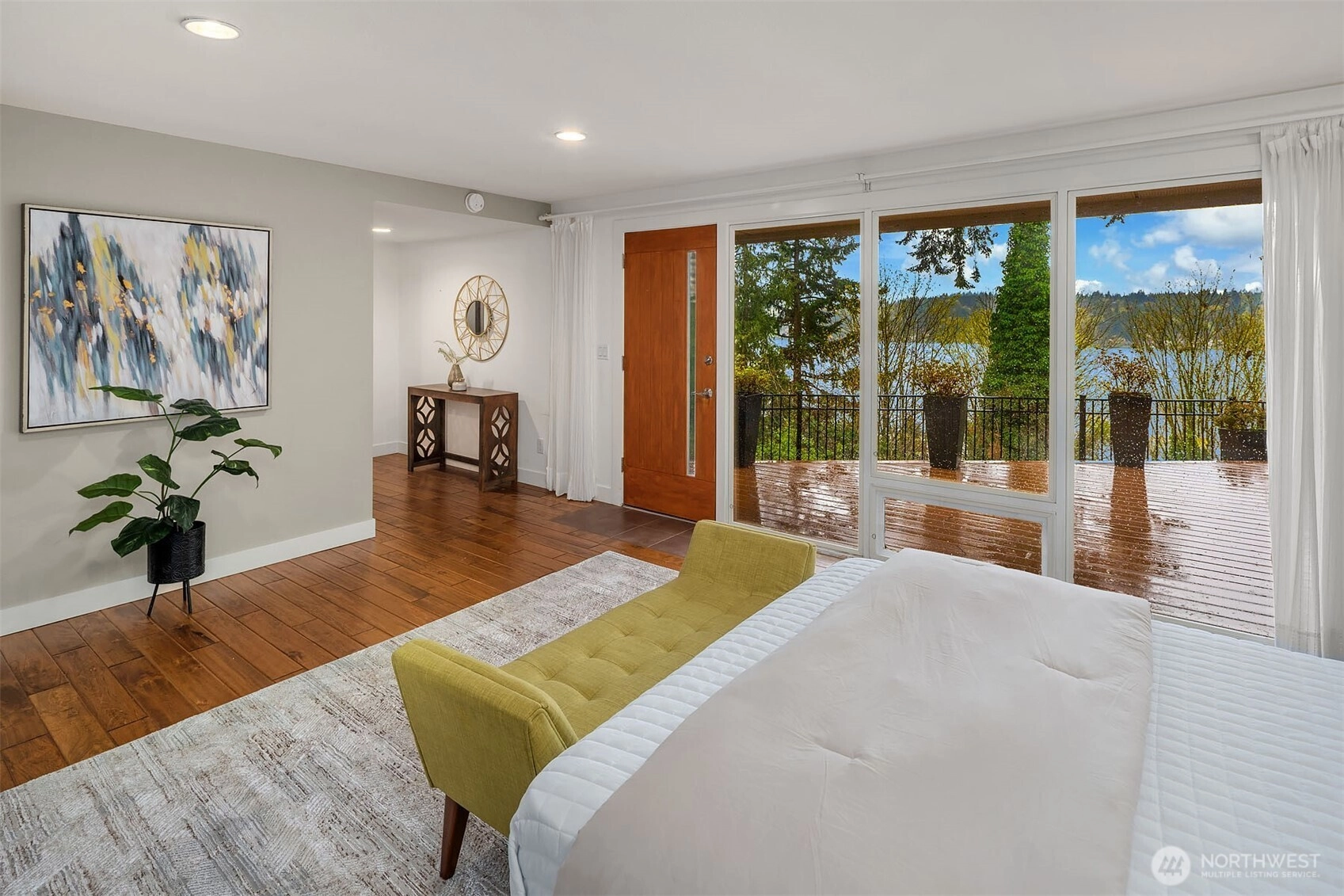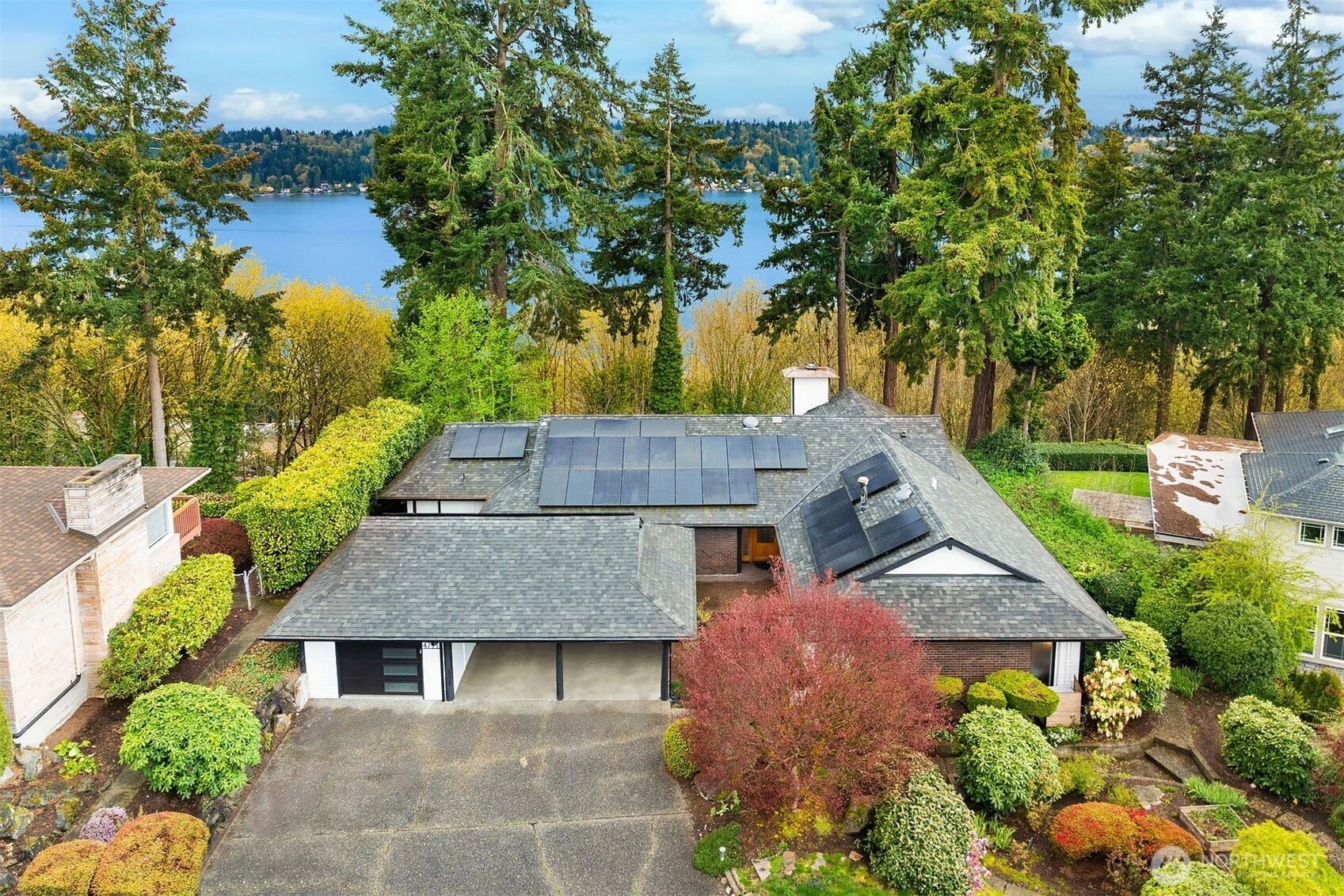 Bask in natural light and western-facing views of Lake Washington from this stunning east-facing retreat in the top-rated Bellevue School District. This thoughtfully remodeled 4-bed, 3-bath rambler offers 2,730 SF of level living surrounded by lush gardens and serene outdoor spaces. A spacious bonus/flex room provides versatility for a 5th bedroom, office, or media room. With an open layout, abundant light, and seamless indoor-outdoor flow, this home blends comfort, elegance, and natural beauty.