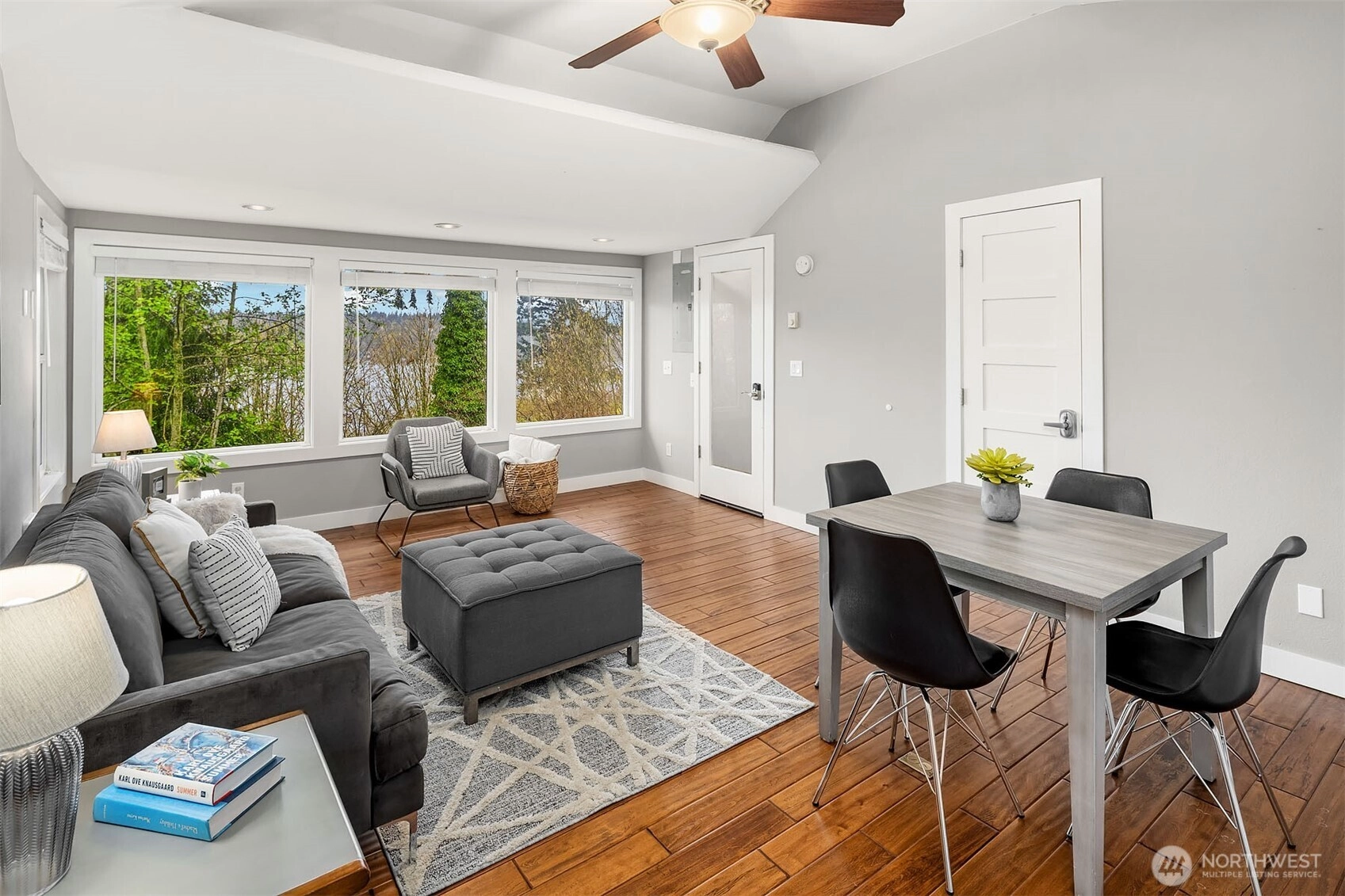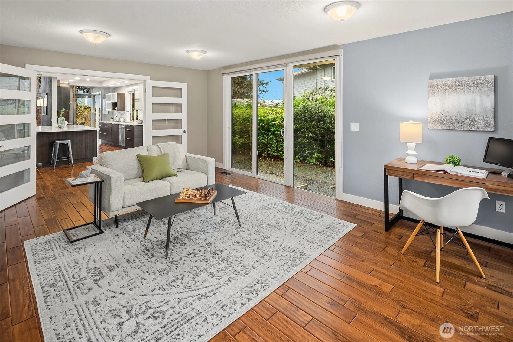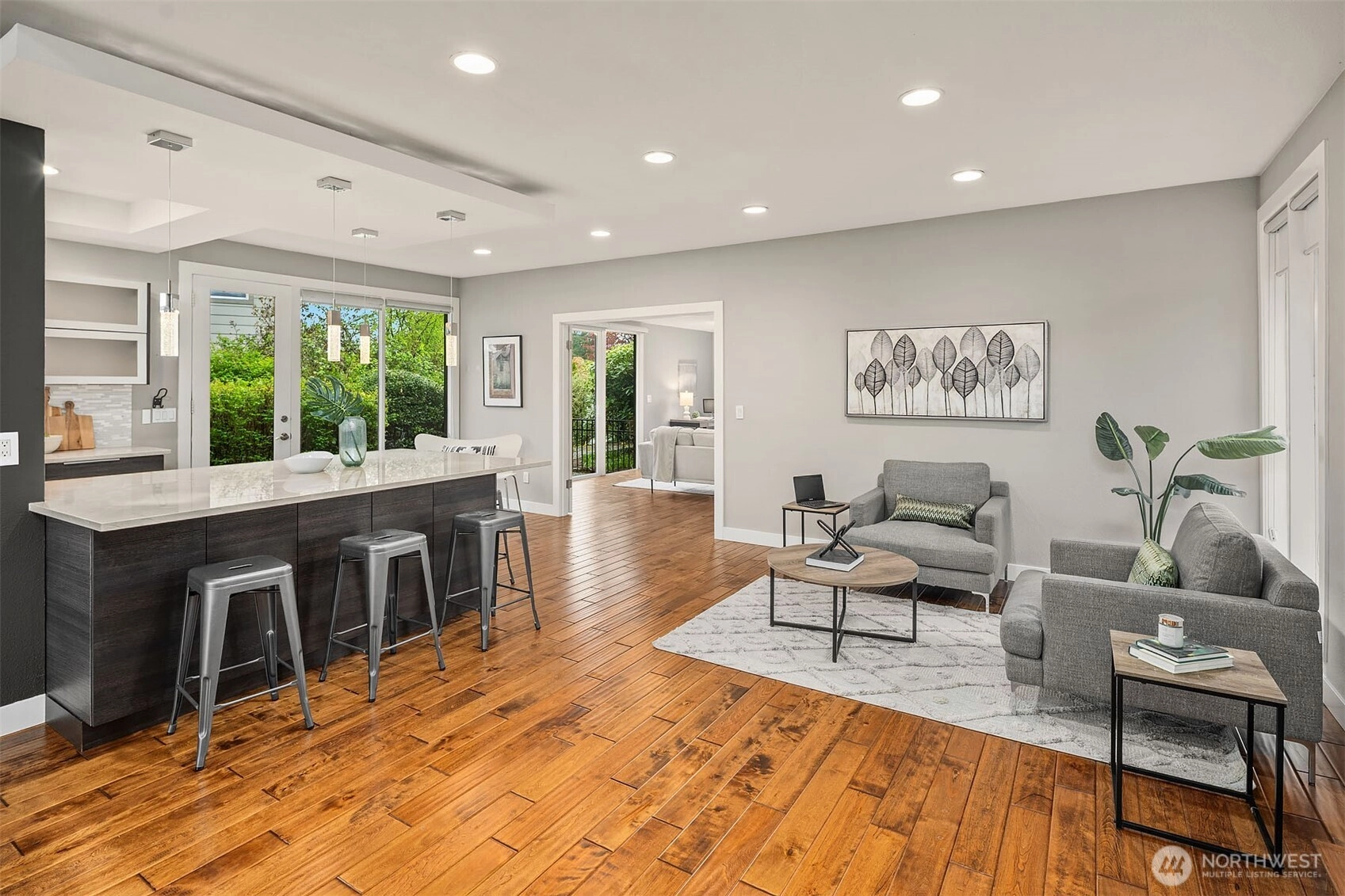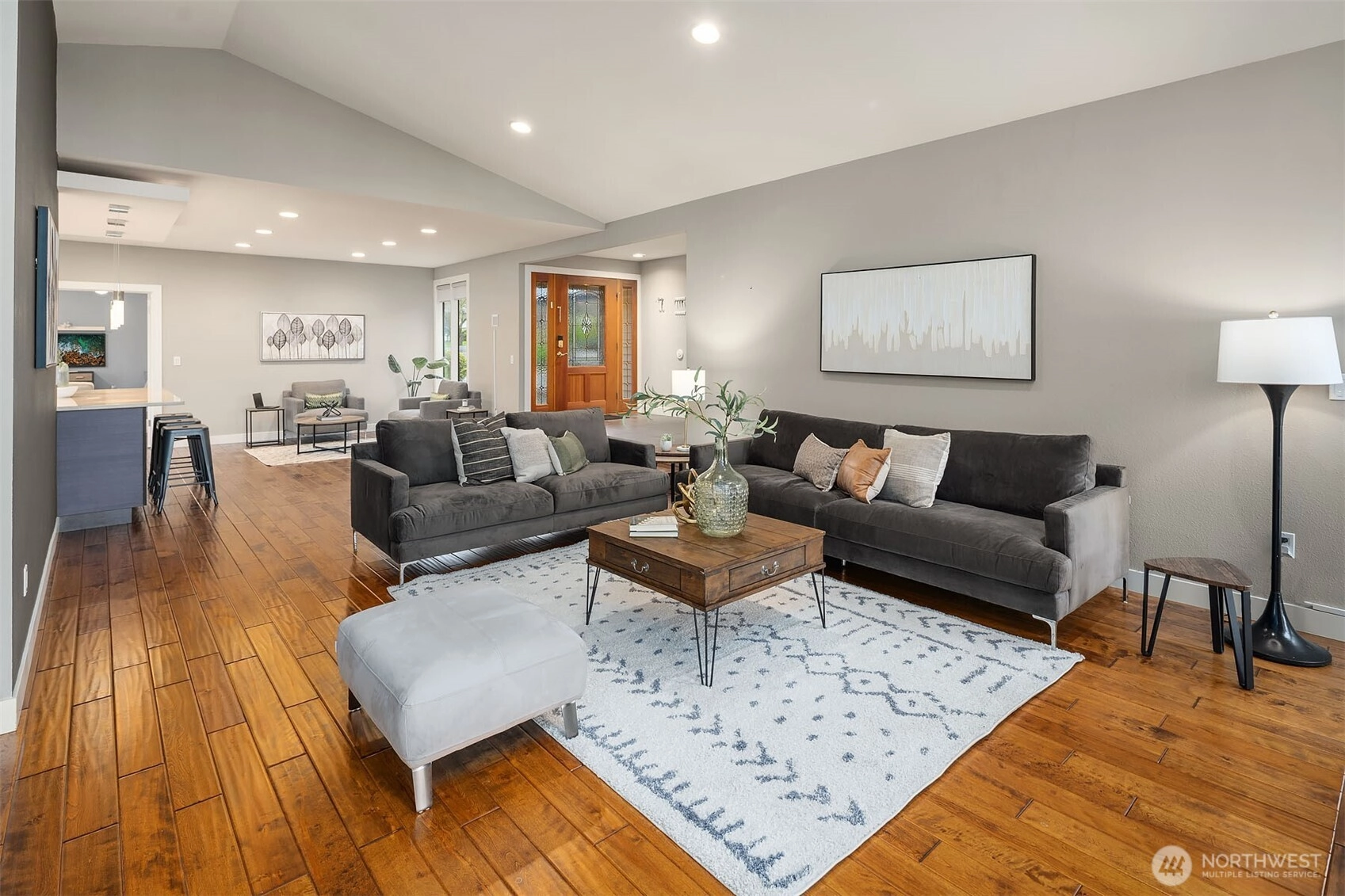Bask in natural light and western-facing views of Lake Washington from this stunning east-facing retreat in the top-rated Bellevue School District. This thoughtfully remodeled 4-bed, 3-bath rambler offers 2,730 SF of level living surrounded by lush gardens and serene outdoor spaces. A spacious bonus/flex room provides versatility for a 5th bedroom, office, or media room. With an open layout, abundant light, and seamless indoor-outdoor flow, this home blends comfort, elegance, and natural beauty.
