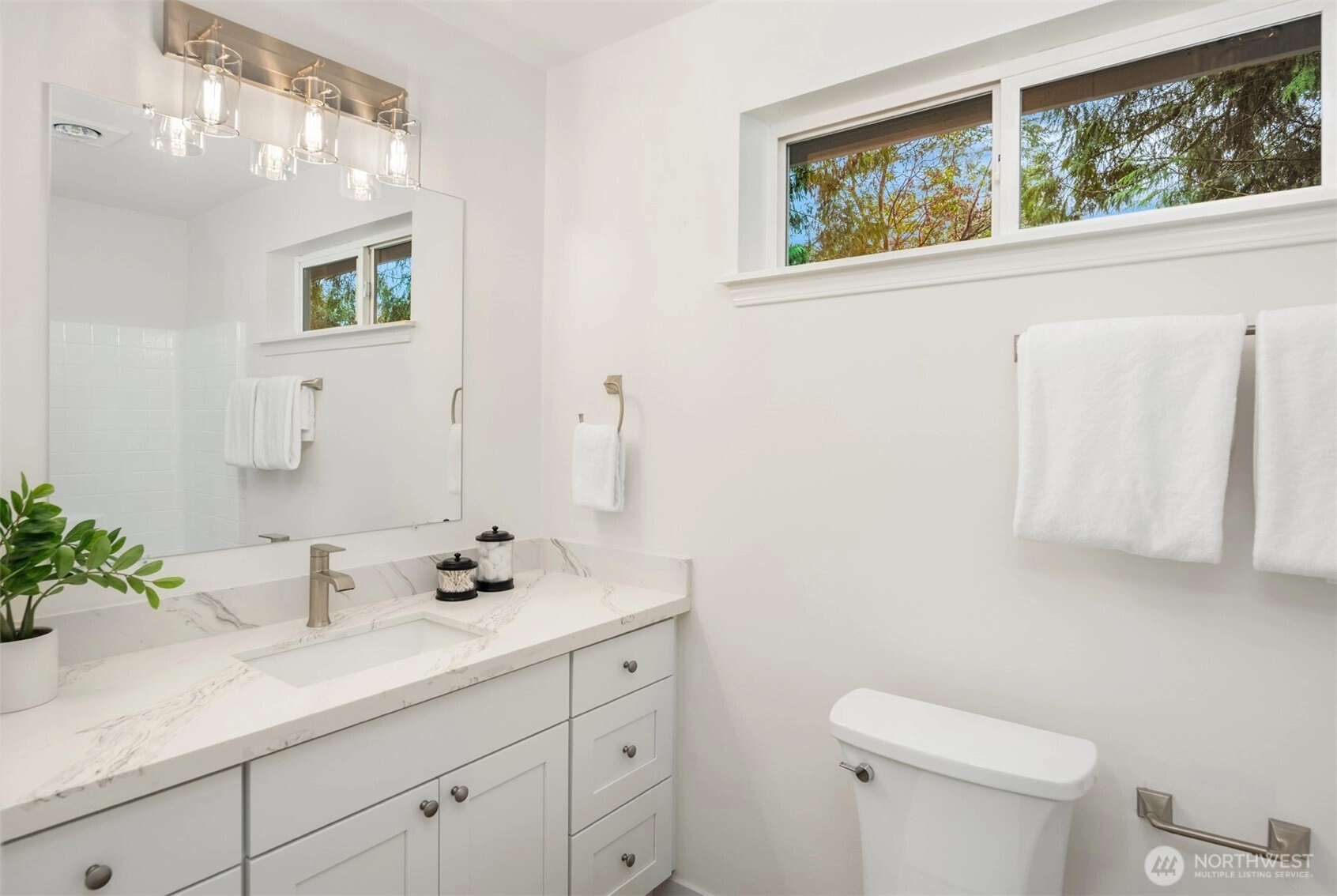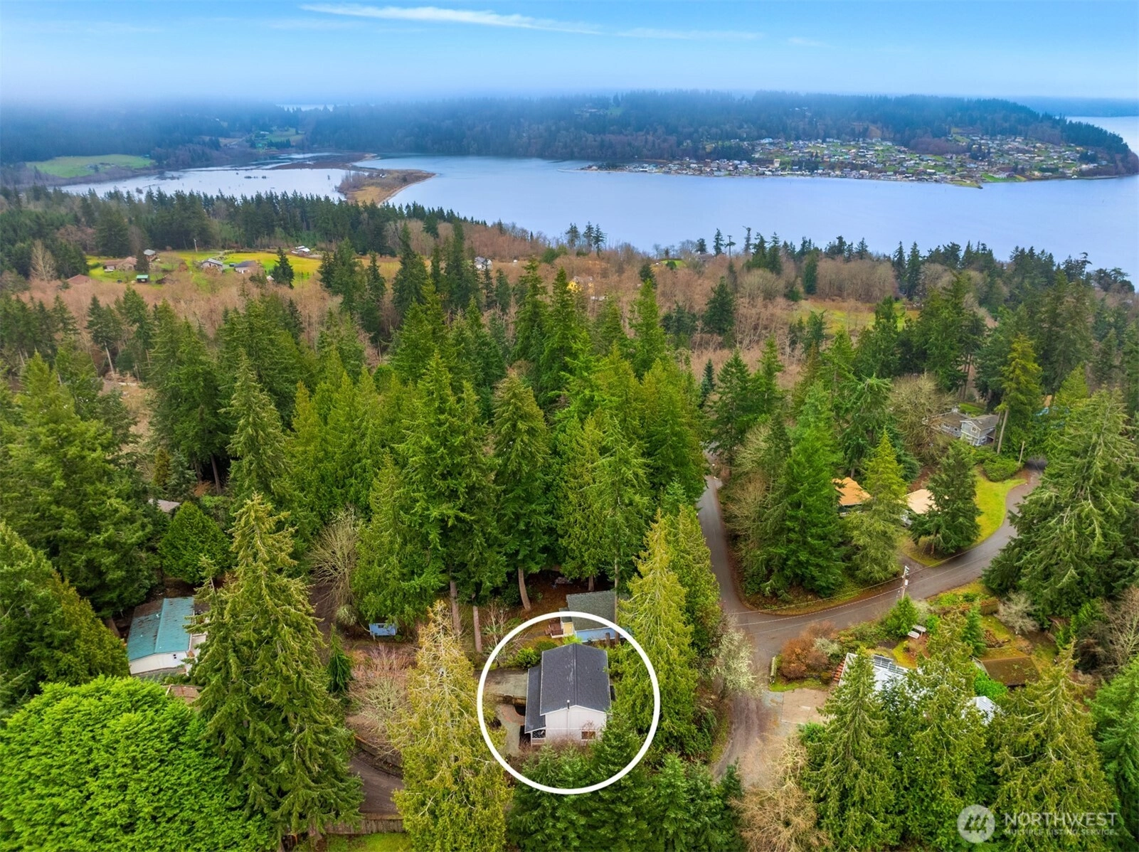 Tastefully updated home nestled in the trees of Scatchet Head. As you enter, the covered front porch invites you to relax, perfect for reading and enjoying the expansive yard. The main floor boasts a great room with a wood burning stove, 3 sides of windows, LVP floors, updated kitchen with new appliances, quartz counters, and a half bath. Upstairs you will find 3 large bedrooms and a full bath, including the primary suite with vaulted ceilings and dual closets. Laundry is conveniently located on the upper floor. Single car attached garage, new roof, and an oversized shed for storage. Quiet dead-end street, quick water access with private community beach, clubhouse, and pool.