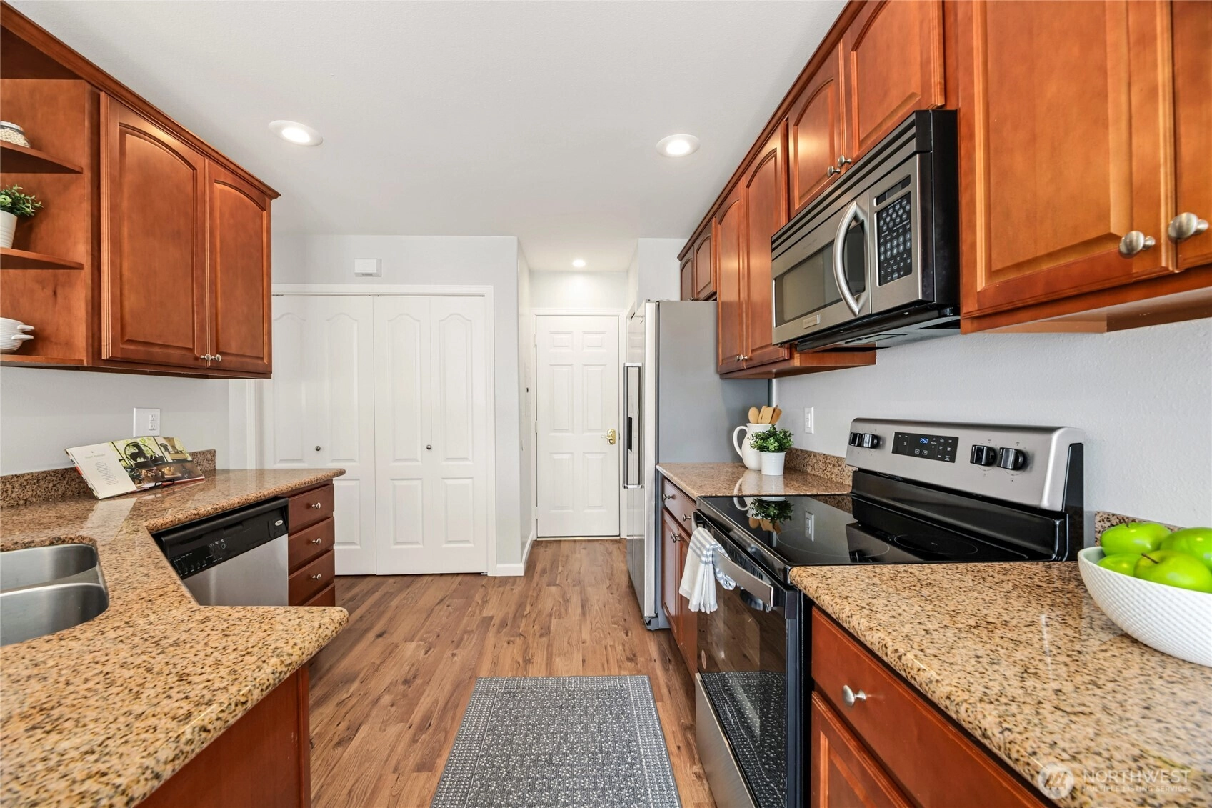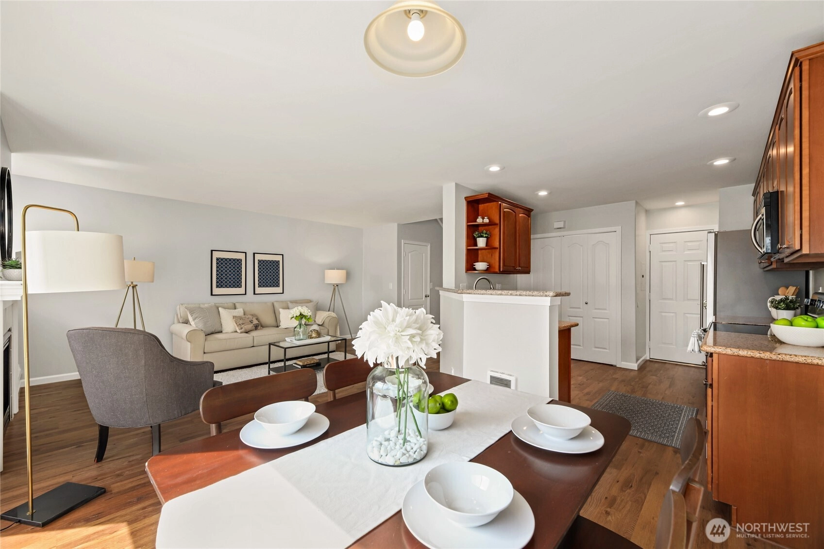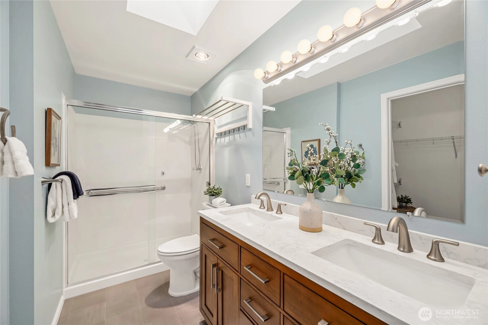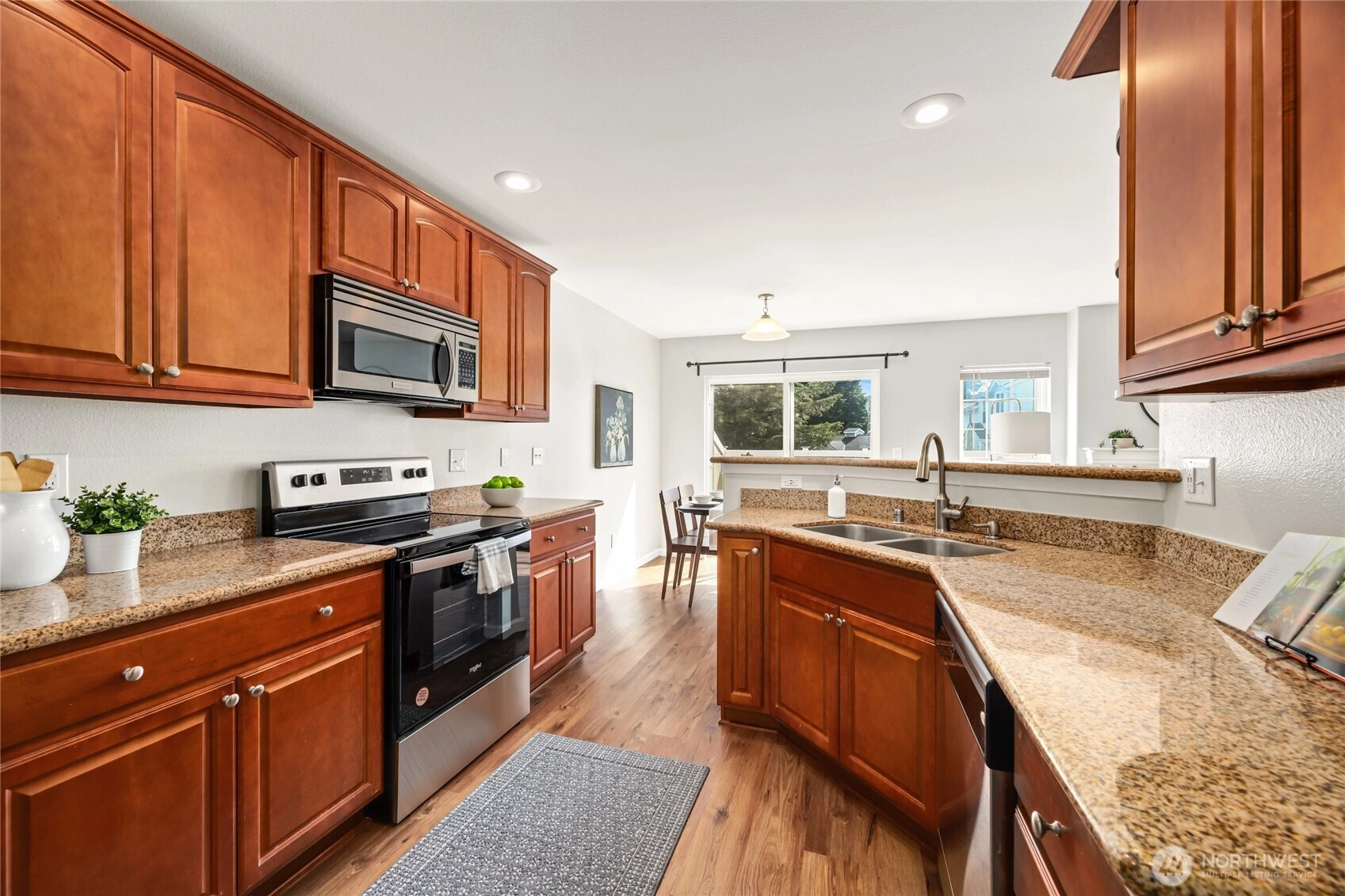 This stunning 2 story beautiful home is pre-inspected & move-in ready! The spacious layout offers plenty of natural light & updated finishes throughout. Sleek granite counters & SS appliances add sophisticated luxury to the updated kitchen. The inviting open living room has gas fireplace & is the perfect spot to relax. On sunny days entertain on your fenced patio just off the dining room. The primary features a spacious walk-in closet & elegant double quartz vanity bathroom with bright skylight. With 3 bathrooms, LVP Flooring throughout, full-size washer/dryer & attached garage with storage it’s true convenience. The icing on top is a well-managed HOA, cabana & sports court. So Everett w/ easy Boeing, Paine Field & freeway access.