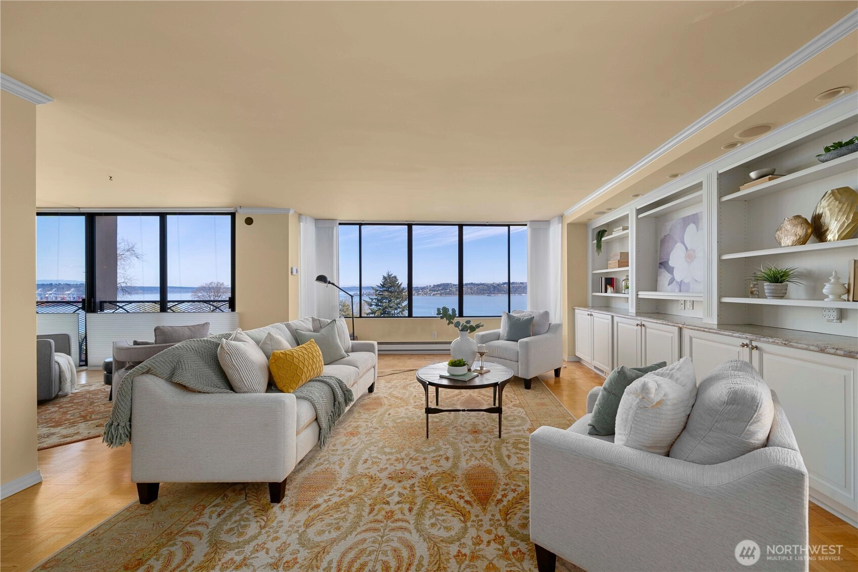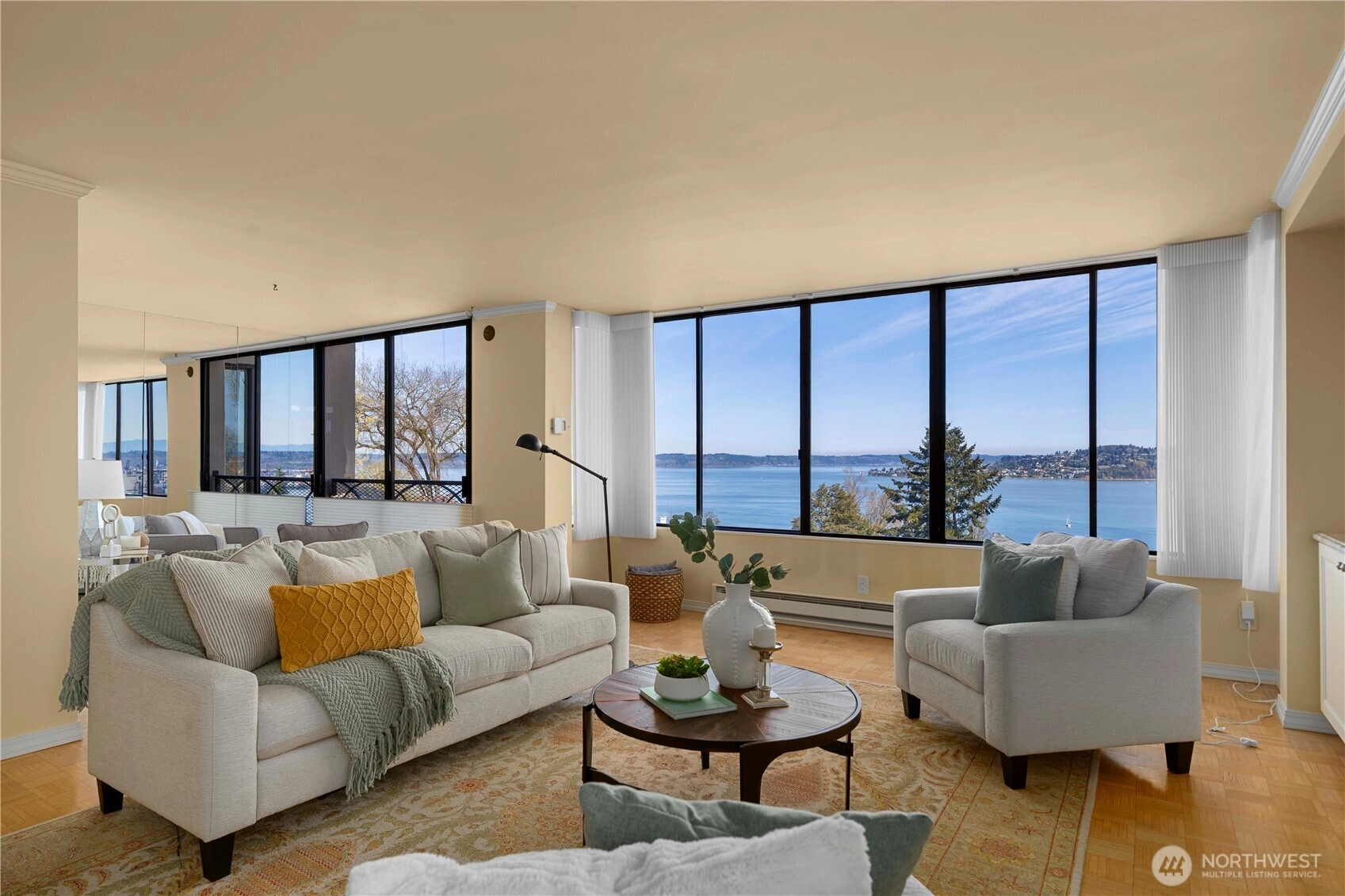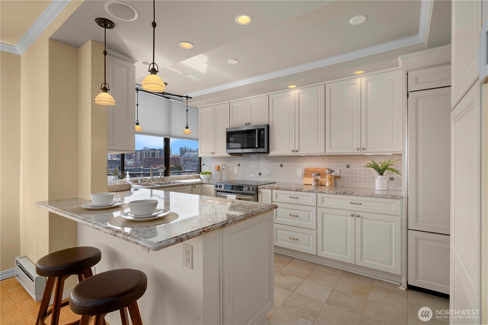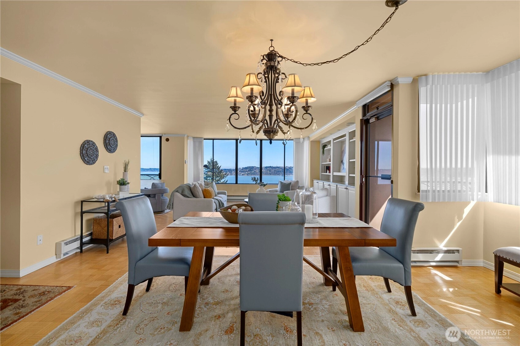 LAST CHANCE! Seller wants to sell! Don't let this deal get away. From the sunrise over Mt Rainier to the moon rise over Commencement Bay, The views are captivating! 180 degree views from 3 sides await the new owner of this light filled 6th floor unit. Enjoy the privacy, quiet and walkable Stadium District. Close to shopping, eateries and transit. Beautifully updated with high end finishes this unit offers 3 bedrooms and 2 baths in a secure and well maintained building. 2 covered parking spaces, common patio, exercise room and sauna round out the amenities. A rare opportunity! The large primary suite has a full bath and 2 closets. All appliances are included. Blinds in LR AND DR are programmable