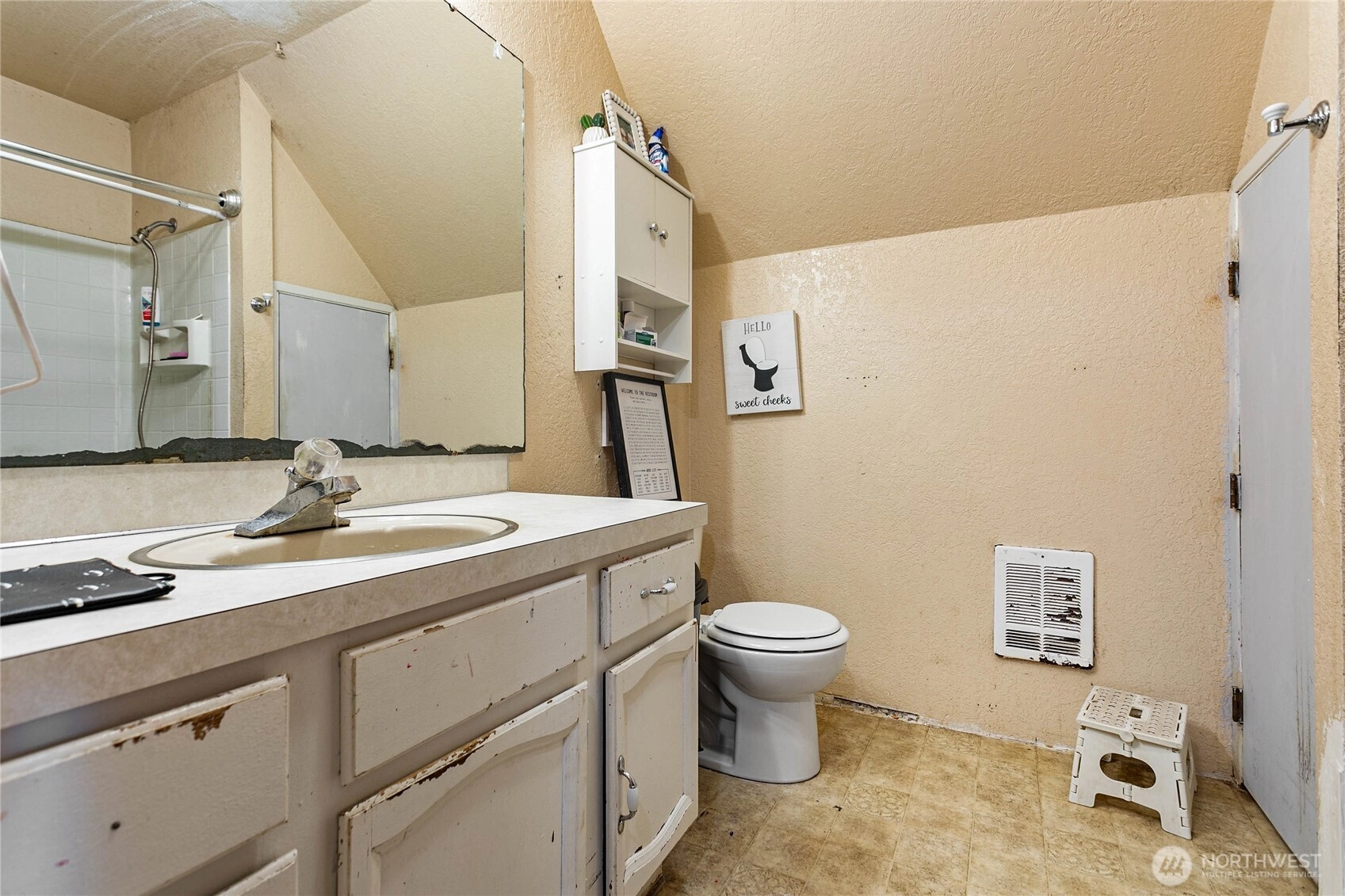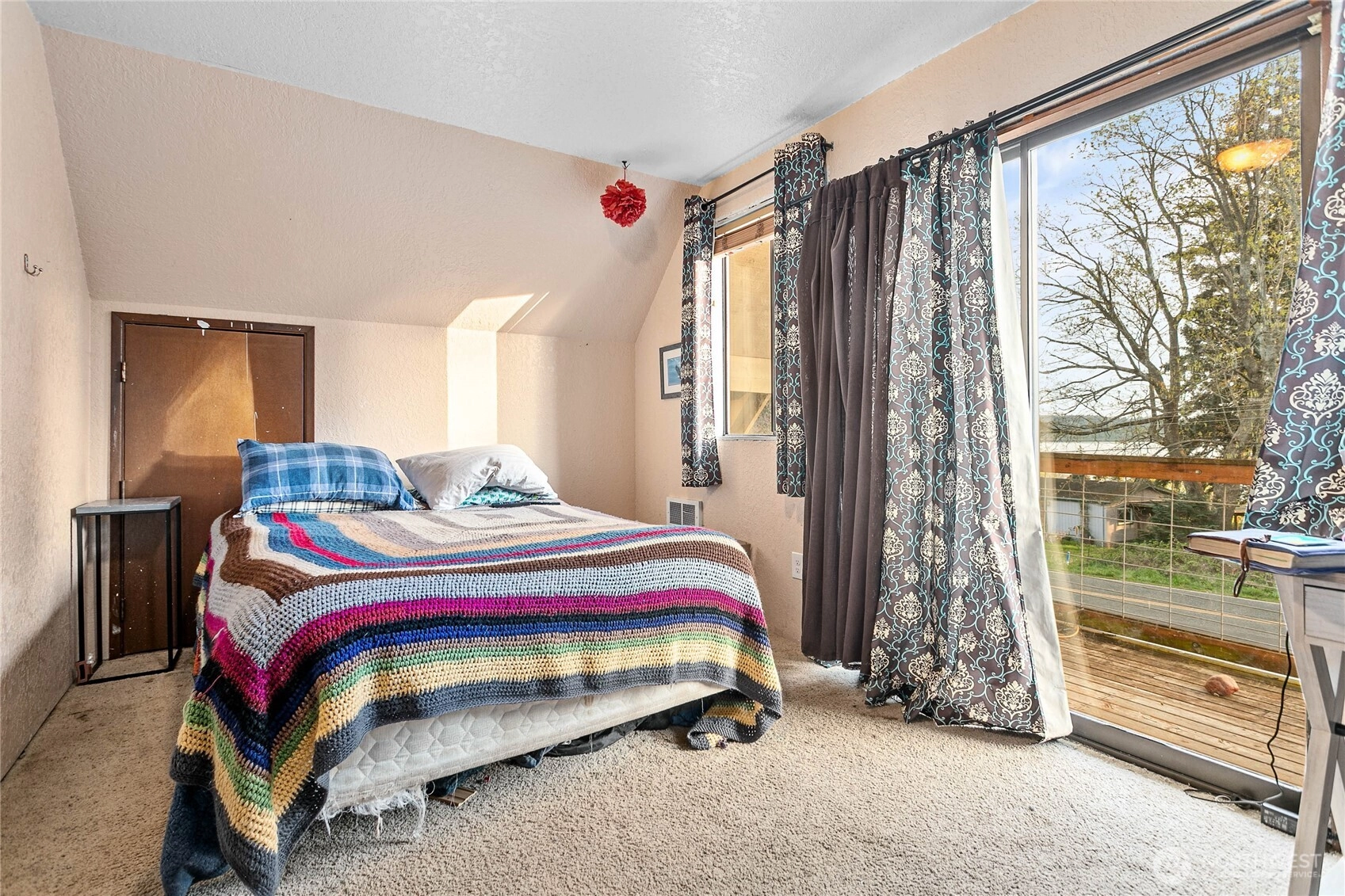Perched above the bay on a generous 1/3-acre lot, this uniquely styled home offers peekaboo water views and endless potential. The main level includes a kitchen, living room, laundry, half bath, walk-in pantry, and one bedroom, while upstairs features the primary bedroom with a private balcony, full bath, and a flexible 3rd or 4th bedroom layout per your preferences. A 36x36 concrete pad adds functional value—ideal for a future garage, shop, or perhaps ADU. Buyer to verify. Just moments from the Lummi Island ferry, this flat, usable lot invites expansion, gardening, or outdoor living. Priced well and sold as-is, it’s a great opportunity for the buyer ready to build equity and bring their vision to life. Come see it today!