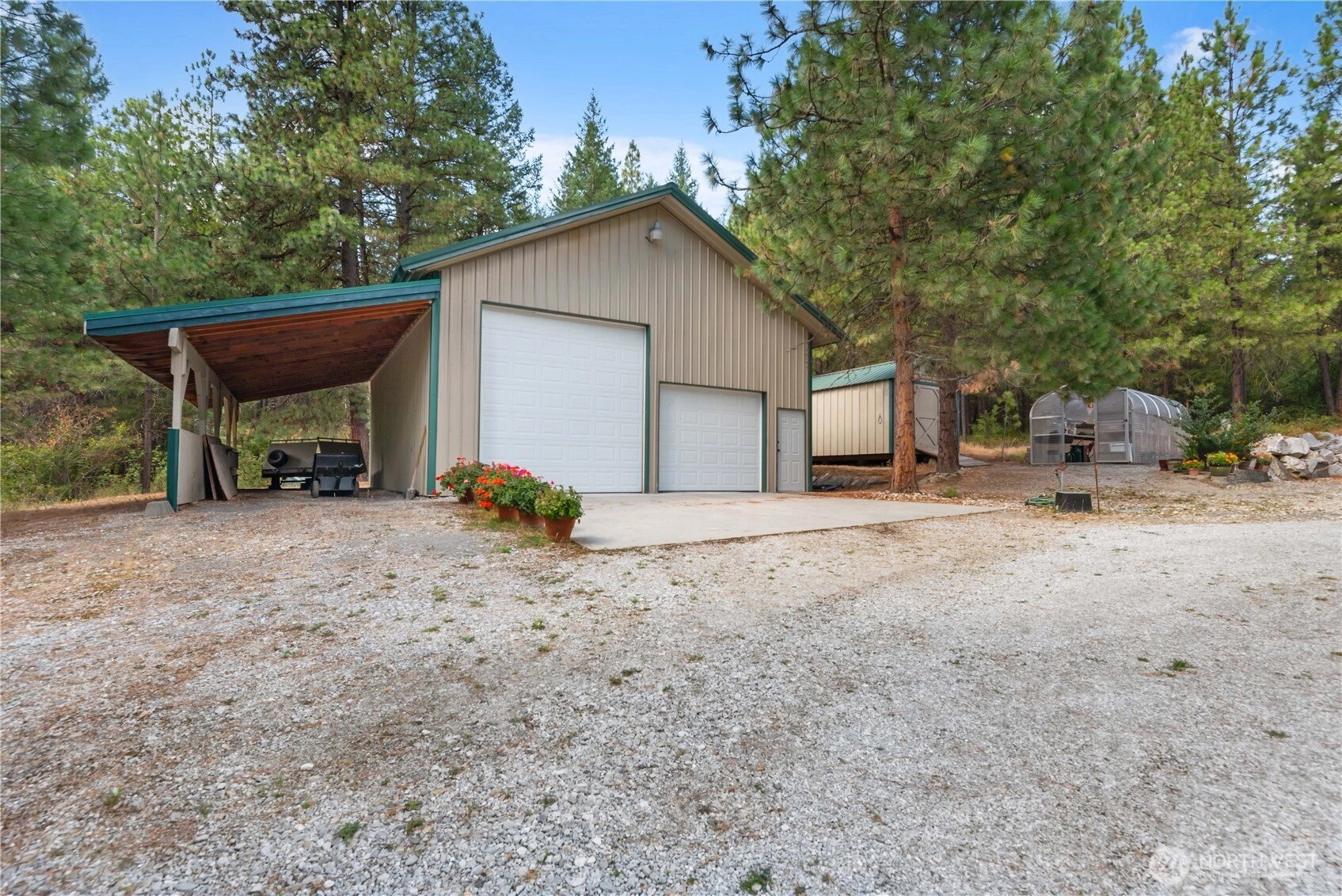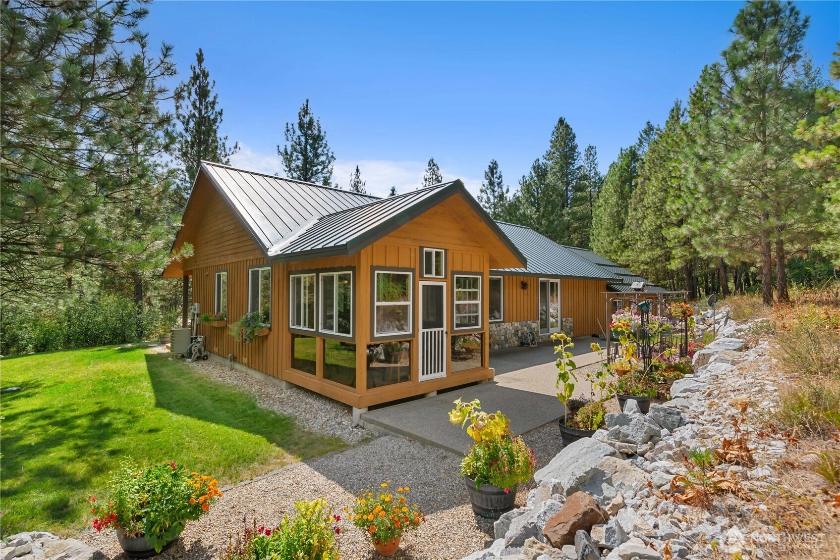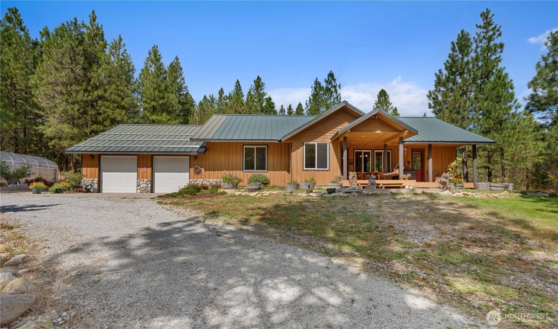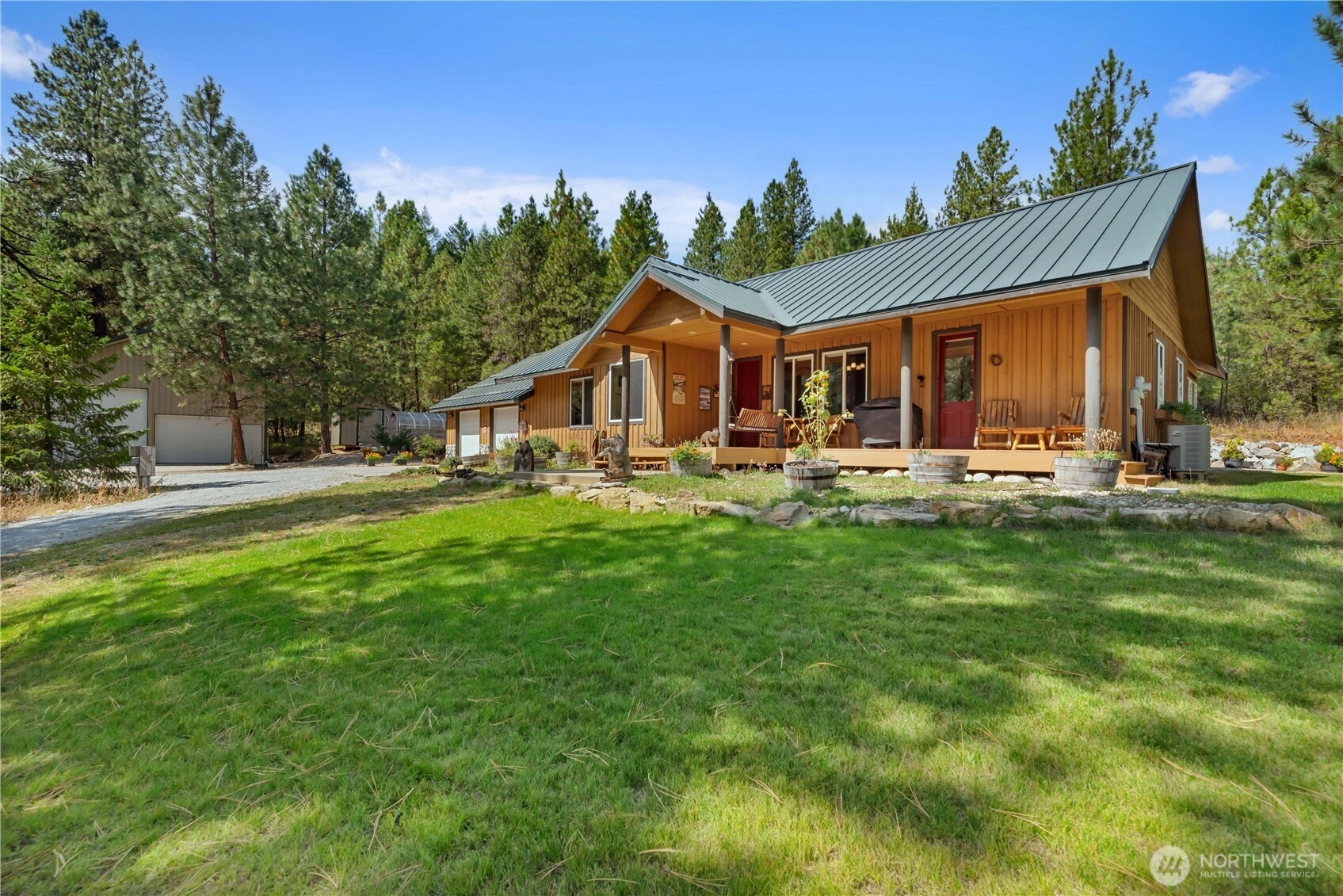 Private and secluded acreage off River Road, this one owner 1,800' custom rambler built by Unger Construction offers 3 bedrooms, 2 baths, Office/Den and oversized 2 car garage/shop. Enjoy the covered front porch or screened in back deck for enjoying all 4 seasons. Sitting on 2.3 level acres with green house, garden area & features a 1,080 shop ~ 2 Bays (1 RV) & bathroom. Well maintained home with an open concept design, custom hickory cabinets, granite countertops, solid wood doors, vaulted ceilings, gas fireplace and picture windows to enjoy the beautiful setting. Spacious primary en-suite with soaking tub, walk-in closet and slider/access to the backyard. Close proximity to the Wenatchee River, and the town of Plain. Includes RV Hookup