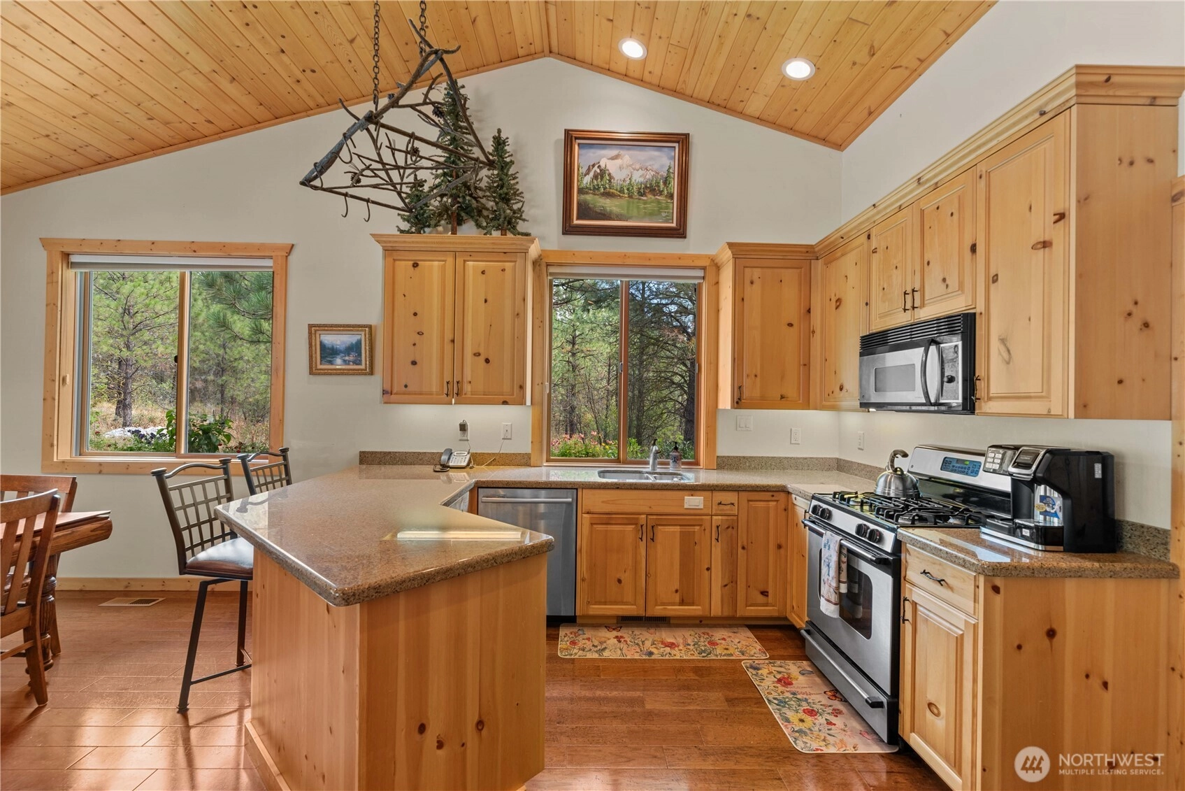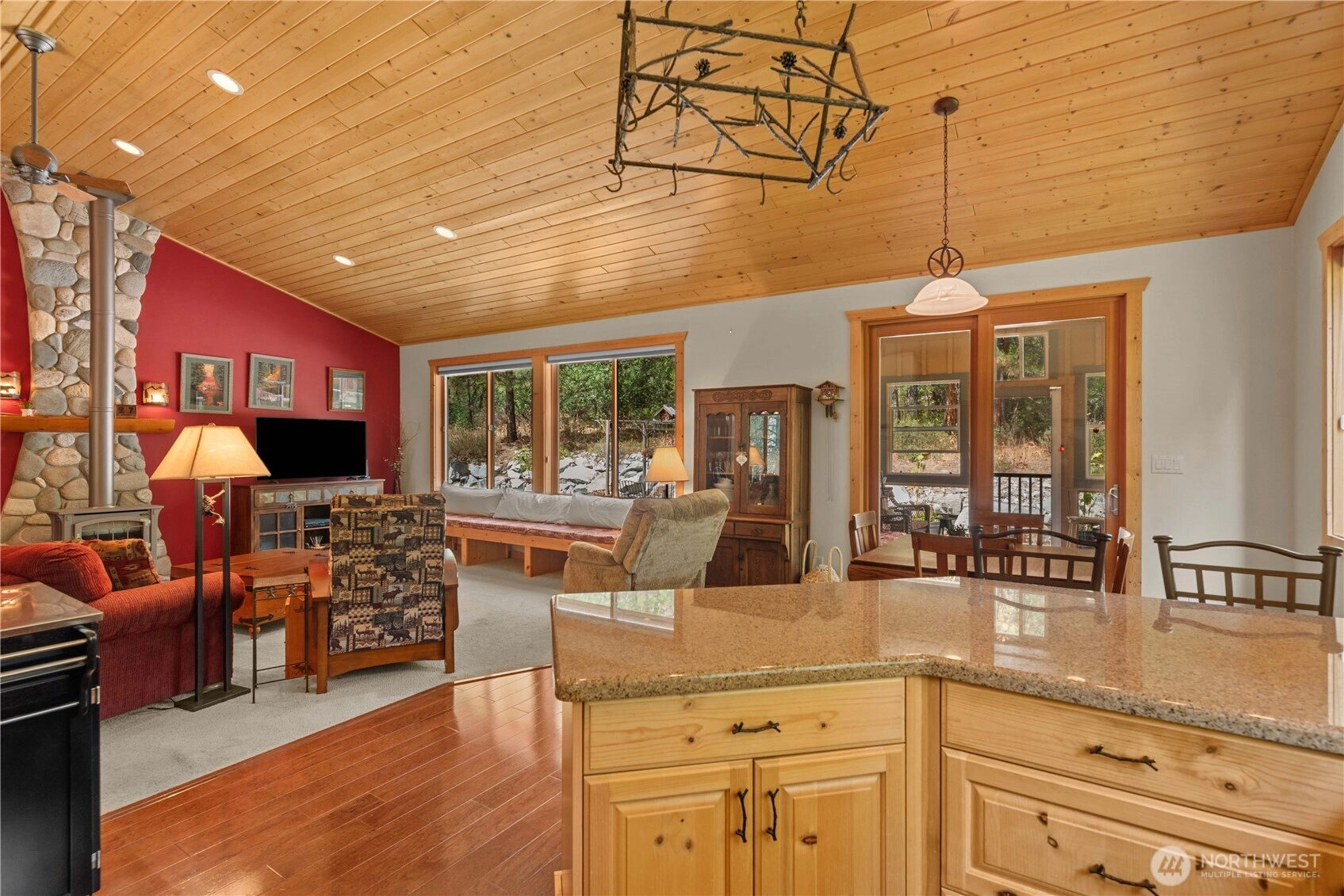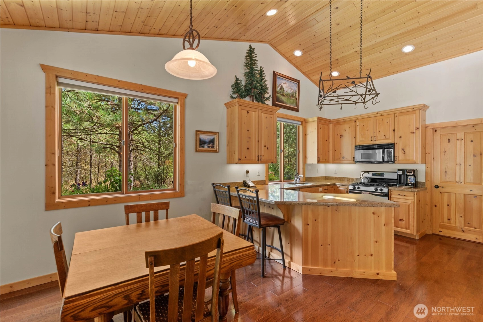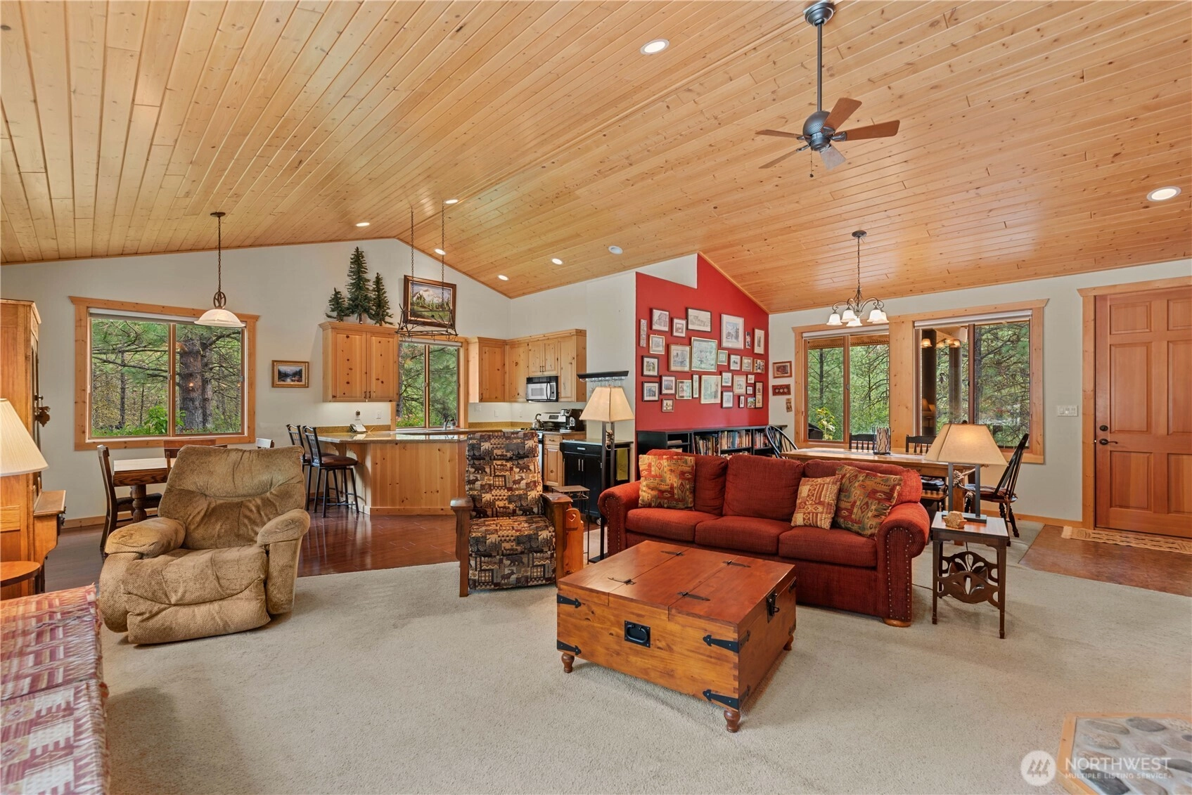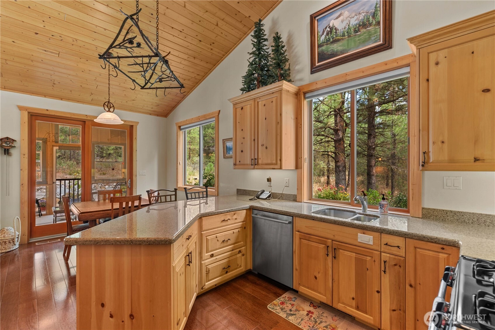 Private and secluded acreage off River Road, this one owner 1,800' custom rambler built by Unger Construction offers 3 bedrooms, 2 baths, Office/Den and oversized 2 car garage/shop. Enjoy the covered front porch or screened in back deck for enjoying all 4 seasons. Sitting on 2.3 level acres with green house, garden area & features a 1,080 shop ~ 2 Bays (1 RV) & bathroom. Well maintained home with an open concept design, custom hickory cabinets, granite countertops, solid wood doors, vaulted ceilings, gas fireplace and picture windows to enjoy the beautiful setting. Spacious primary en-suite with soaking tub, walk-in closet and slider/access to the backyard. Close proximity to the Wenatchee River, and the town of Plain. Includes RV Hookup