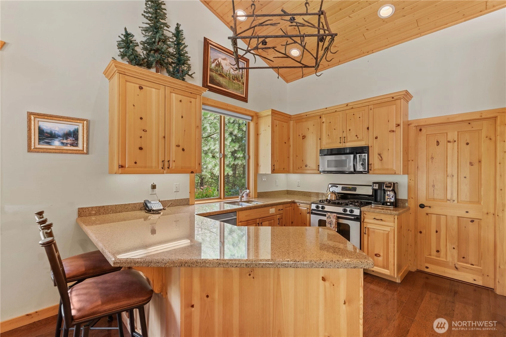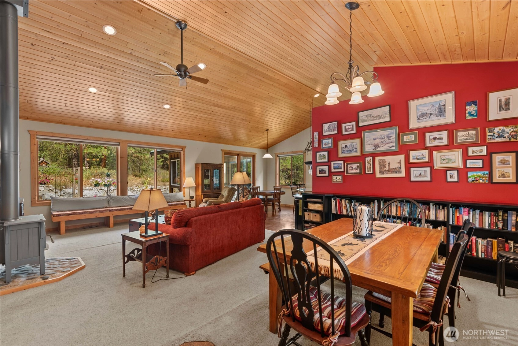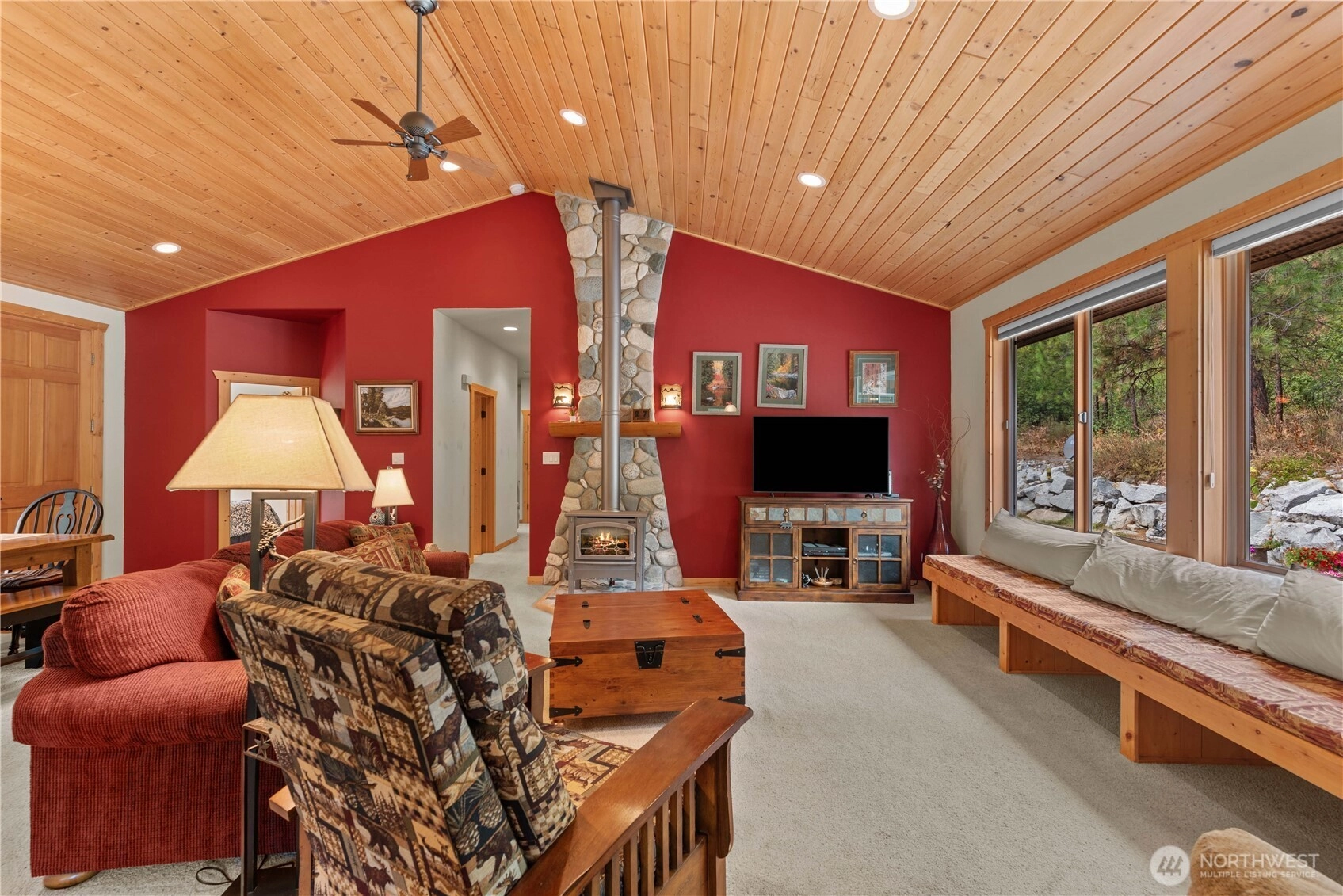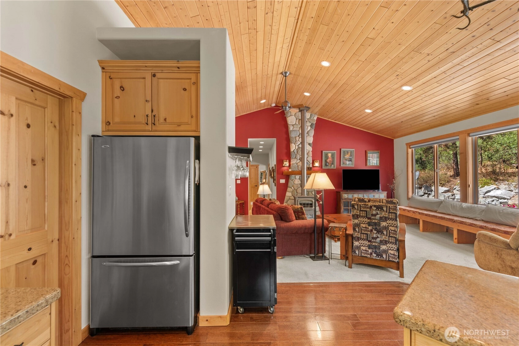 Private and secluded acreage off River Road, this one owner 1,800' custom rambler built by Unger Construction offers 3 bedrooms, 2 baths, Office/Den and oversized 2 car garage/shop. Enjoy the covered front porch or screened in back deck for enjoying all 4 seasons. Sitting on 2.3 level acres with green house, garden area & features a 1,080 shop ~ 2 Bays (1 RV) & bathroom. Well maintained home with an open concept design, custom hickory cabinets, granite countertops, solid wood doors, vaulted ceilings, gas fireplace and picture windows to enjoy the beautiful setting. Spacious primary en-suite with soaking tub, walk-in closet and slider/access to the backyard. Close proximity to the Wenatchee River, and the town of Plain. Includes RV Hookup