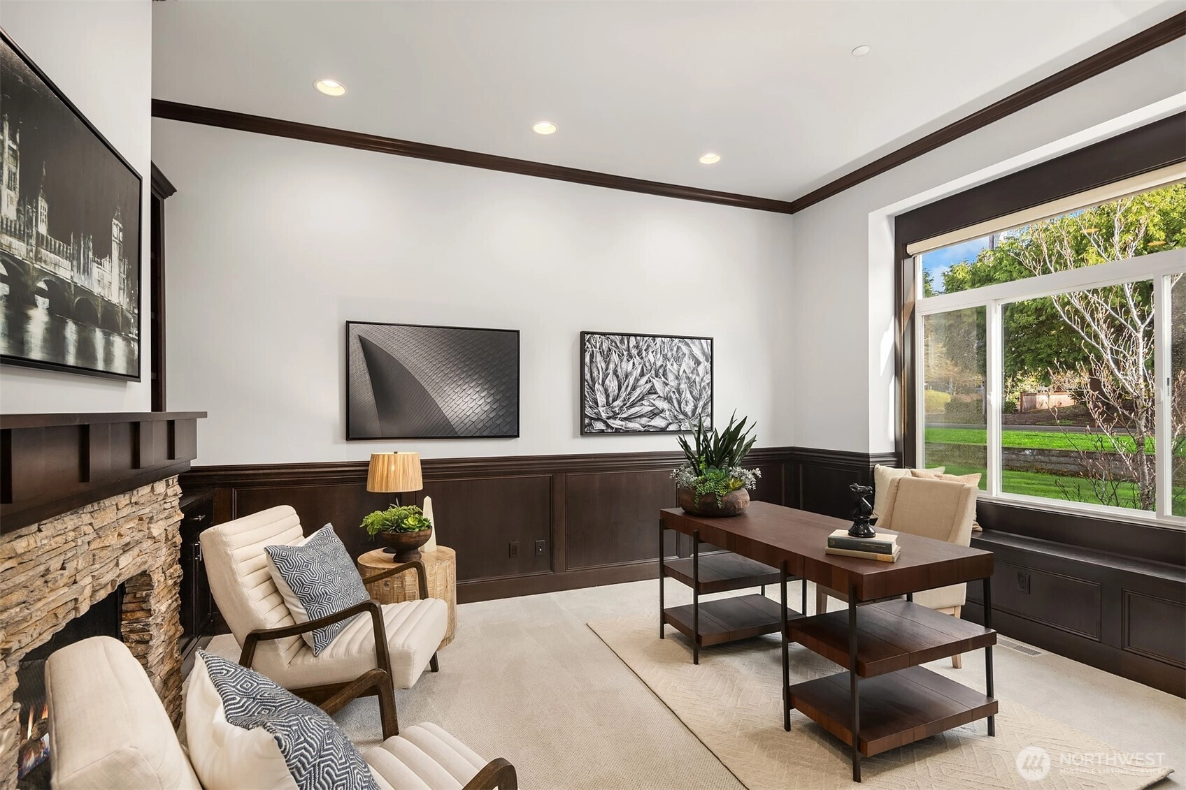Experience the art of fine living in this exceptional John Buchan Homes rambler, an architectural gem nestled on a sprawling half-acre. Unmatched curb appeal seamlessly blends sophistication w/ accessibility. Soaring ceilings, flawless millwork, smooth drywall. Oversized windows & doors bathe the interiors in natural light. Grand office w/ custom built-ins & fireplace, perfect for working in style. Commanding Great Room offers an ideal setting for gatherings. Spacious Bedroom Ensuite, curbless showers. Timeless marble counters, SubZero, Wolf, walnut floors, new carpet & automated shades elevate everyday living. Private yard ideal for play, pets or peaceful solitude. Smart tech, generator & more. Bonus Rm could become 4th Bedroom or Media.