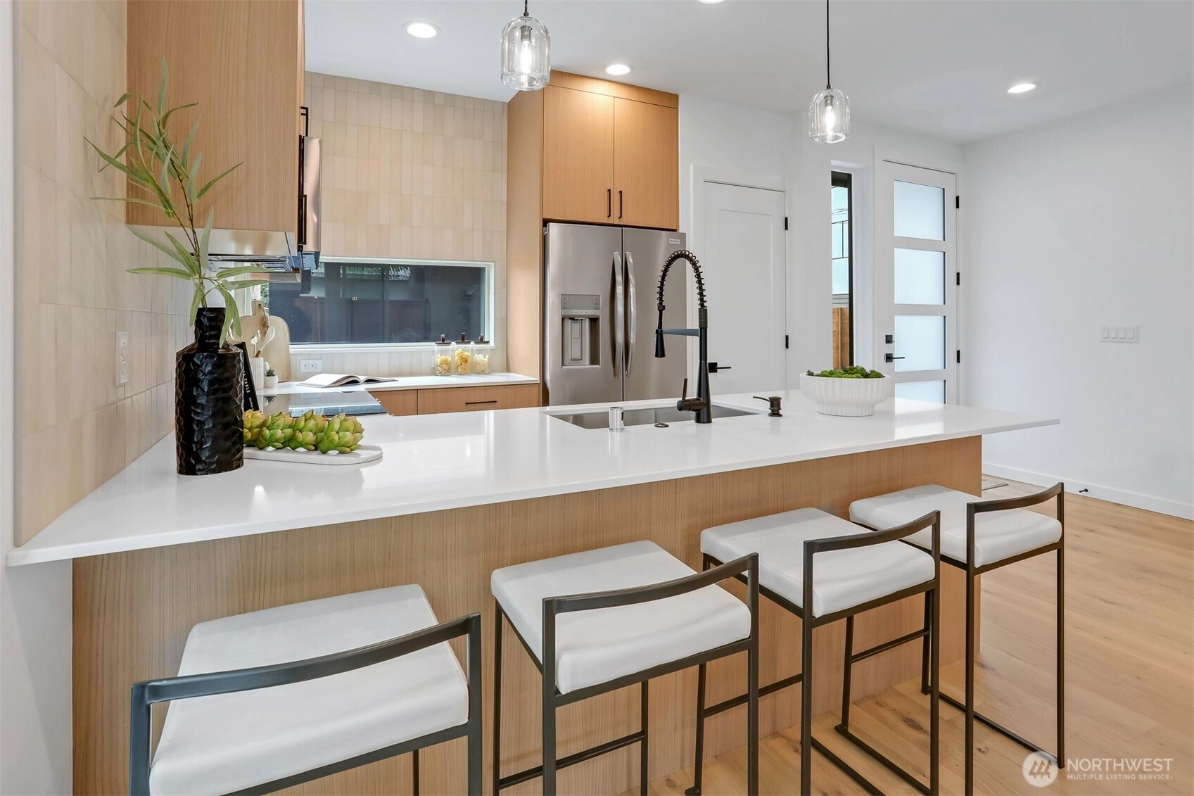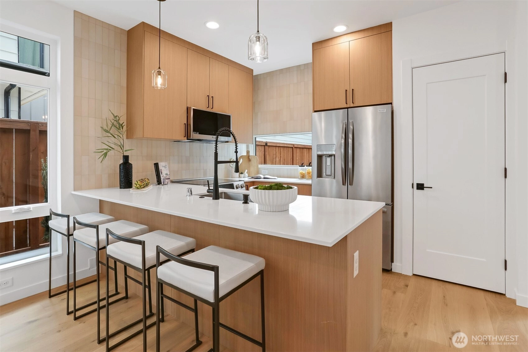 Luxury modern residences by premier builder Nova Homes with a higher quality, design and finish! Fresh, thoughtful design. Rare Four bedroom! 4 star Built Green, very energy efficient including HRV system and additional insulation providing big energy savings. Located in the heart of the most desirable Ballard within steps to cafes, restaurants, markets and parks. Convenient to transit, downtown and South Lake Union. Light, bright open floor plan with super high ceilings and oversized windows throughout. Chef's kitchen with large peninsula and high-end appliance package. Spacious private suite retreat with seating area, vaulted ceiling and balcony. Sleek, modern hardware & lighting. Roof deck. Larger EV ready assigned off-street parking.