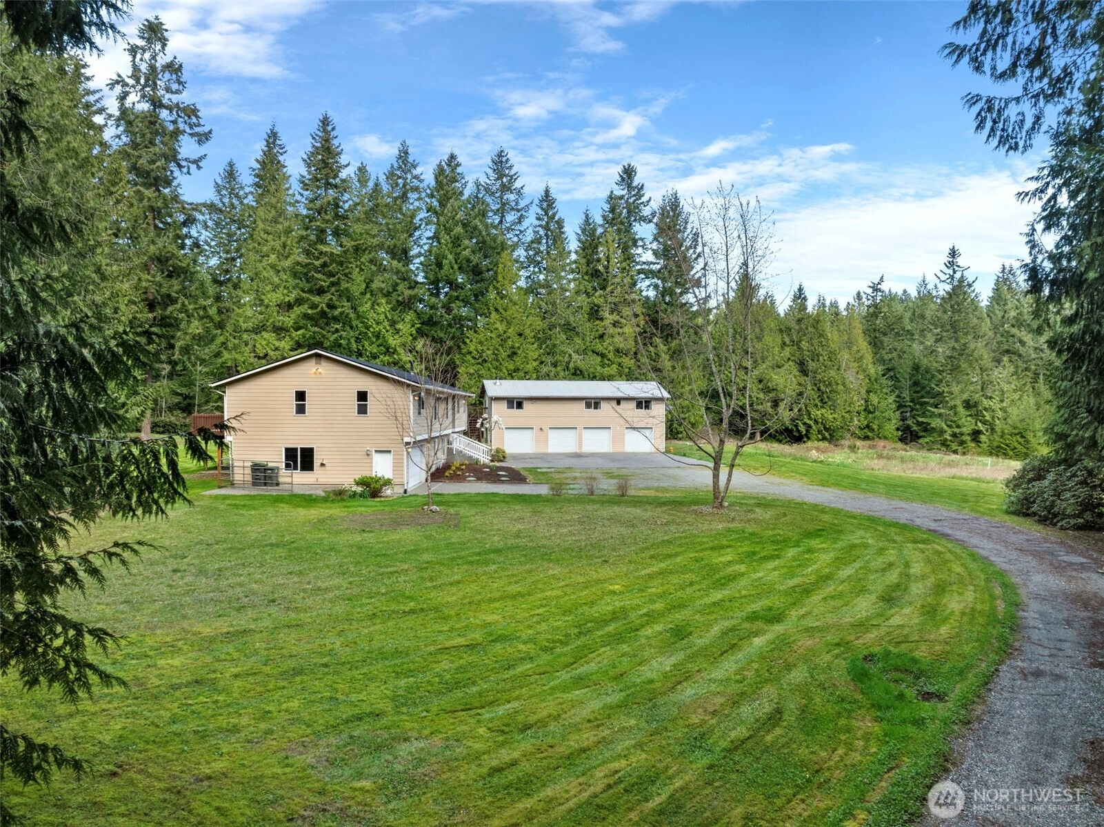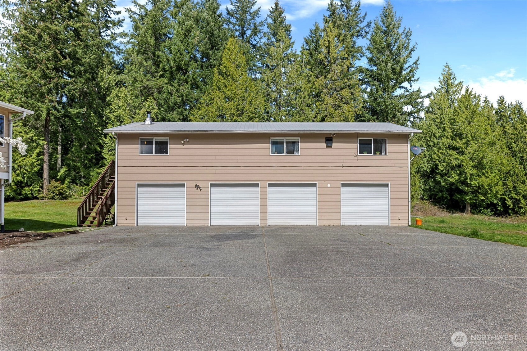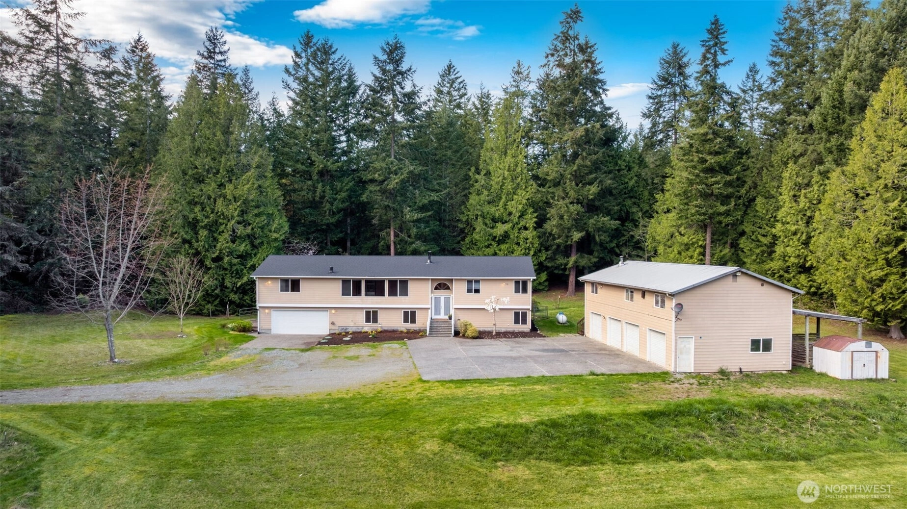 Opportunity awaits on over 5 peaceful acres in Langley! This property features a main home with great potential and recent upgrades including a new roof and spacious new deck. An oversized 4-car garage provides ample space for hobbies, storage, or a workshop. Above the garage, enjoy a fully updated 3-bedroom guest home complete with a modern kitchen, great room, and laundry room—ideal for guests, rental income, or multi-generational living. Surrounded by mature trees and open space, this property offers privacy, tranquility, and room to grow
