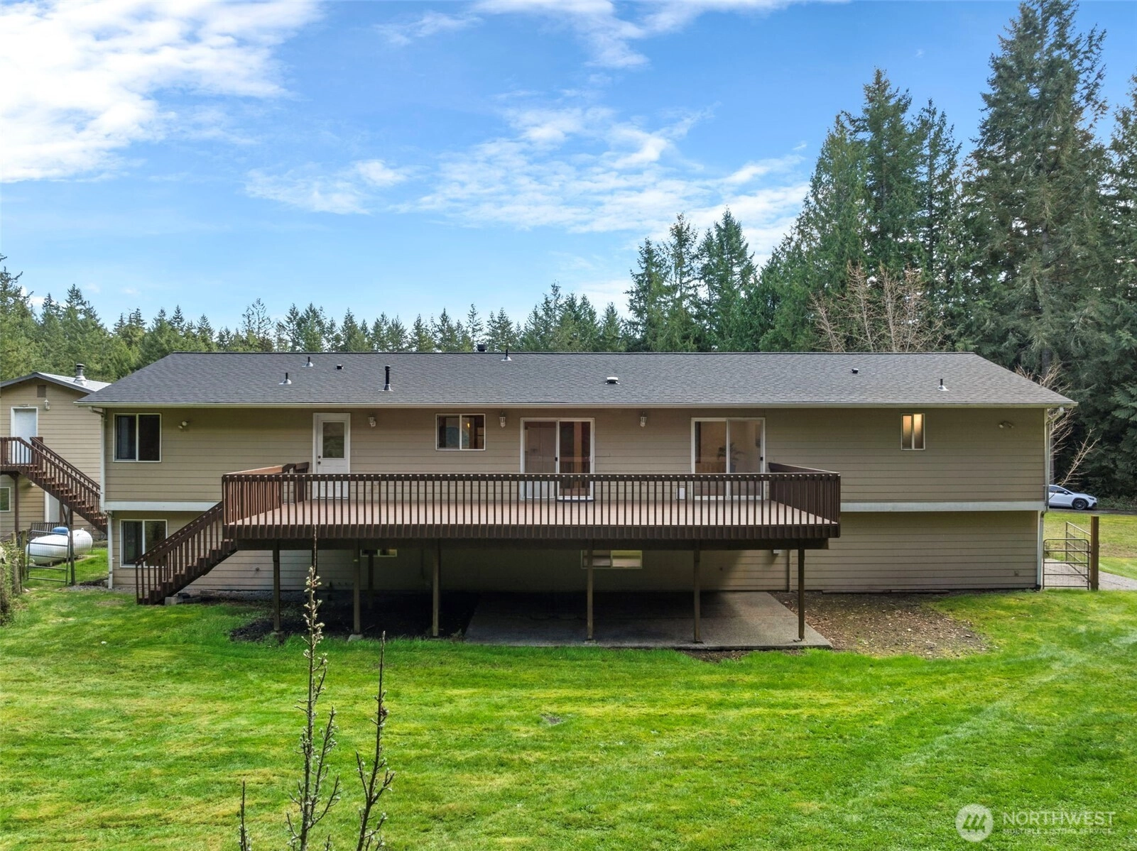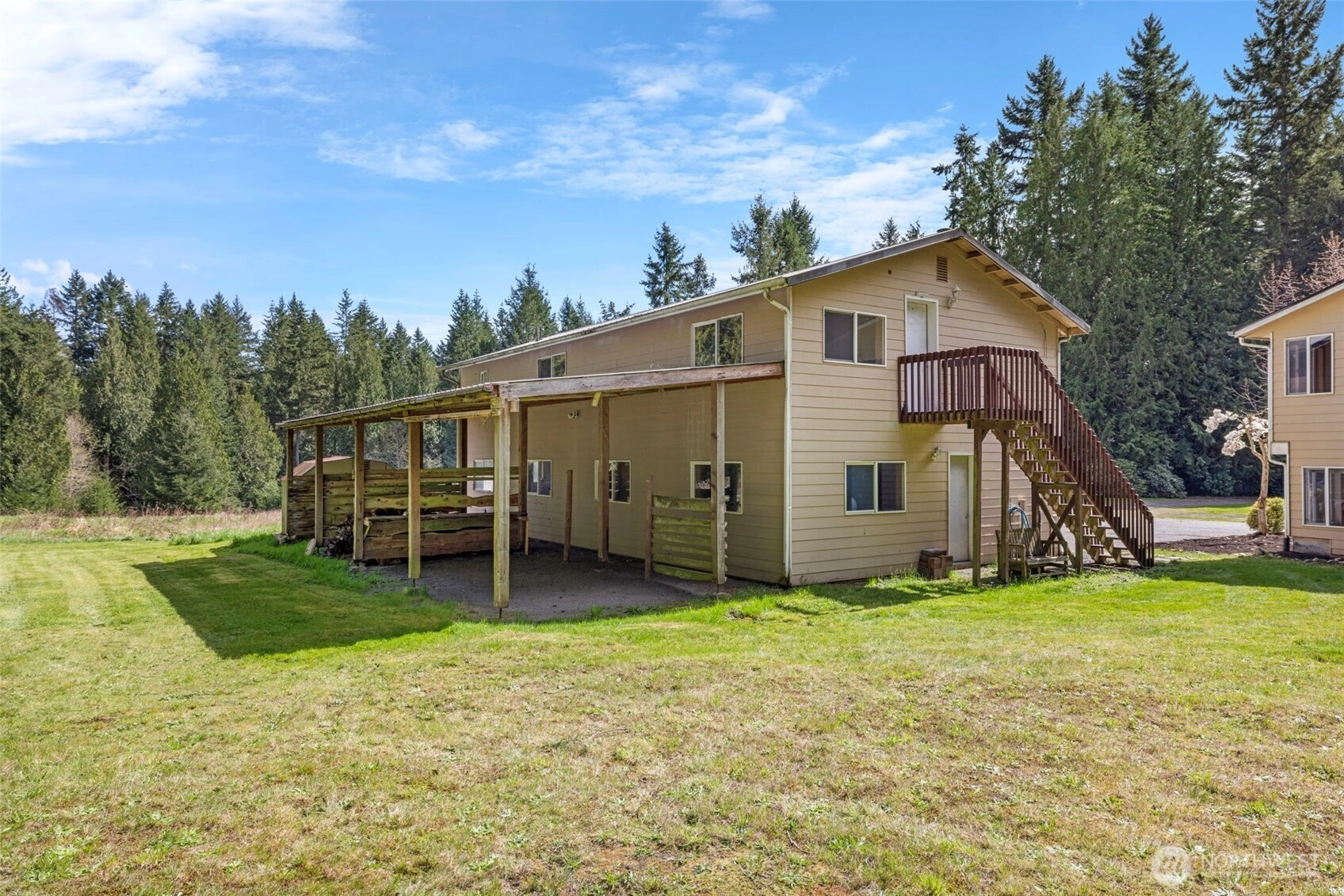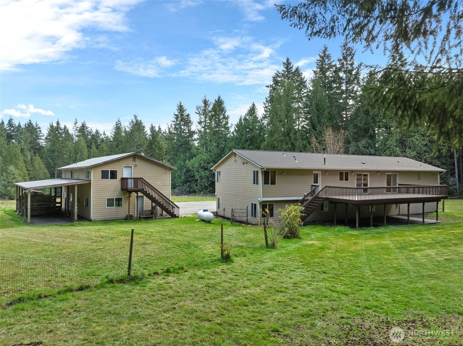 Opportunity awaits on over 5 peaceful acres in Langley! This property features a main home with great potential and recent upgrades including a new roof and spacious new deck. An oversized 4-car garage provides ample space for hobbies, storage, or a workshop. Above the garage, enjoy a fully updated 3-bedroom guest home complete with a modern kitchen, great room, and laundry room—ideal for guests, rental income, or multi-generational living. Surrounded by mature trees and open space, this property offers privacy, tranquility, and room to grow