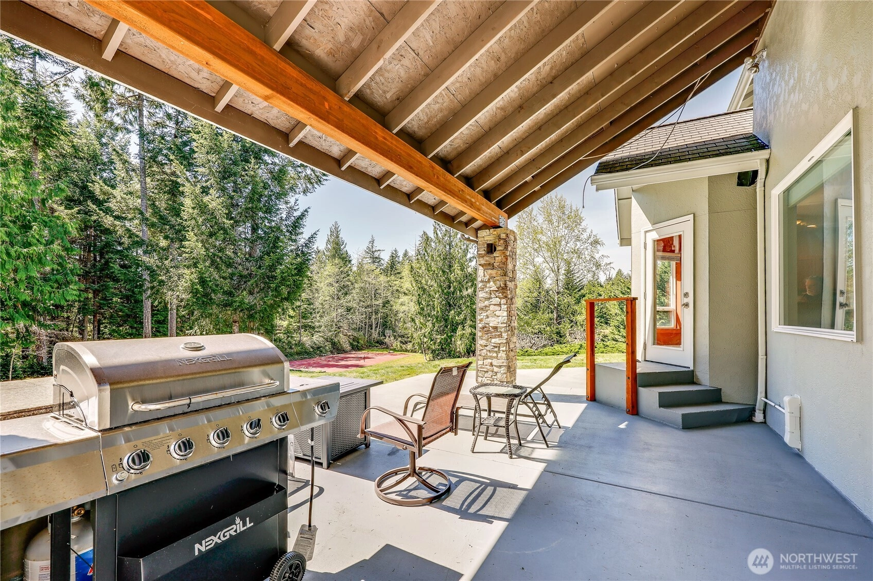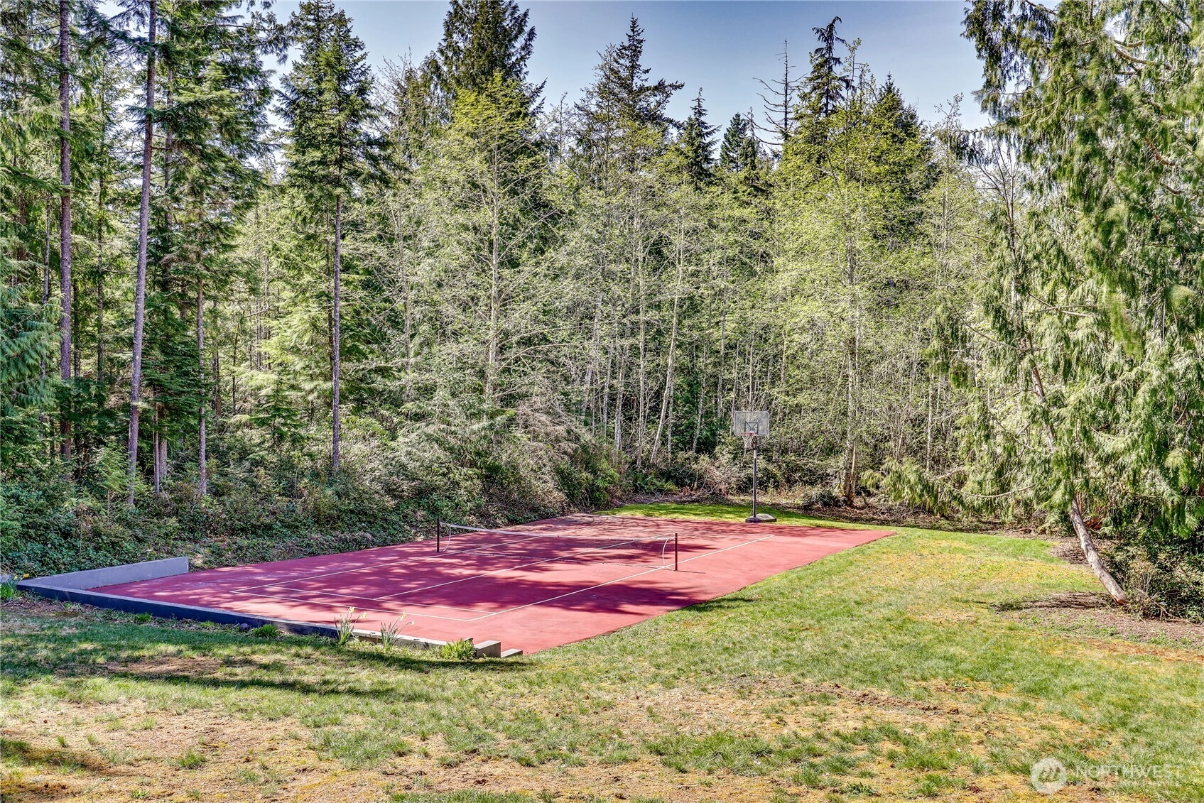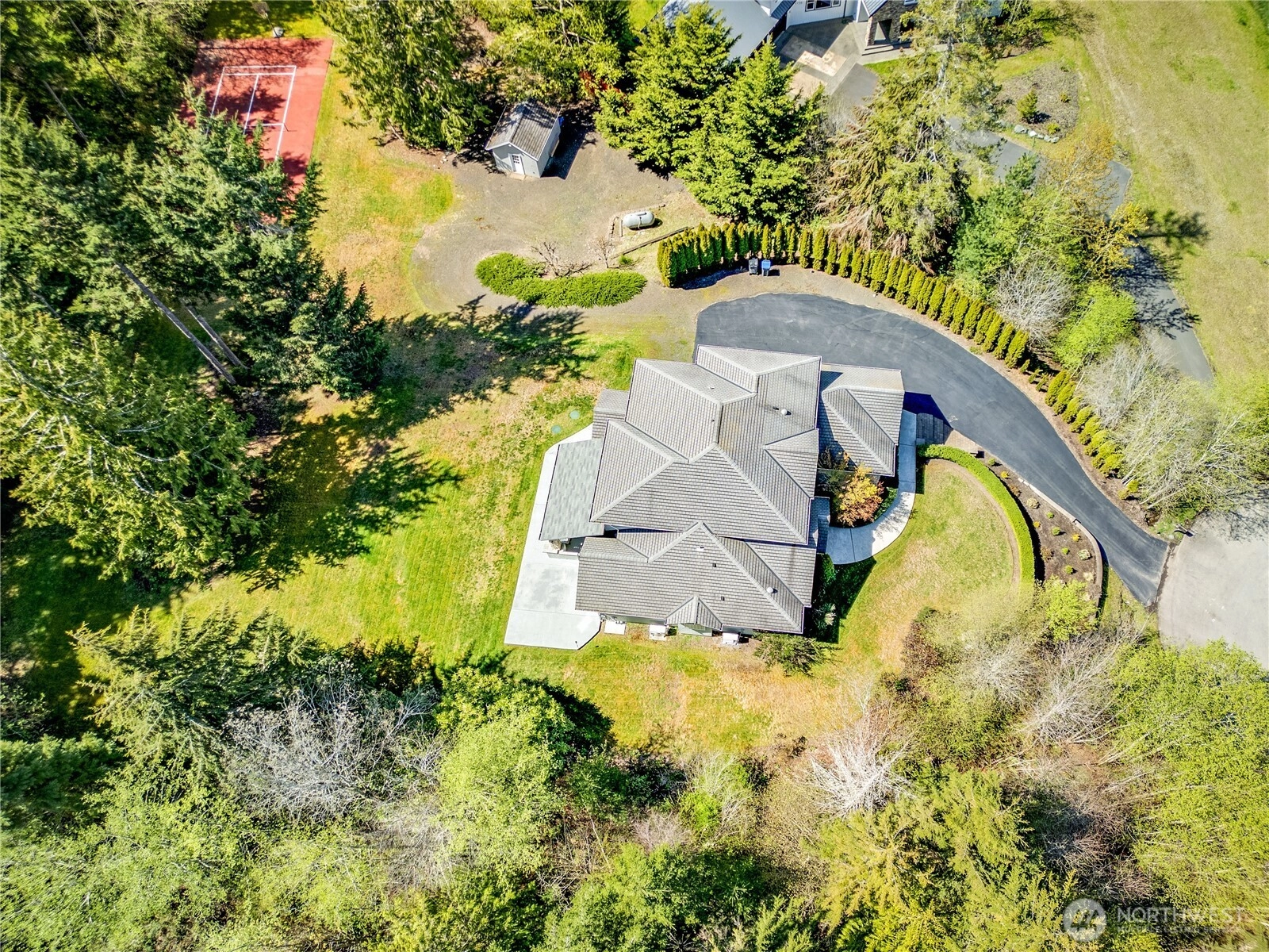 **New 30 Year Roof** Welcome to Seabeck Heights. This stunning custom built home sits on an estate-like 1.28 acres. Enjoy the airy, open layout boasting a great room w/18' ceilings, transom windows that soak the home in natural light. Chef's kitchen w/ granite countertops, SS appliances & double ovens. The primary bedroom offers a serene retreat w/ vaulted ceilings, dramatic arched window & spa like en-suite w/ large walk-in closet. 3Bd/2.5Bath plus home office & spacious bonus room. Entertain year round on your spacious covered patio w/ cook station & bar. Overlooking your private sprawling grounds, regulation size court, fire pit & personal shop to complete your quality of lifestyle.