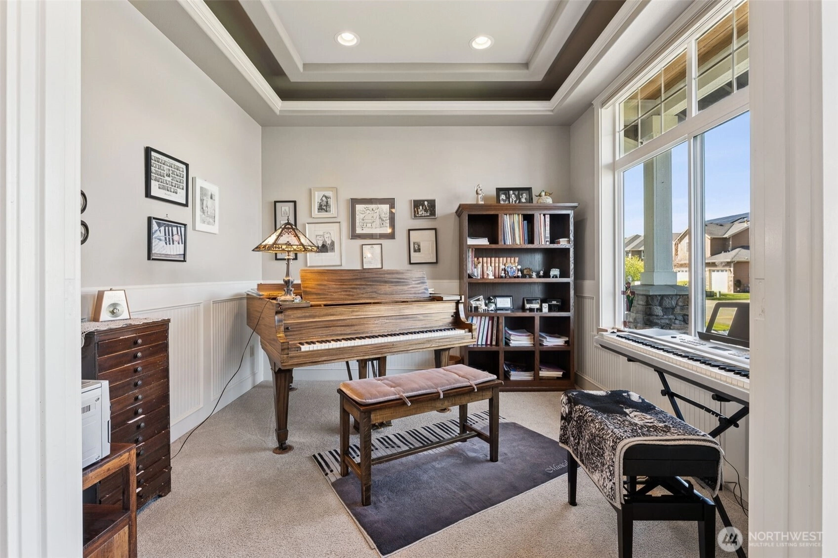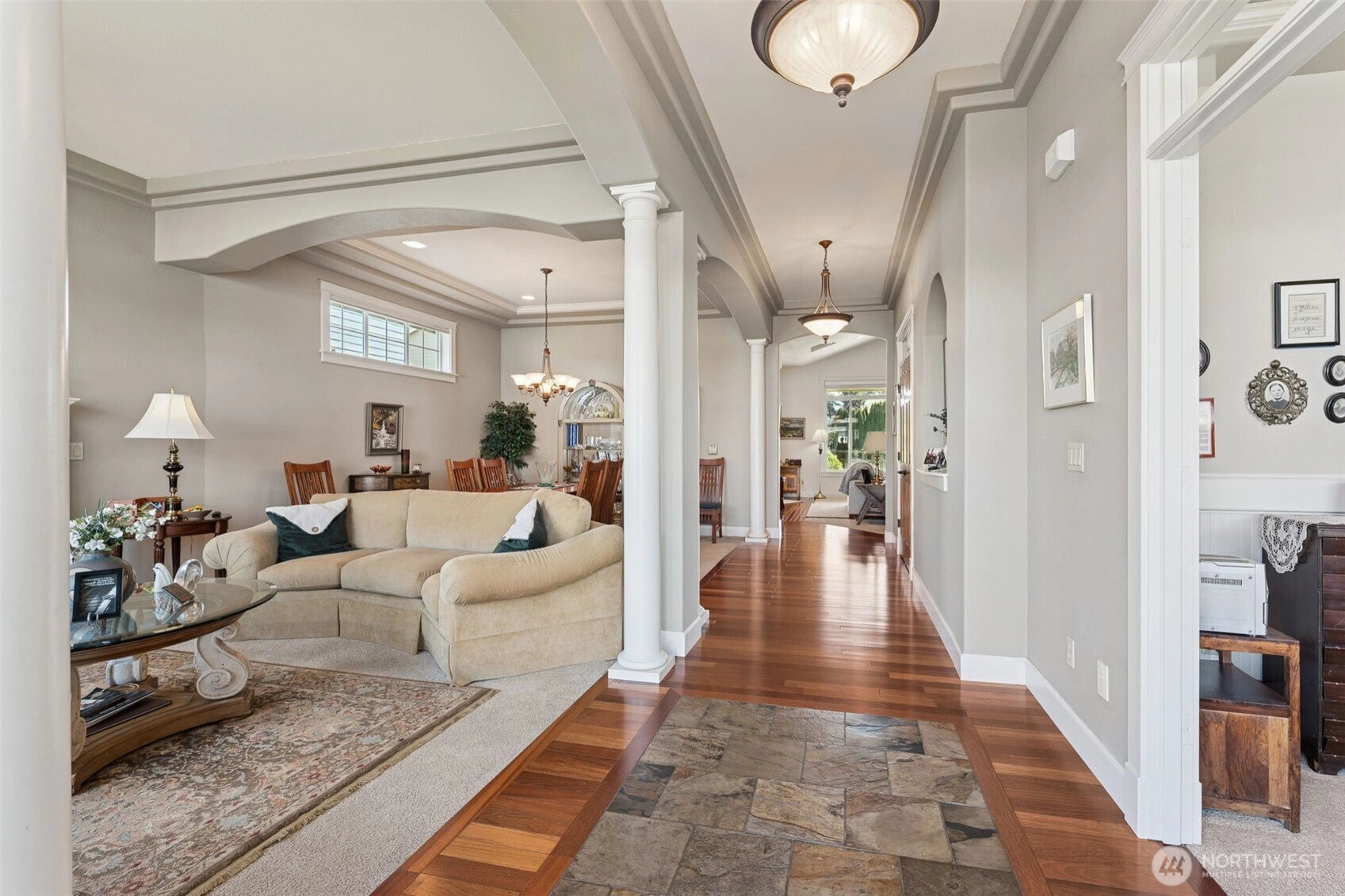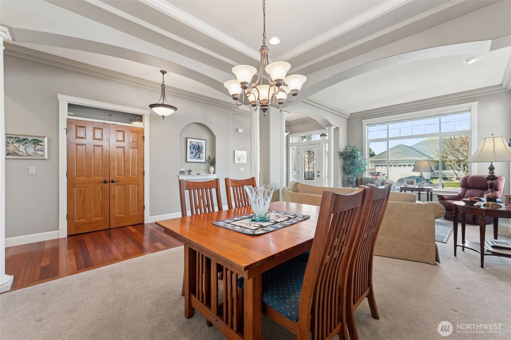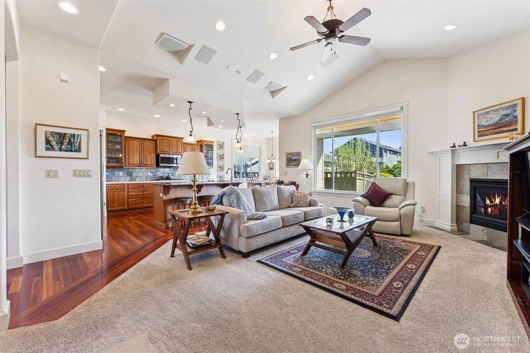 Stunning Custom Rambler in Puyallup Valley, this 3 bedroom / 2.5 bathroom (2431 sq ft) home offers an incredible floor plan. Some of the many features include a formal entry, a dedicated office, Brazilian cherry hardwoods in entry, kitchen & dining area, formal living & family rooms w/ built-ins. Beautiful chef's kitchen, all SS appliances included, oversized island, pantry with eating area, auto blinds in dining and family room. Primary suite is spacious & features built ins in walk in closet. A convenient 3 car garage deep garage w/ man door, large covered stamped patio, lovely landscaping & fully fenced to enjoy year round.Bonus include granite counters, surround sound, new AC, New roof, central vac, 9+ ft ceilings, etc. Truly a gem!