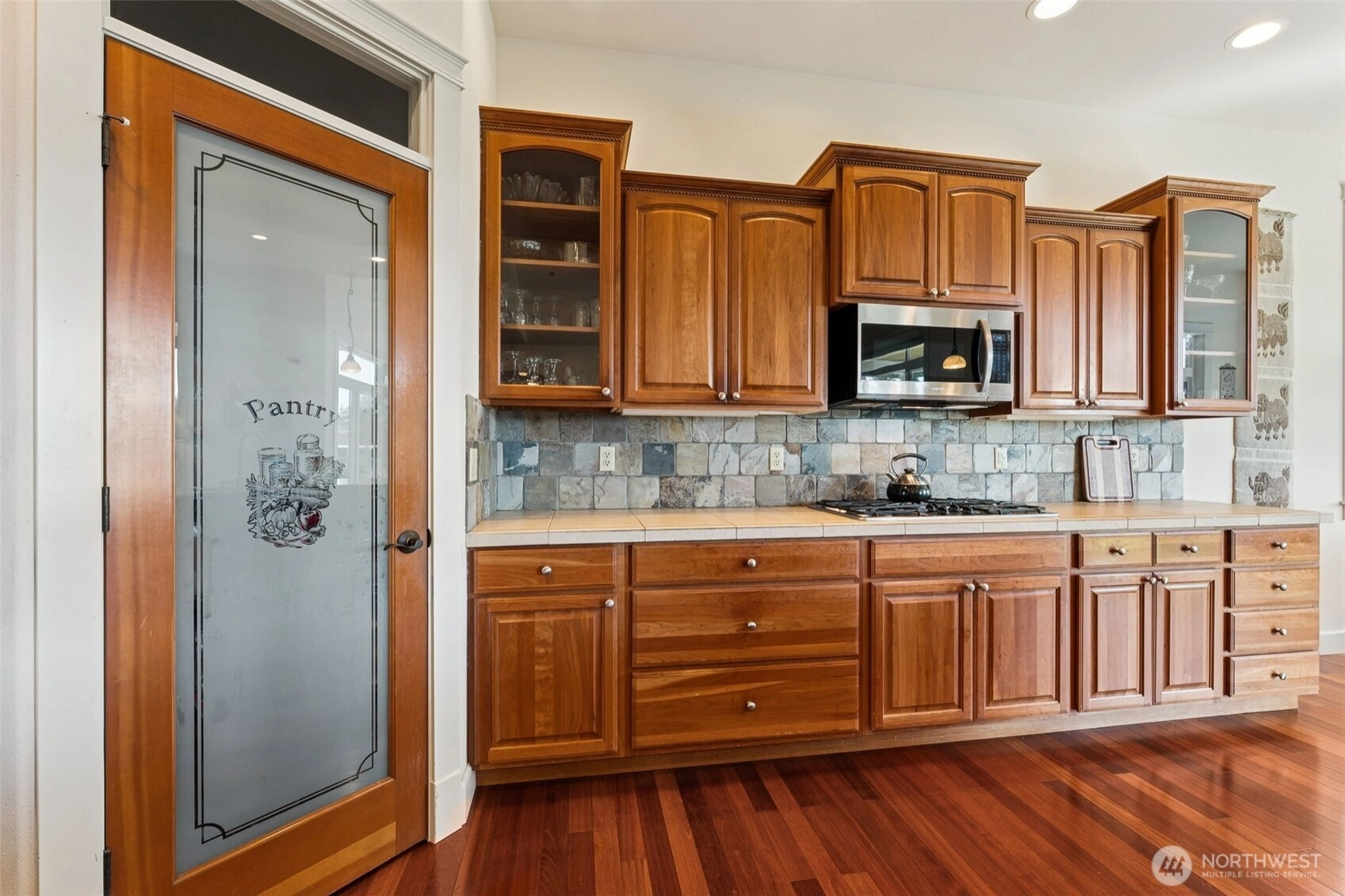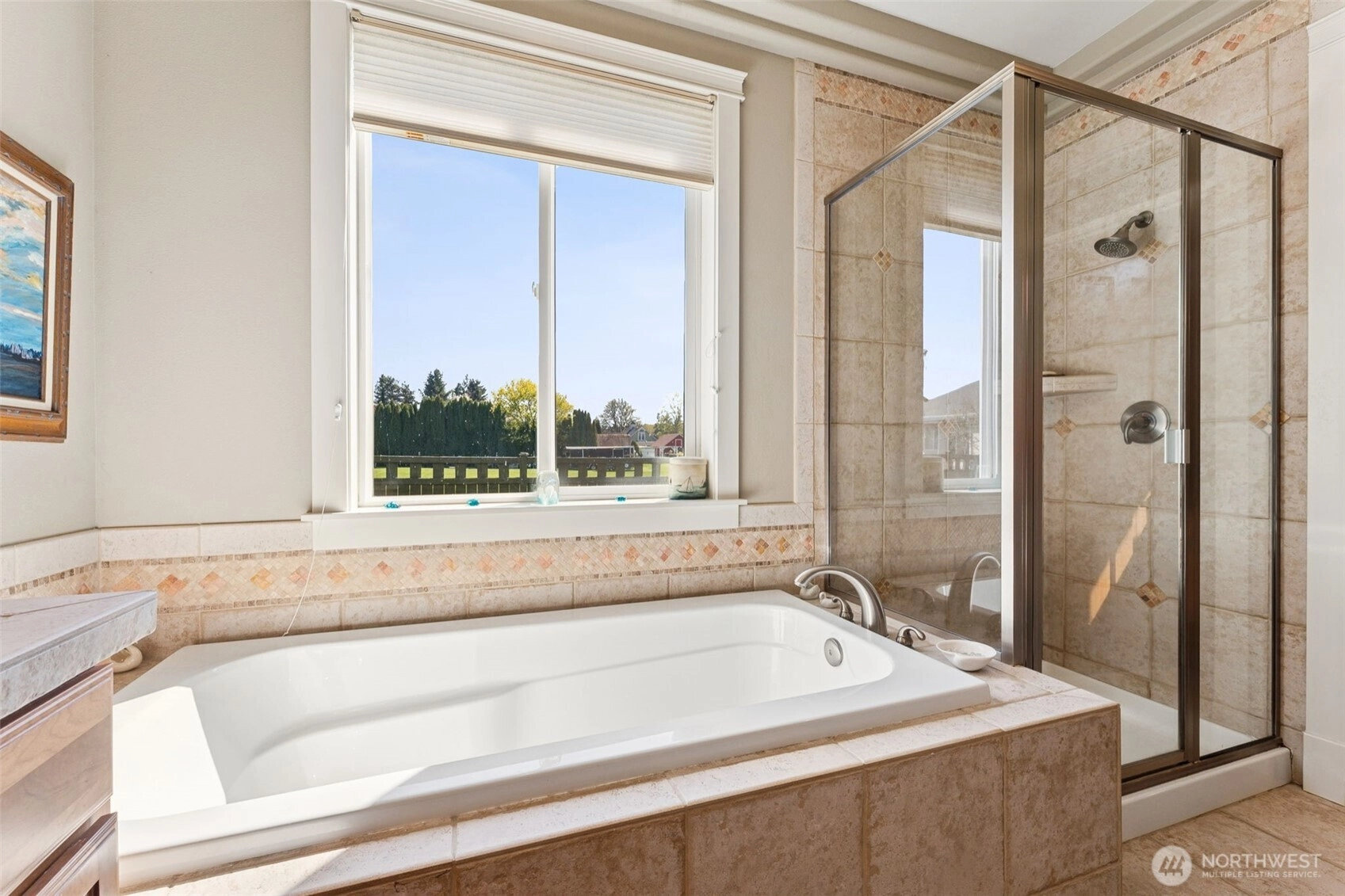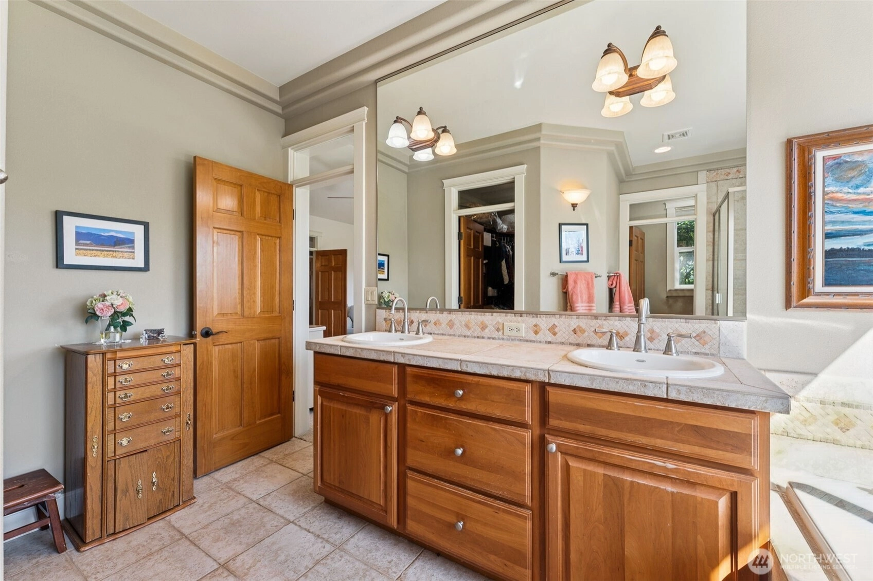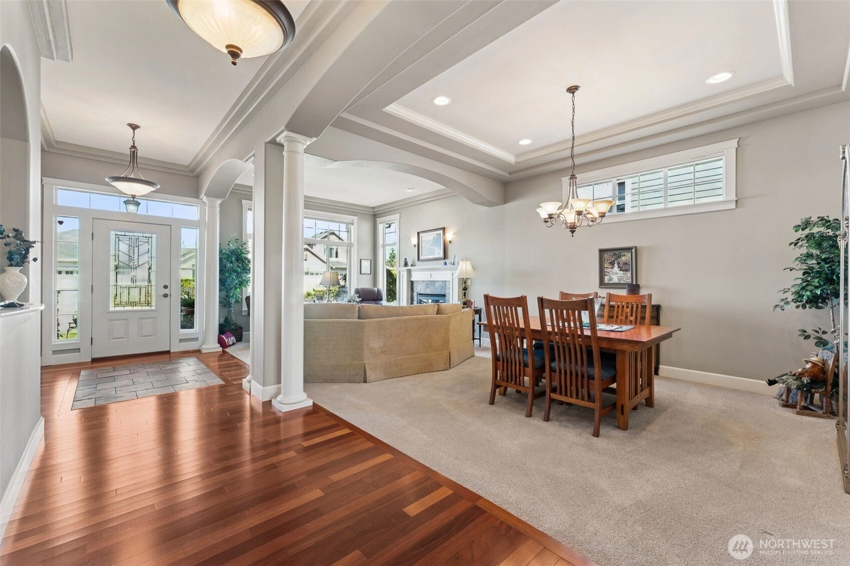 Stunning Custom Rambler in Puyallup Valley, this 3 bedroom / 2.5 bathroom (2431 sq ft) home offers an incredible floor plan. Some of the many features include a formal entry, a dedicated office, Brazilian cherry hardwoods in entry, kitchen & dining area, formal living & family rooms w/ built-ins. Beautiful chef's kitchen, all SS appliances included, oversized island, pantry with eating area, auto blinds in dining and family room. Primary suite is spacious & features built ins in walk in closet. A convenient 3 car garage deep garage w/ man door, large covered stamped patio, lovely landscaping & fully fenced to enjoy year round.Bonus include granite counters, surround sound, new AC, New roof, central vac, 9+ ft ceilings, etc. Truly a gem!