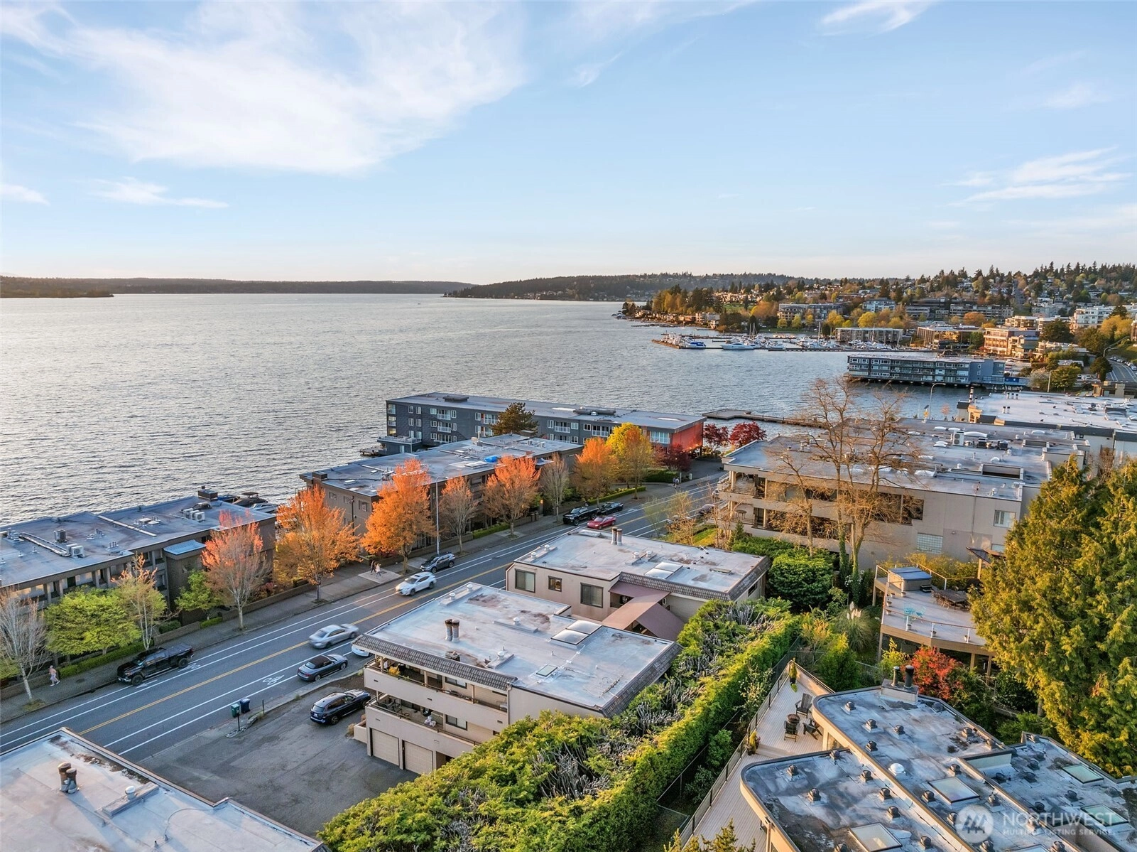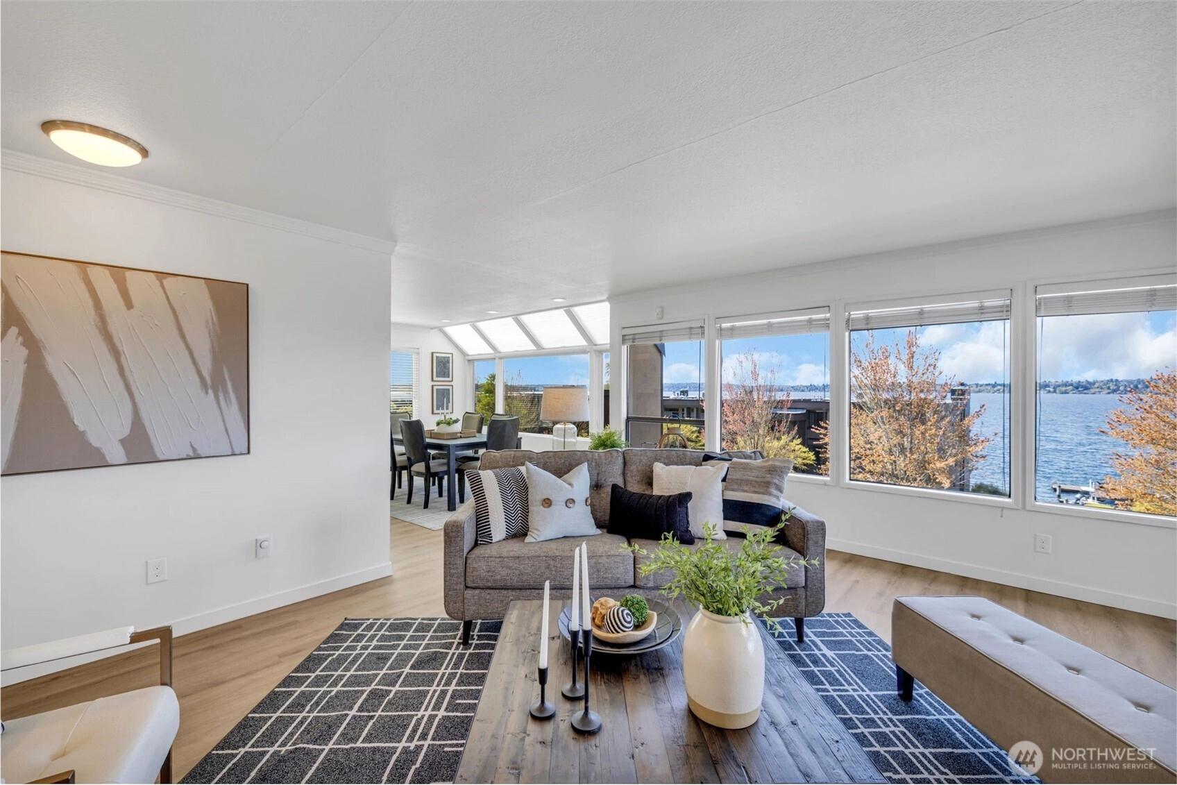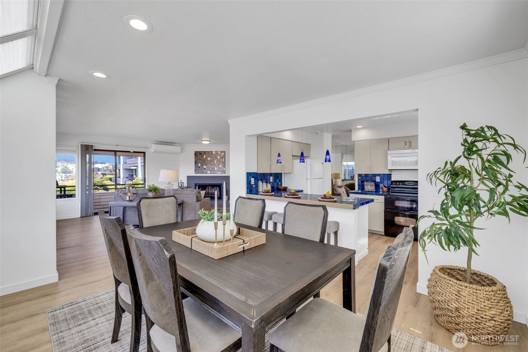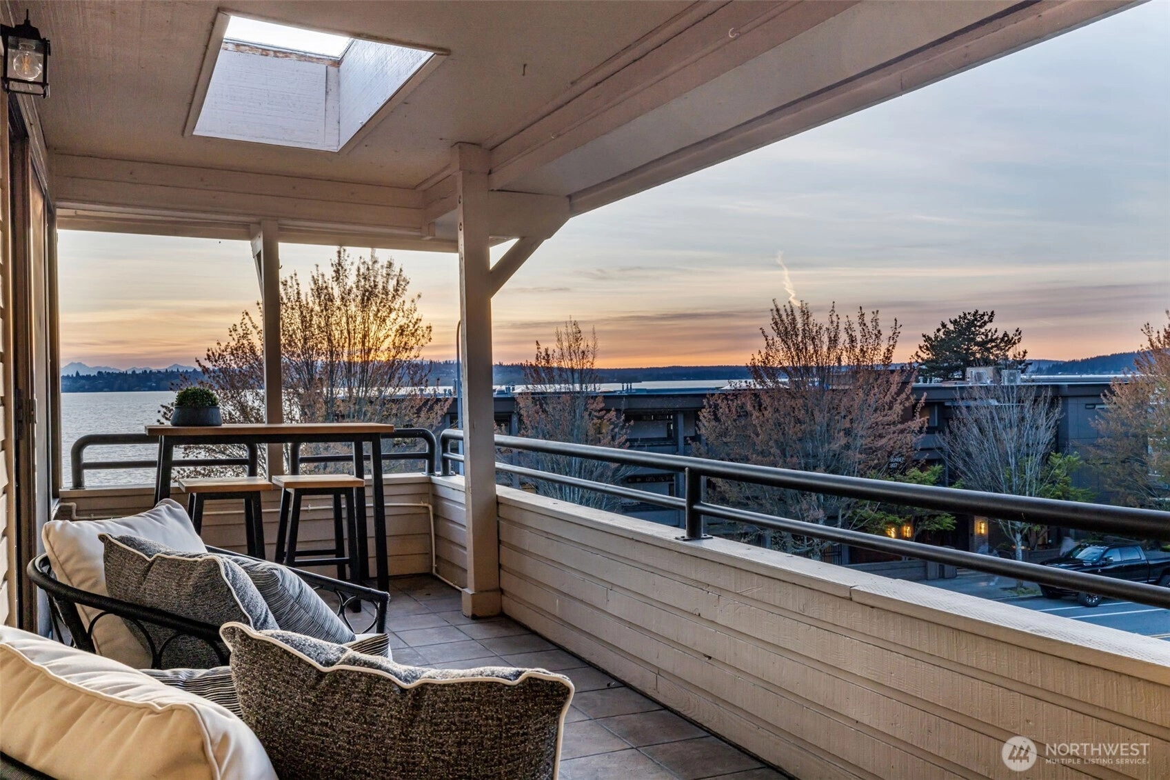 $32,000 CREDIT TO BUYER! Apply it toward a RATE Buy Down, price reduction, or future updates. Soak up sweeping lake & skyline views from this top-floor 3 bed/1.75 bath Kirkland condo w/AC. Perched in the heart of downtown, this light-filled home features floor-to-ceiling windows on three sides, skylights, and no common walls. The spacious living area with fireplace opens to a bright dining room and airy kitchen. Step onto the fabulous deck—perfect for warm evenings, sunset dinners, and fireworks over Lake WA. Rare 2-car garage with shop/storage offers flexible space for hobbies or a studio. Located in an intimate 8-unit complex just blocks from shops, restaurants, and even closer waterfront. Move in now and make the most of the season!