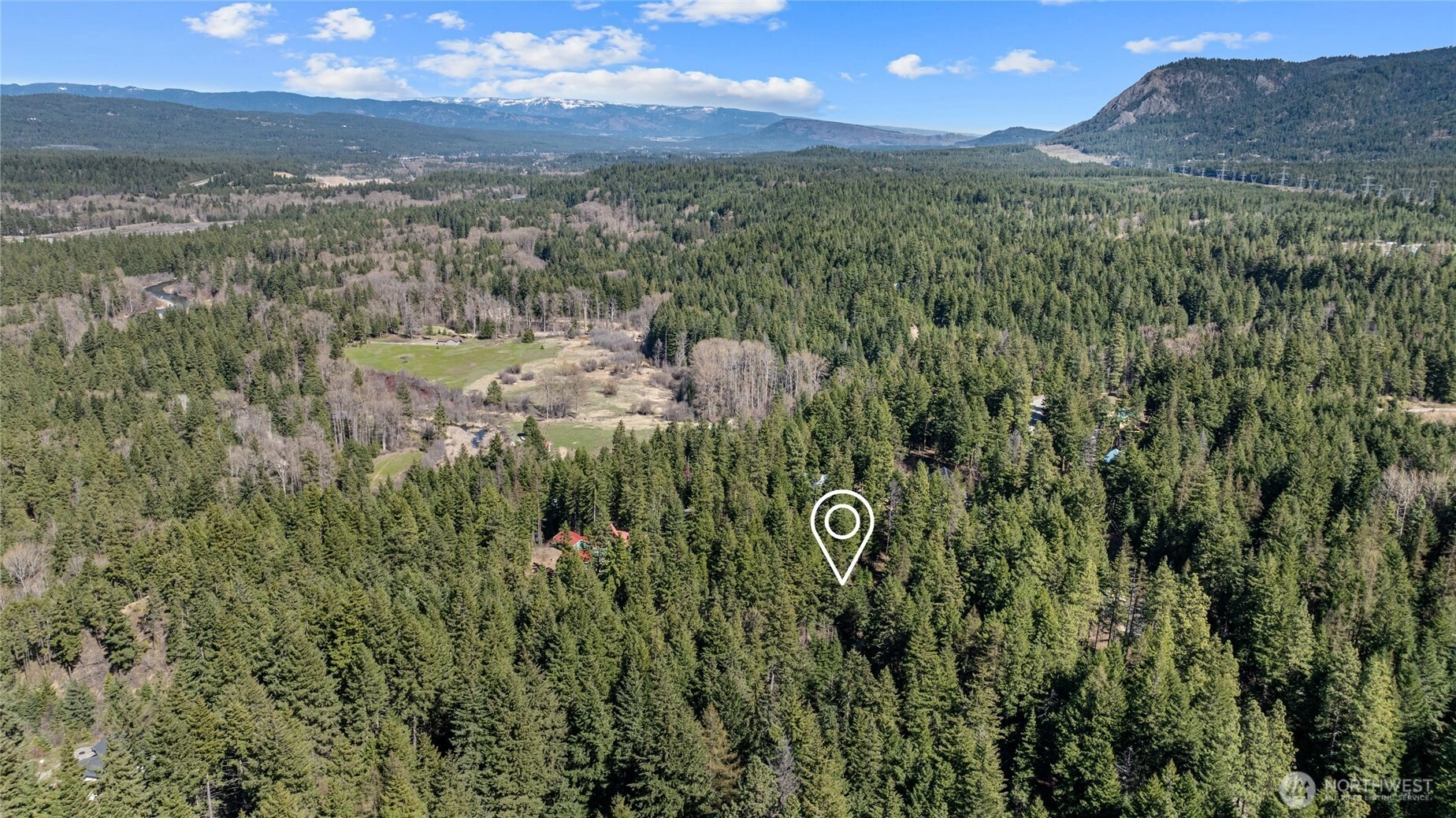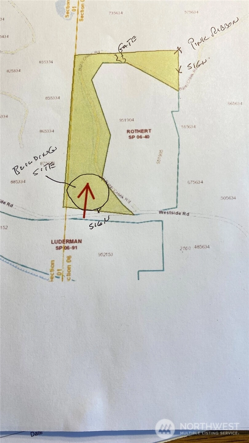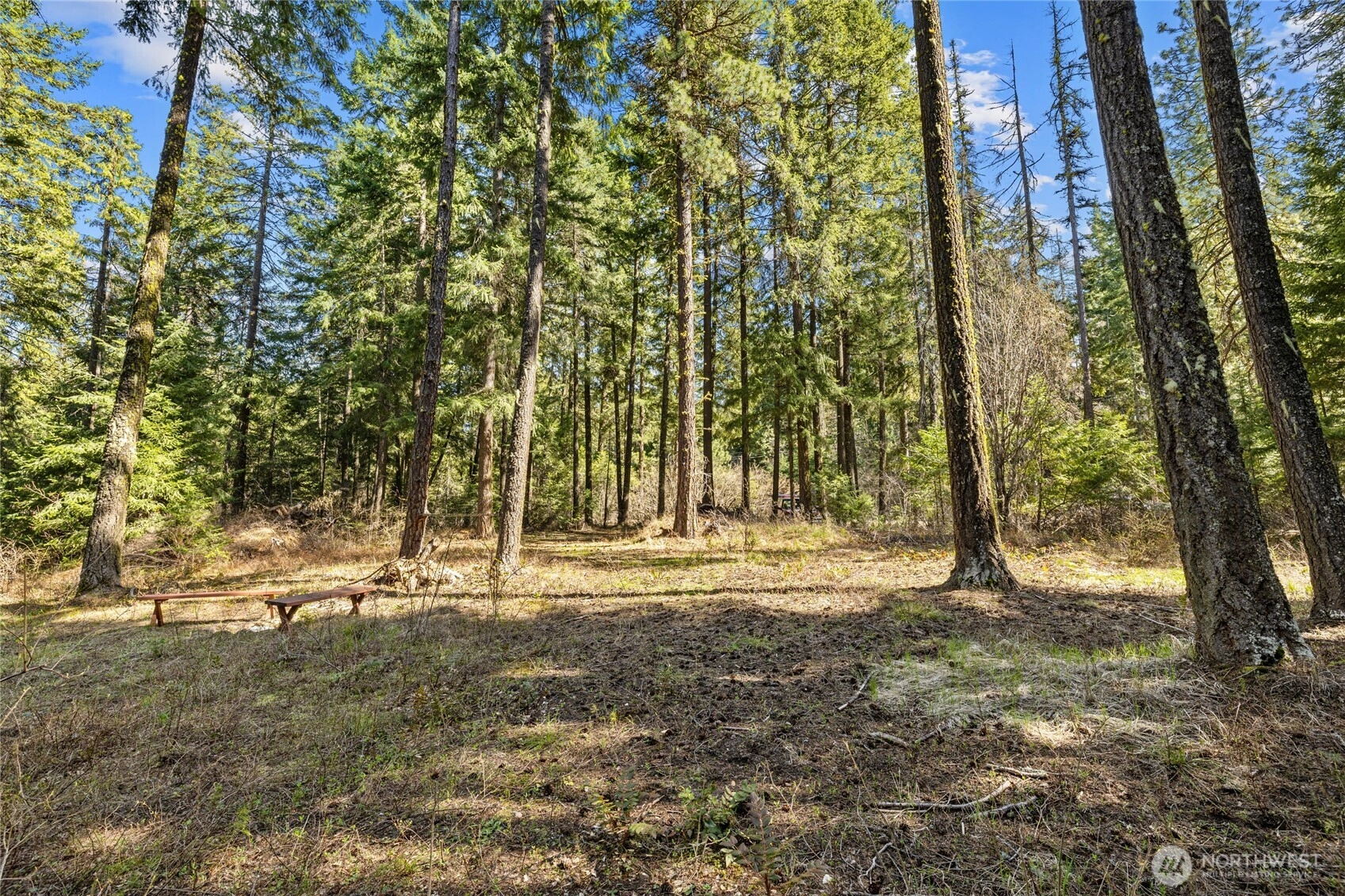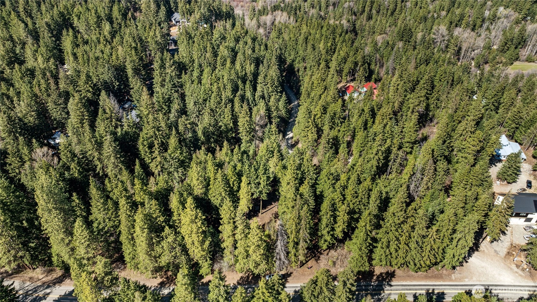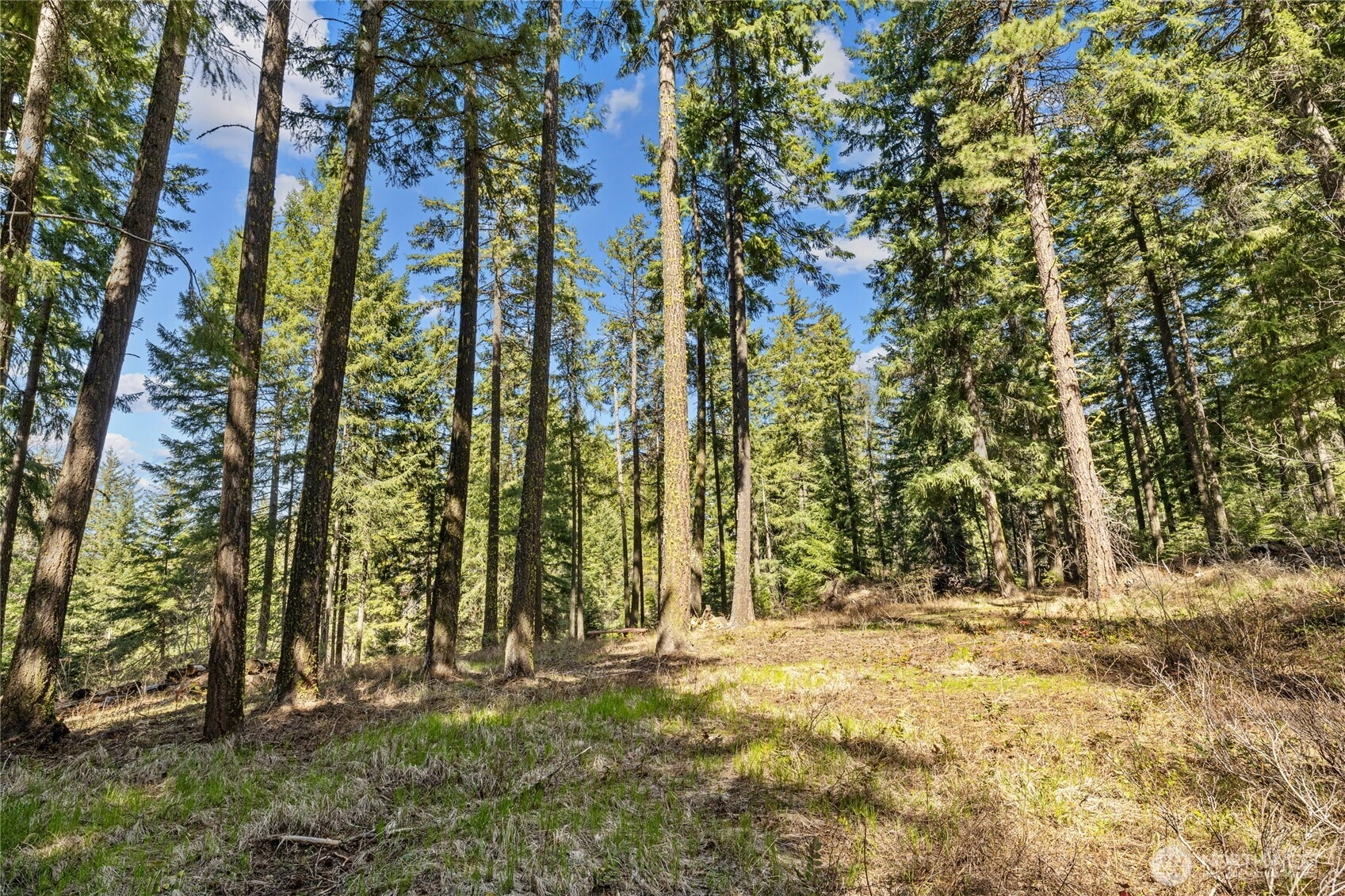 5.5+ acres of timbered land with easy access off of Westside Road onto partially cleared building site that offers view and peak a boo Stuart Mountain Range view with some tree removal. Property continues down along Banti Creek road to bottom close to river. Bottom property is flat and might be ok for work shop or horse barn, maybe corral (check with county). On bottom you'll see drive way to gate and fence, this is the north boundary line of listed property. Follow fence eastward which would be the access point for bottom portion of parcel. Approx. NE corner is marked by pink flag.