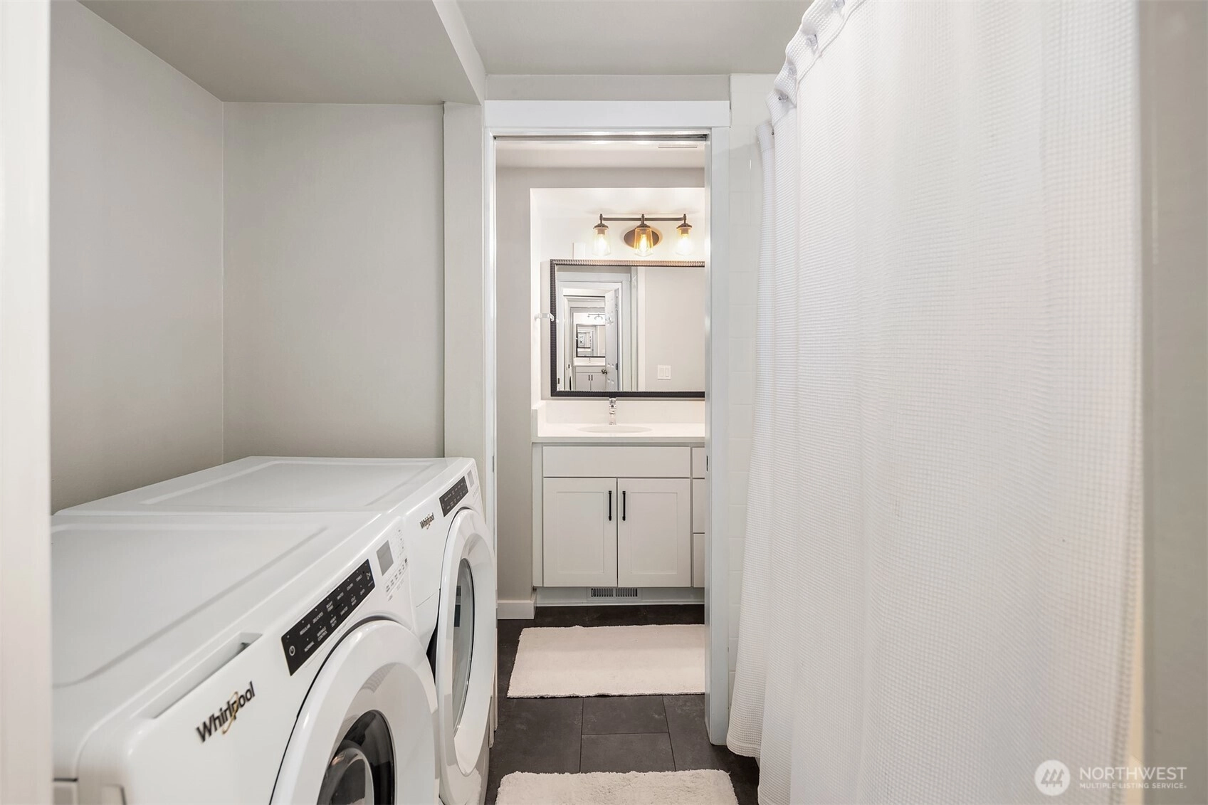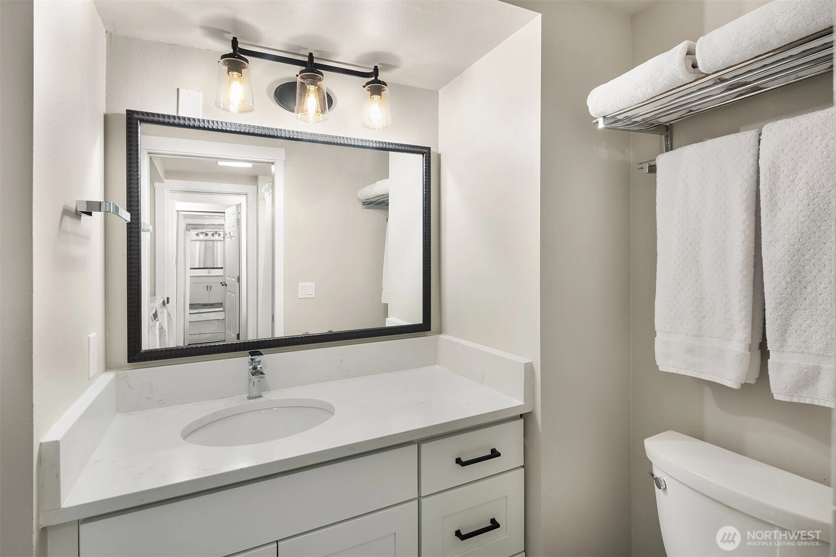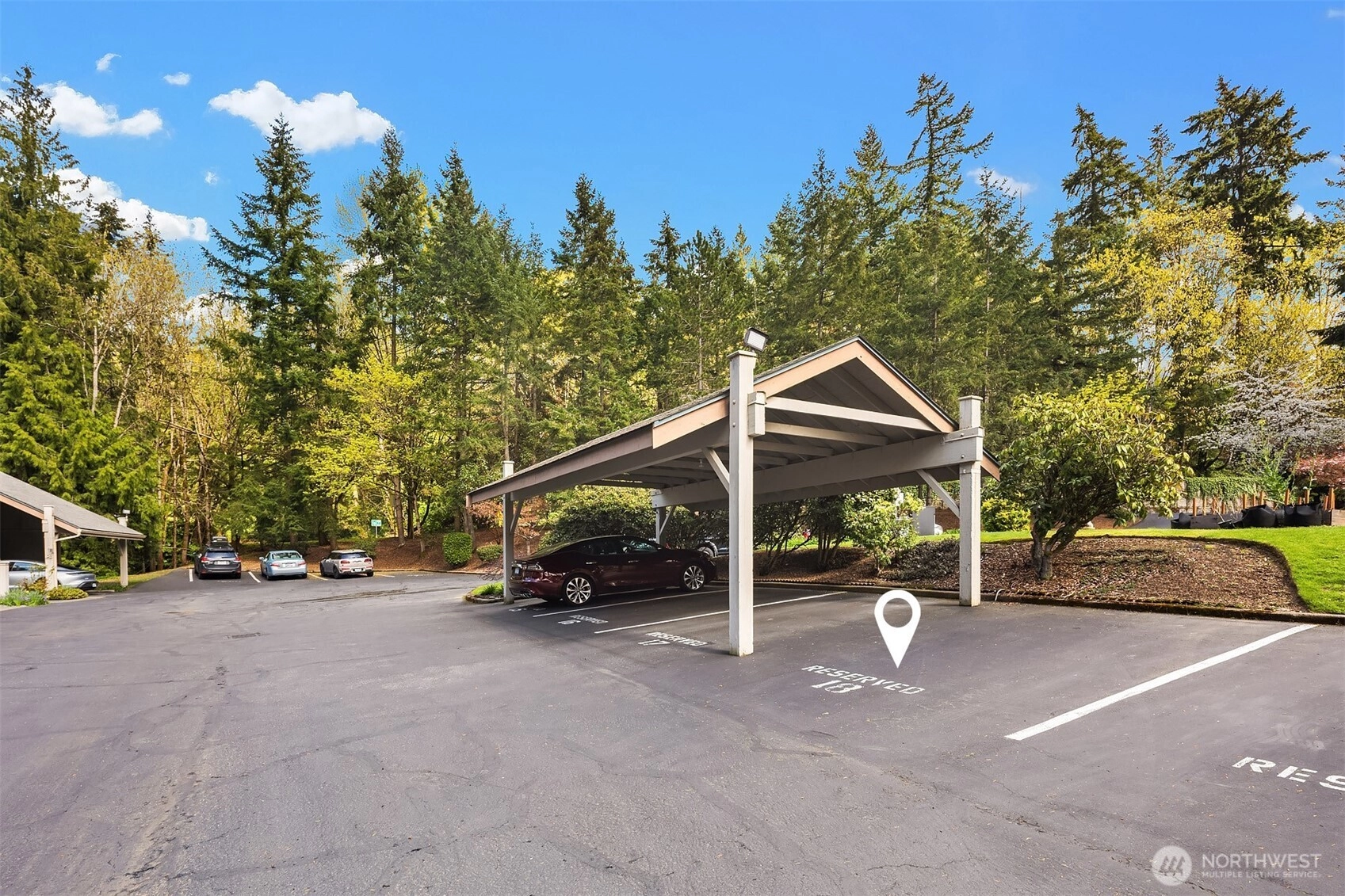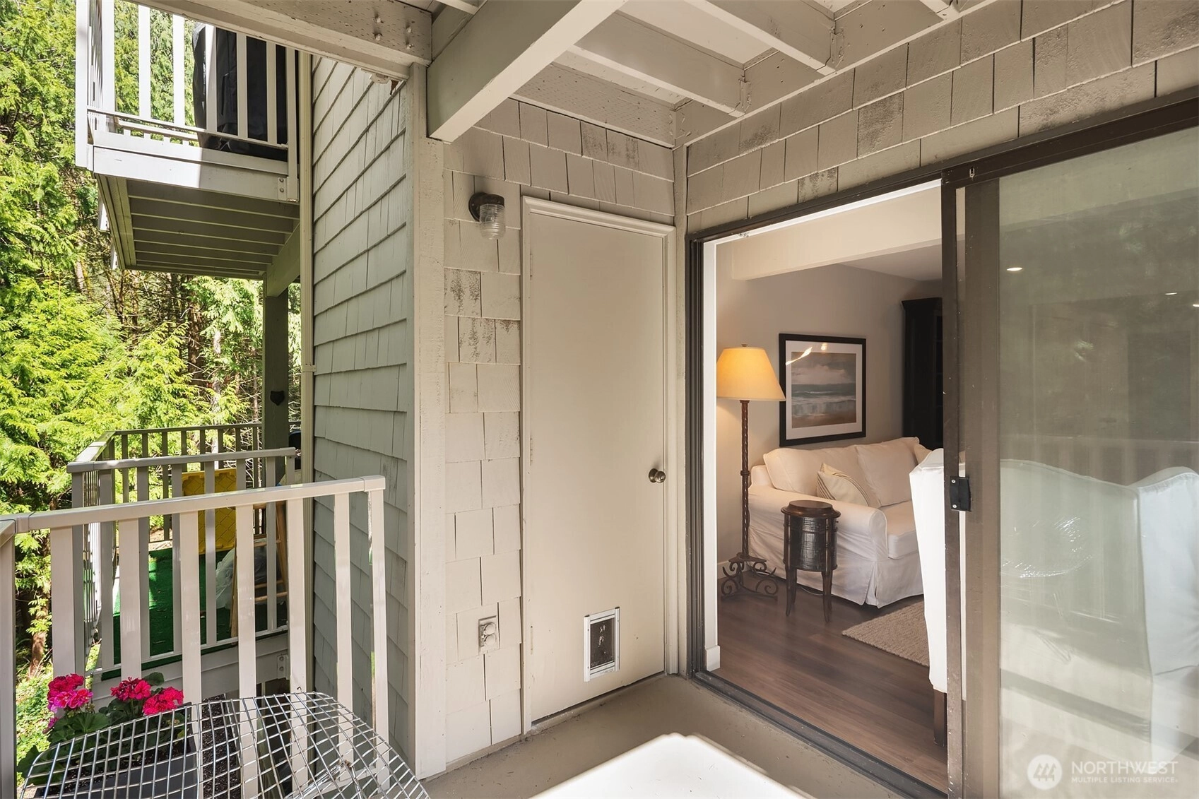 Welcome to Village Park Condominiums! This charming main-level unit offers convenient, stair-free living with 2 bedrooms, 1 full bath, and in-unit washer & dryer. Enjoy the comfort of an updated kitchen and bathroom, along with ample storage and two reserved parking spots. Step onto your private balcony and take in the peaceful greenbelt views—your own quiet retreat. Centrally located near Yarrow and Houghton, with easy access to I-405 and 520, you're just minutes from downtown Kirkland, Bellevue, and a quick commute to Seattle. HOA includes Water, Sewer, Garbage, Cable & Common Area Maintenance. This is the ideal blend of location, comfort, and convenience.