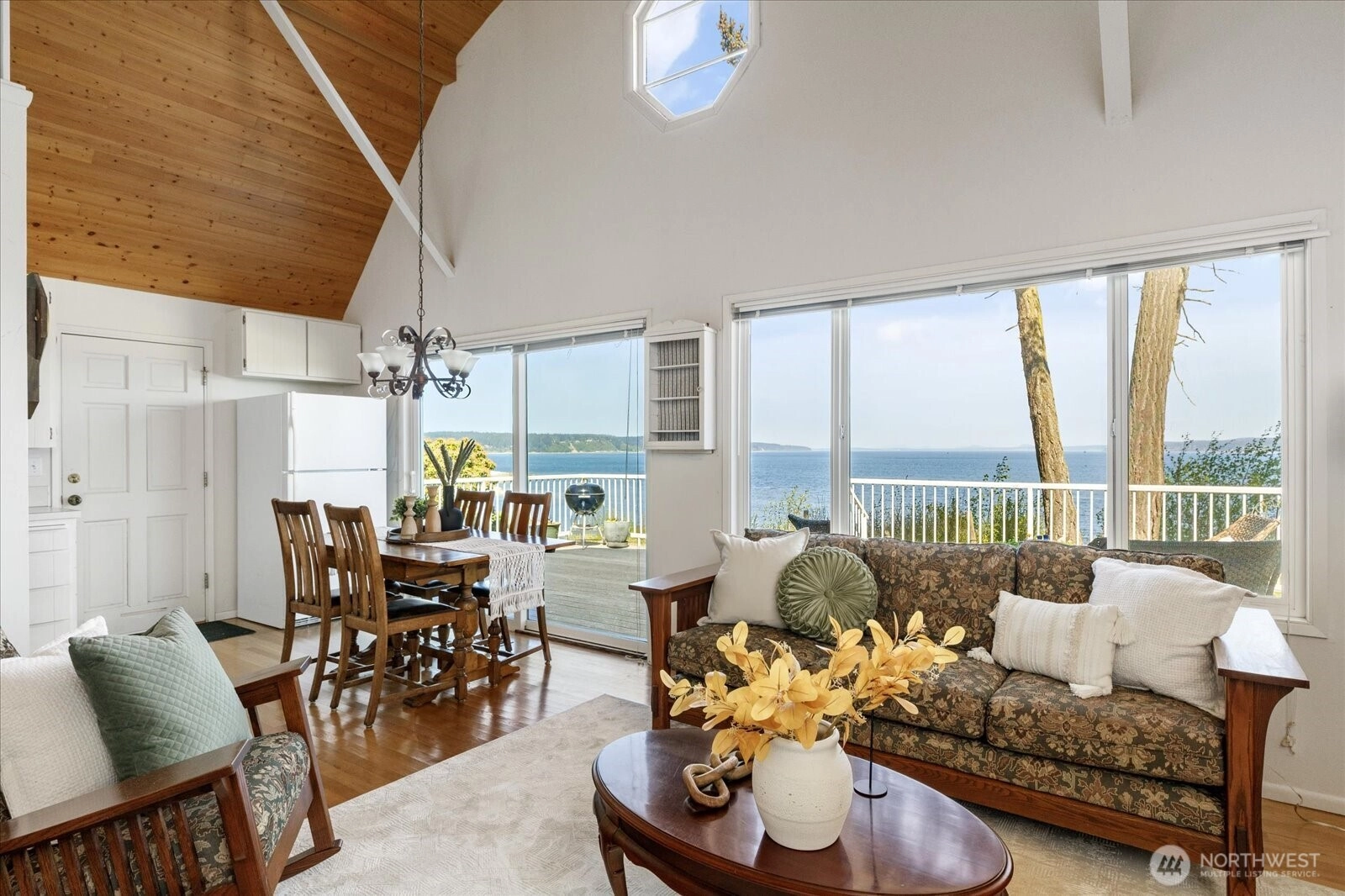 Imagine waking to sweeping views of Saratoga Passage, the San Juans, and the Olympics from this charming Whidbey Island waterfront cabin. Nestled between Langley and Freeland, it offers 50' of frontage with beach rights—perfect for kayaking or walking to Baby Island at low tide. Relax on the deck watching whales and harbor seals, cozy up by the fire, & savor the peace of island living. A true Whidbey getaway, this inviting retreat puts you front and center for nature’s daily show.