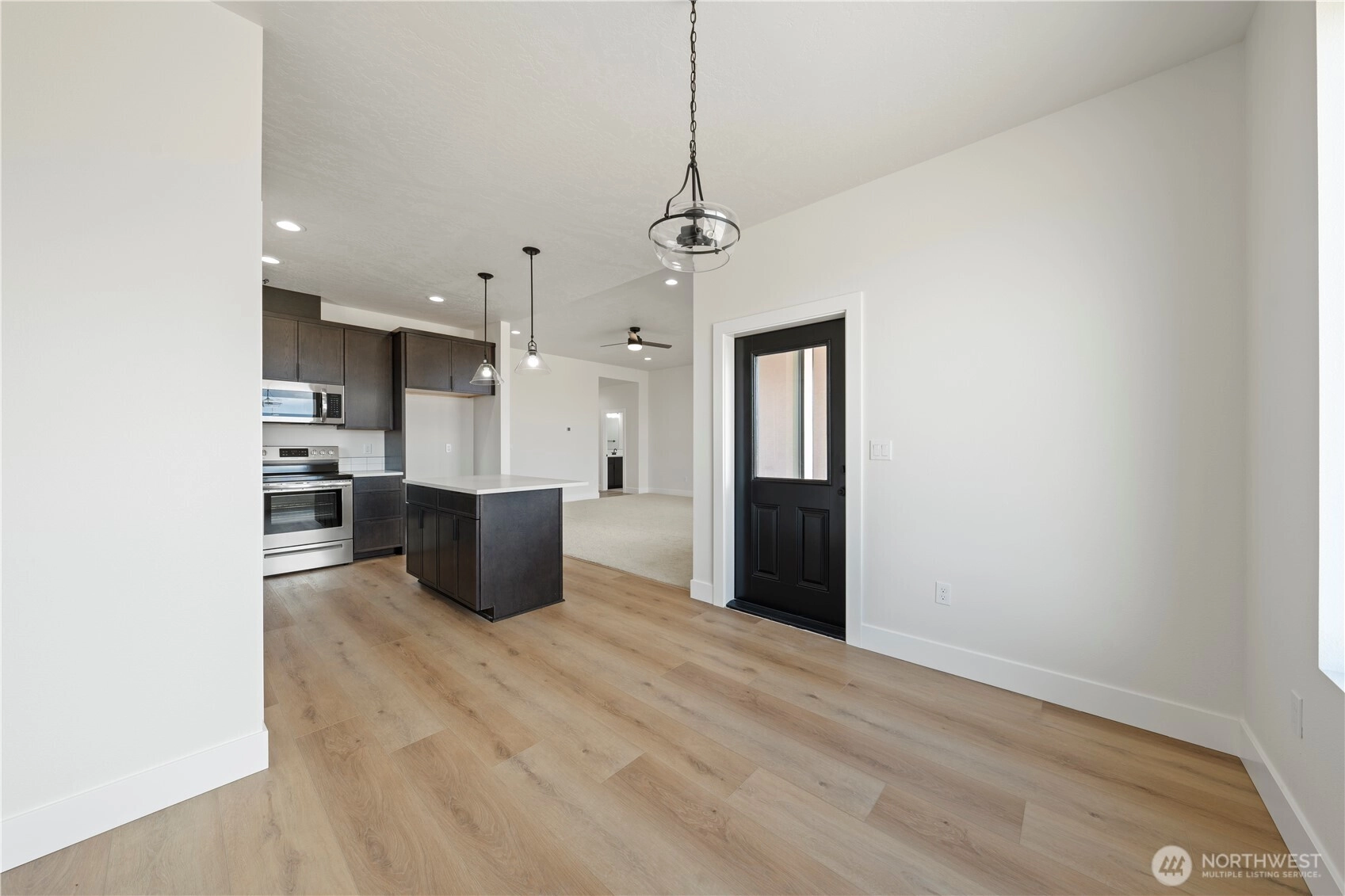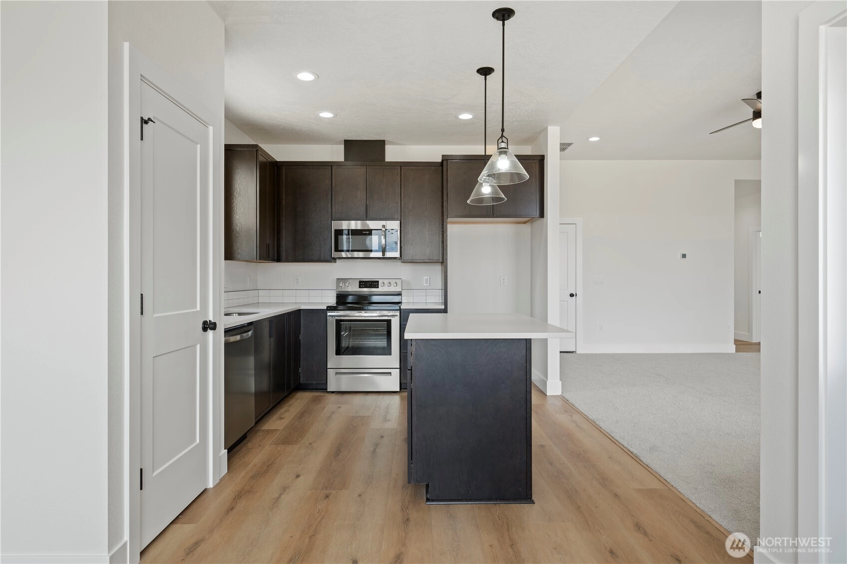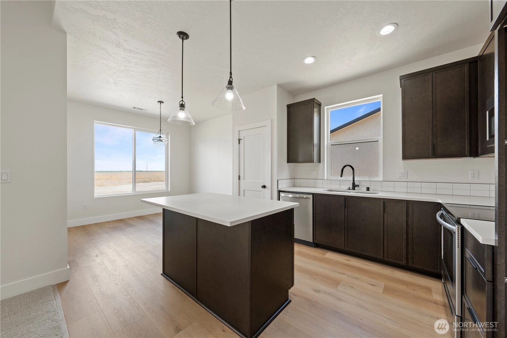 Stylish & Smart Living. This efficient 1,487 SF rambler combines thoughtful design with modern comfort. The open-concept kitchen flows seamlessly into a bright great room with soaring tall ceilings, creating an airy, spacious feel. The home features three bedrooms, with the primary suite thoughtfully placed on the opposite side of the home for added privacy. It includes a generous walk-in closet and a private bath. A covered front entry, dedicated laundry room, and a spacious 2 car garage adds convenience and function. Palos Verdes is offering a $10,000 incentive exclusively when you finance with their Preferred Lender.