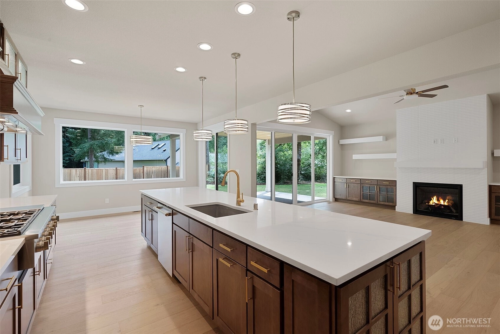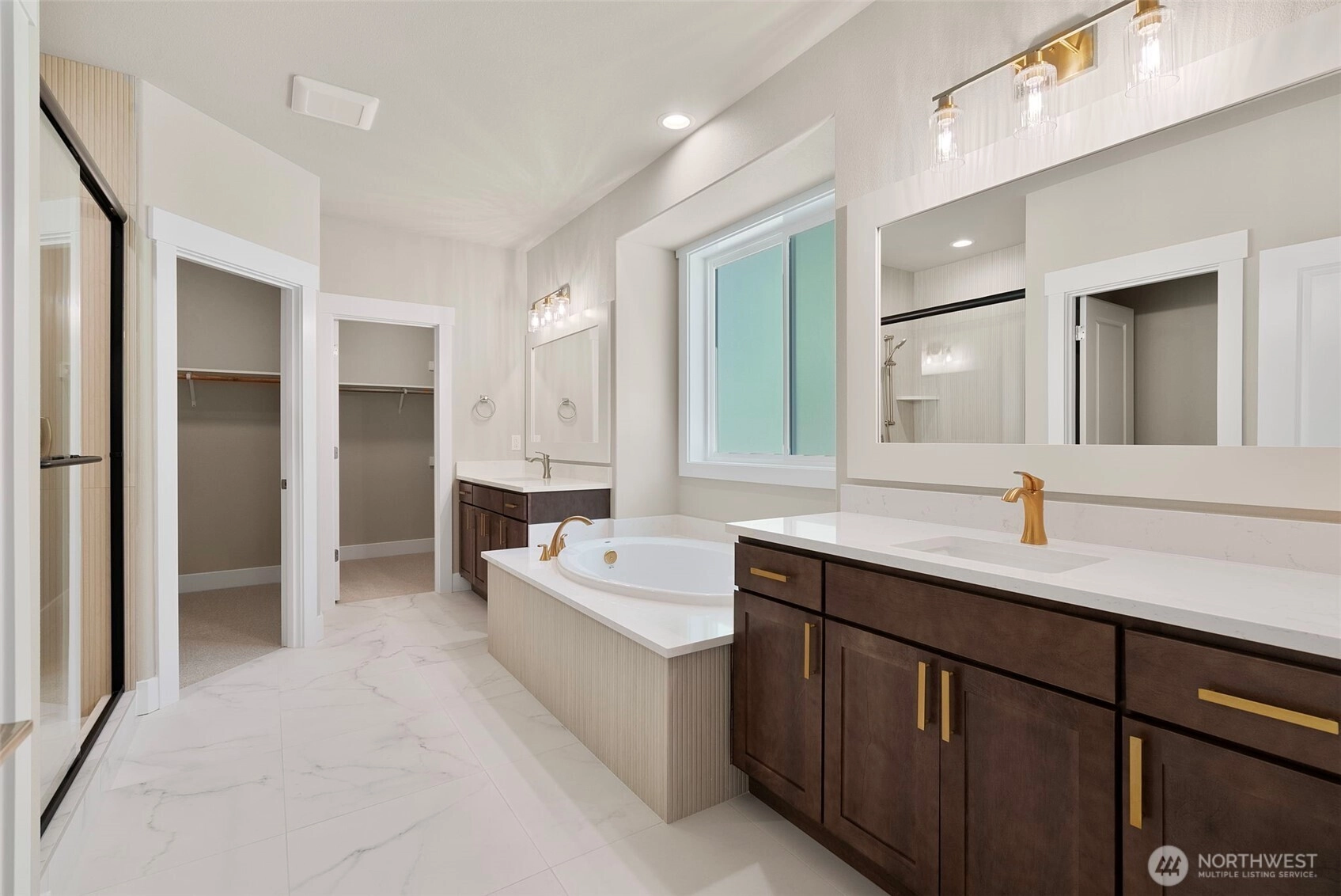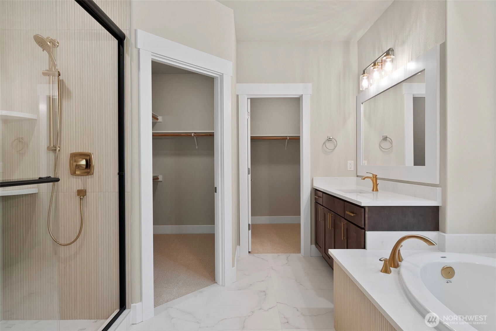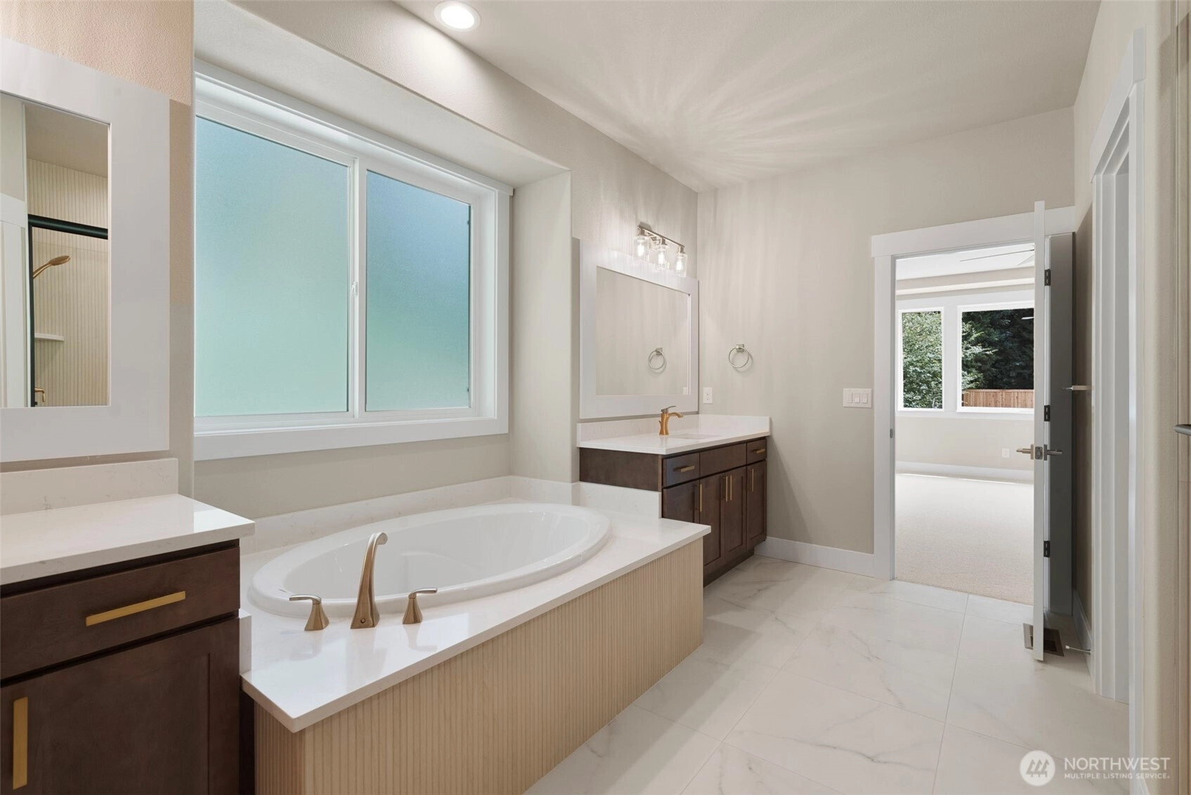 Rob Rice Homes presents another exceptional new construction home in West Oly, beautifully situated on a nearly acre corner lot. Designed with high-end finishes, every space reflects thoughtful craftsmanship—from elegant wainscoting to the gourmet kitchen featuring Cocoa maple cabinetry and premium Monogram appliances. The main-floor primary offers a spa-like retreat with a full tile shower and dual walk-in closets. A split-bedroom layout provides privacy, with two additional bedrooms, a den, and a ¾ bath on the opposite side of the home. Upstairs, you'll find a rec room, bonus room, full bath, and a stylish bar area with beverage cooler. Landscaped and irrigated around the home!
