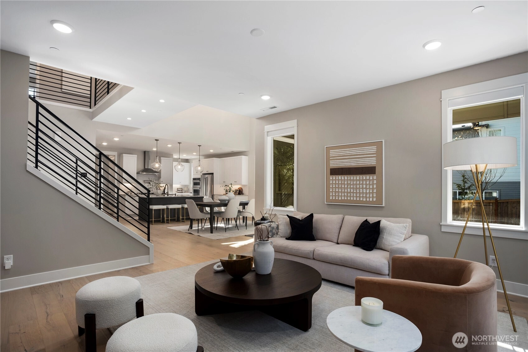 Welcome to this luxurious south-facing estate, thoughfully curated with high-end upgrades and cutting-edge smart tech. The expansive chef's kitchen showcases custom quartz counters, a touch faucet, under-cabinet lighting & elite KitchenAid/Samsung appliances. Soaring ceilings, extra-wide engineered hardwood, and oversized rooms create a grand sense of space. Dimmable lighting transitions between warm/cool tones. Custom California Closets, a spacious laundry room w/ premium appliances & a 3-car garage offer upscale convenience. Smart home automation and Ring system keep you secure & connected. Advanced air filtration, full sprinkler systems, and a covered patio complete this dream home—perfectly positioned in a highly desired community!