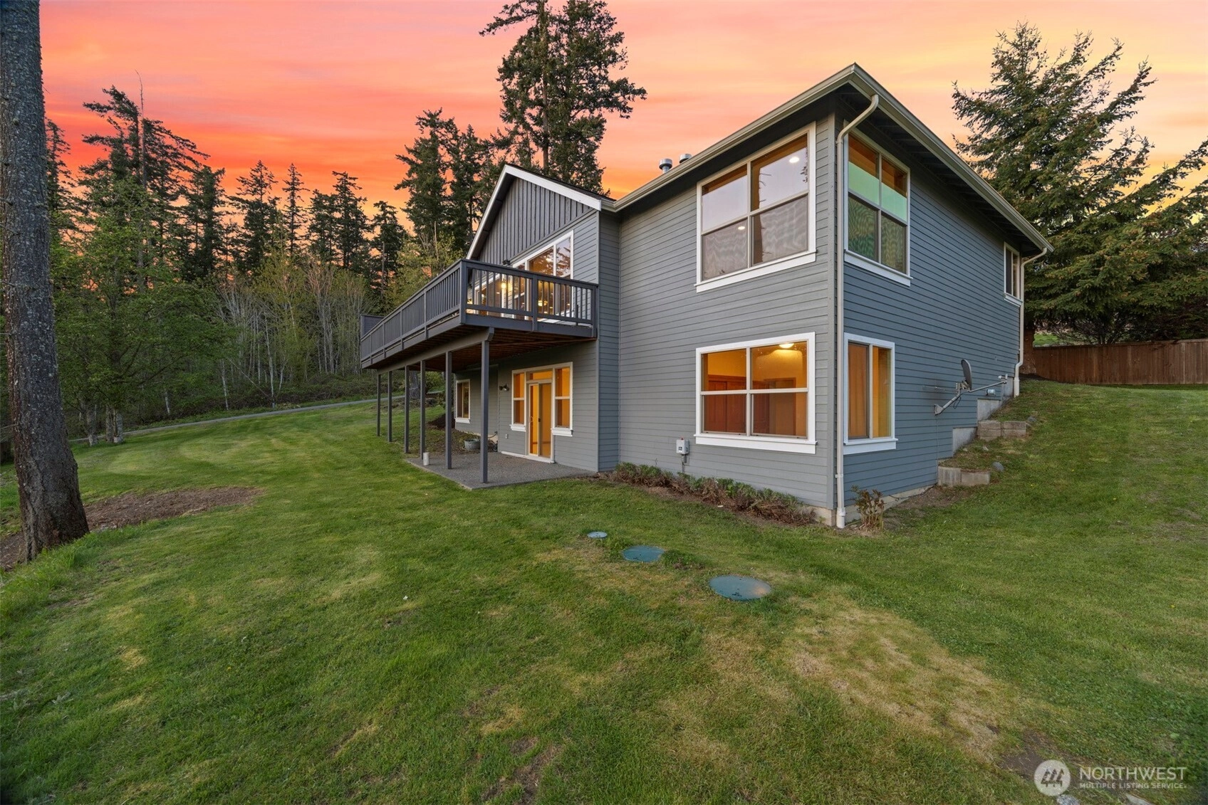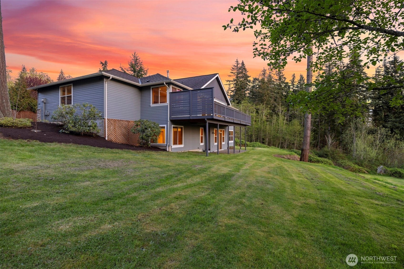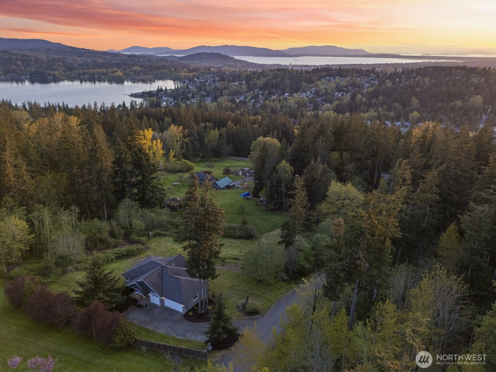 Northwest Contemporary on 5.5 private acres in the heart of Silver Beach—one of Bellingham’s most sought-after neighborhoods. Enjoy fresh interior and exterior paint, beautifully refinished wood floors, and a sun-soaked open-concept great room. Fir doors and trim add warmth and character throughout the home. Main-level primary suite features an ensuite bathroom with dual vanities, a soaking tub, and a stand-up shower. Both levels include a cozy fireplace—perfect for gathering or relaxing. The daylight basement offers two oversized bedrooms, a media room, and bonus space. Take in panoramic views of Bellingham Bay and the San Juan Islands, and catch stunning sunsets from your deck. Low-maintenance landscape & 3 car garage complete this home!