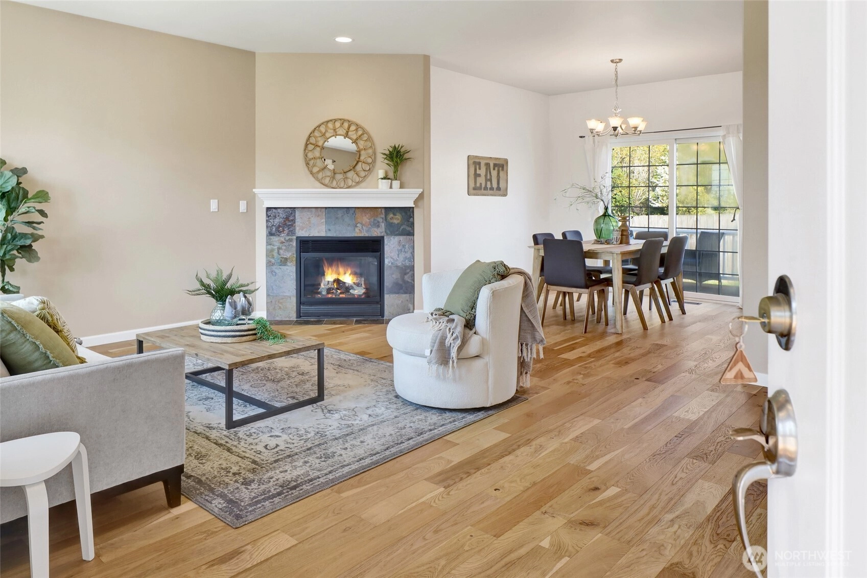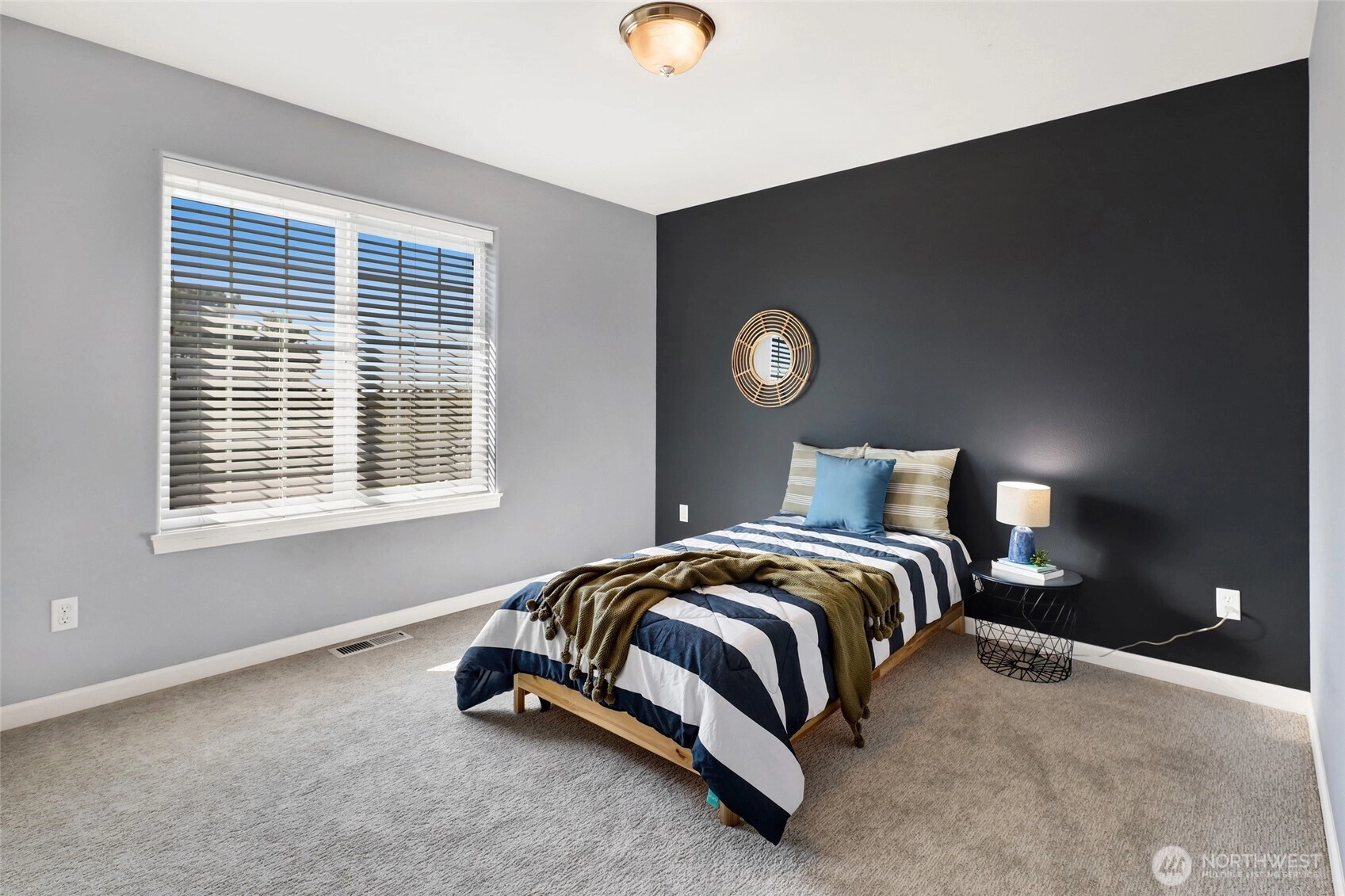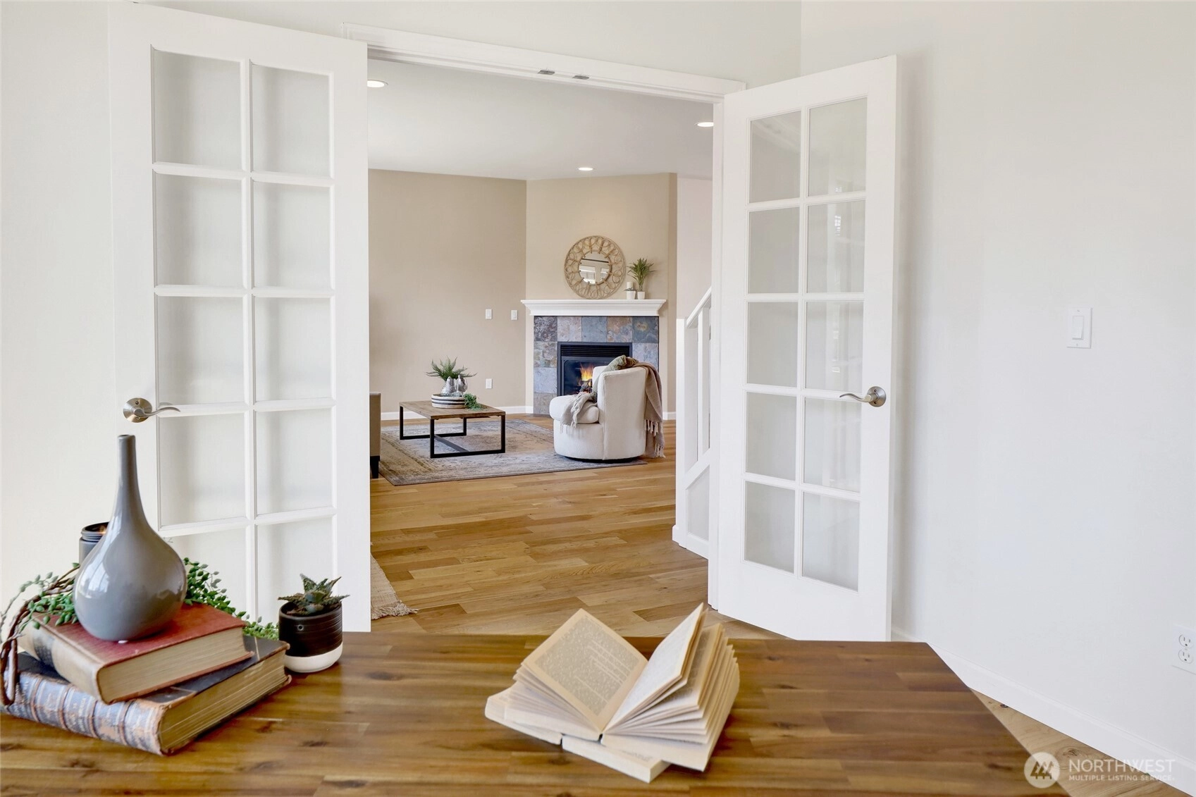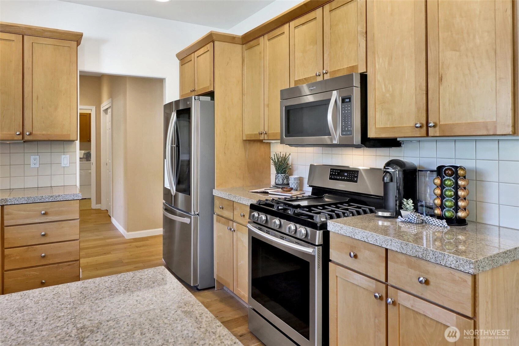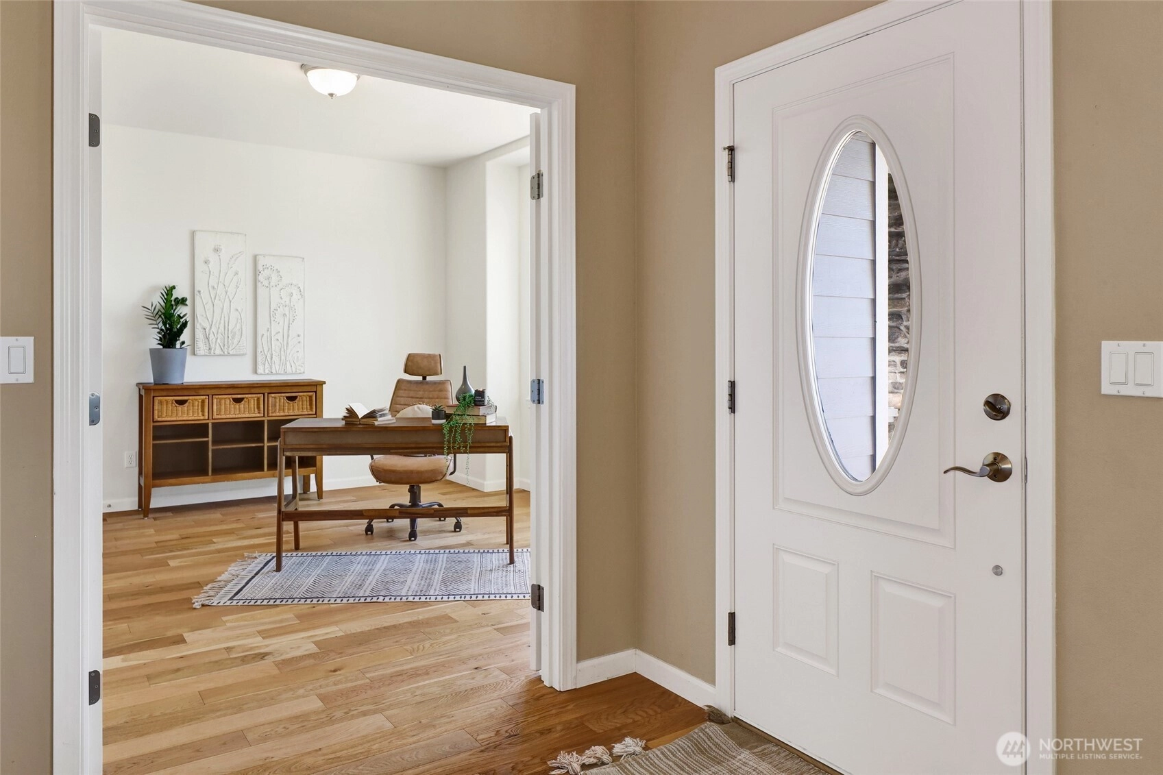 A quick stroll to Whole Foods, the Aquatic Center, Sportsplex & dining, this beautiful turnkey home sits quietly nestled in the Puget neighborhood. Thoughtfully designed & updated throughout with new hardwoods & carpet, the main level includes a versatile front room—ideal as an office, guest space, or den—an open living room with gas fireplace flowing into the dining area & kitchen with granite countertops, updated stainless appliances & walk-in pantry. The generous main level primary features a 5-piece en-suite & walk-in closet. Upstairs are two more bedrooms & a full bath. Outside: beautifully refreshed exterior paint, new decking & a recently poured patio (hot tub rated). The fully fenced backyard with cherry tree to add seasonal charm.