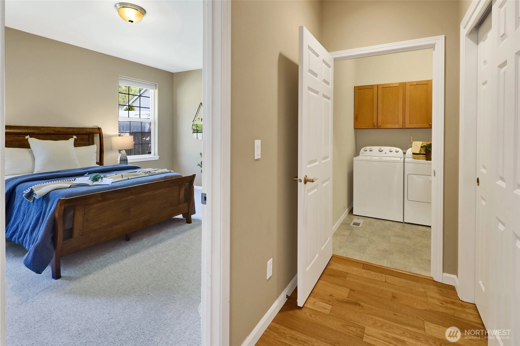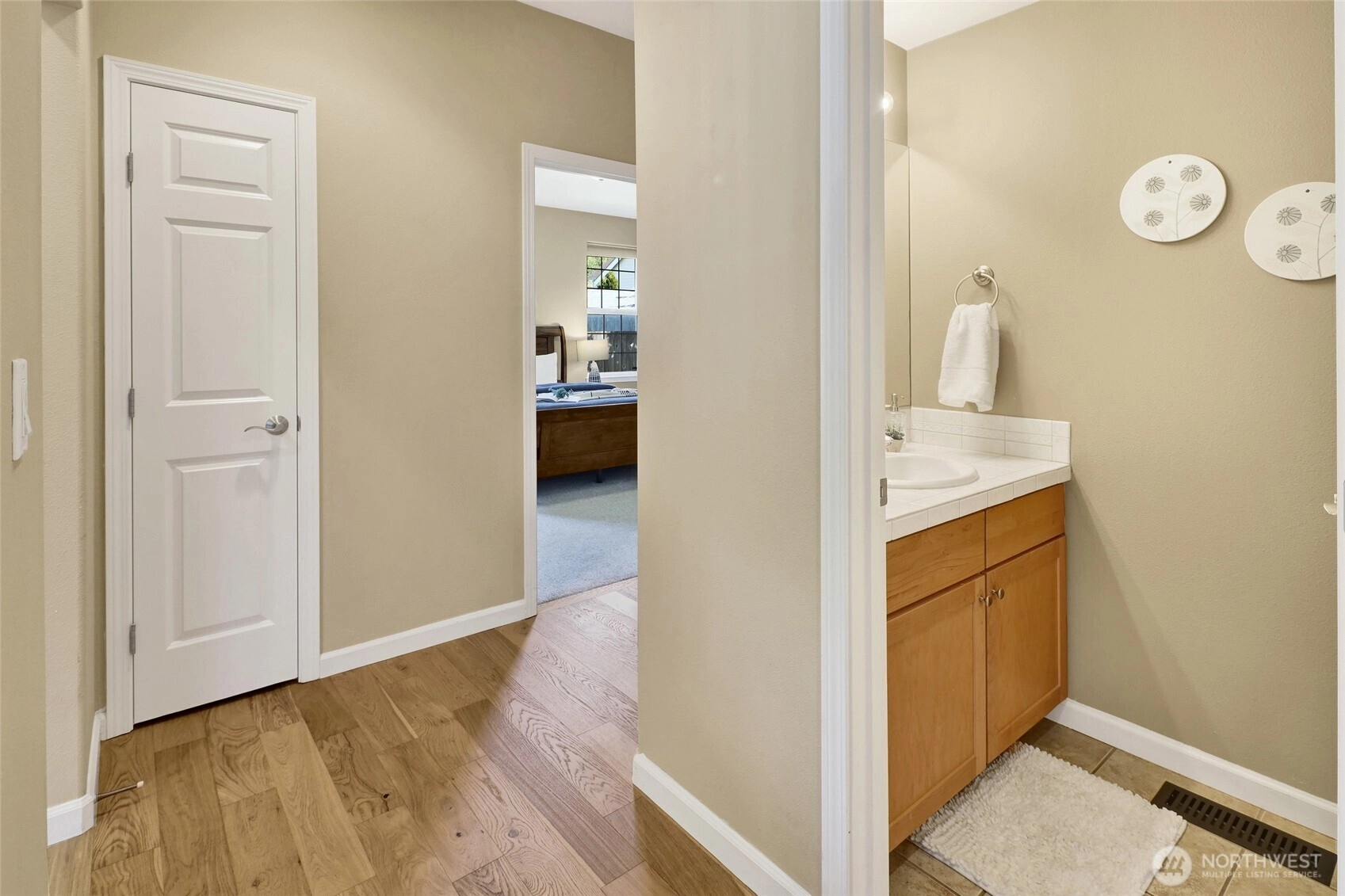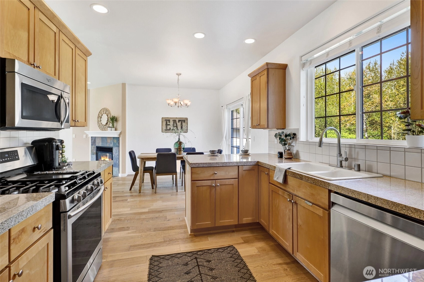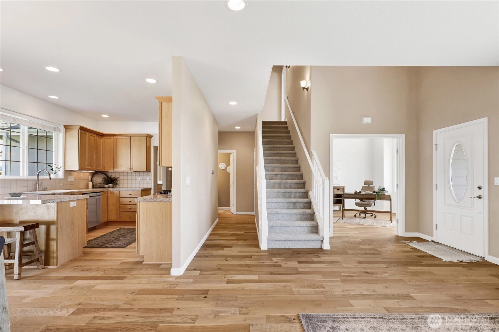 A quick stroll to Whole Foods, the Aquatic Center, Sportsplex & dining, this beautiful turnkey home sits quietly nestled in the Puget neighborhood. Thoughtfully designed & updated throughout with new hardwoods & carpet, the main level includes a versatile front room—ideal as an office, guest space, or den—an open living room with gas fireplace flowing into the dining area & kitchen with granite countertops, updated stainless appliances & walk-in pantry. The generous main level primary features a 5-piece en-suite & walk-in closet. Upstairs are two more bedrooms & a full bath. Outside: beautifully refreshed exterior paint, new decking & a recently poured patio (hot tub rated). The fully fenced backyard with cherry tree to add seasonal charm.
