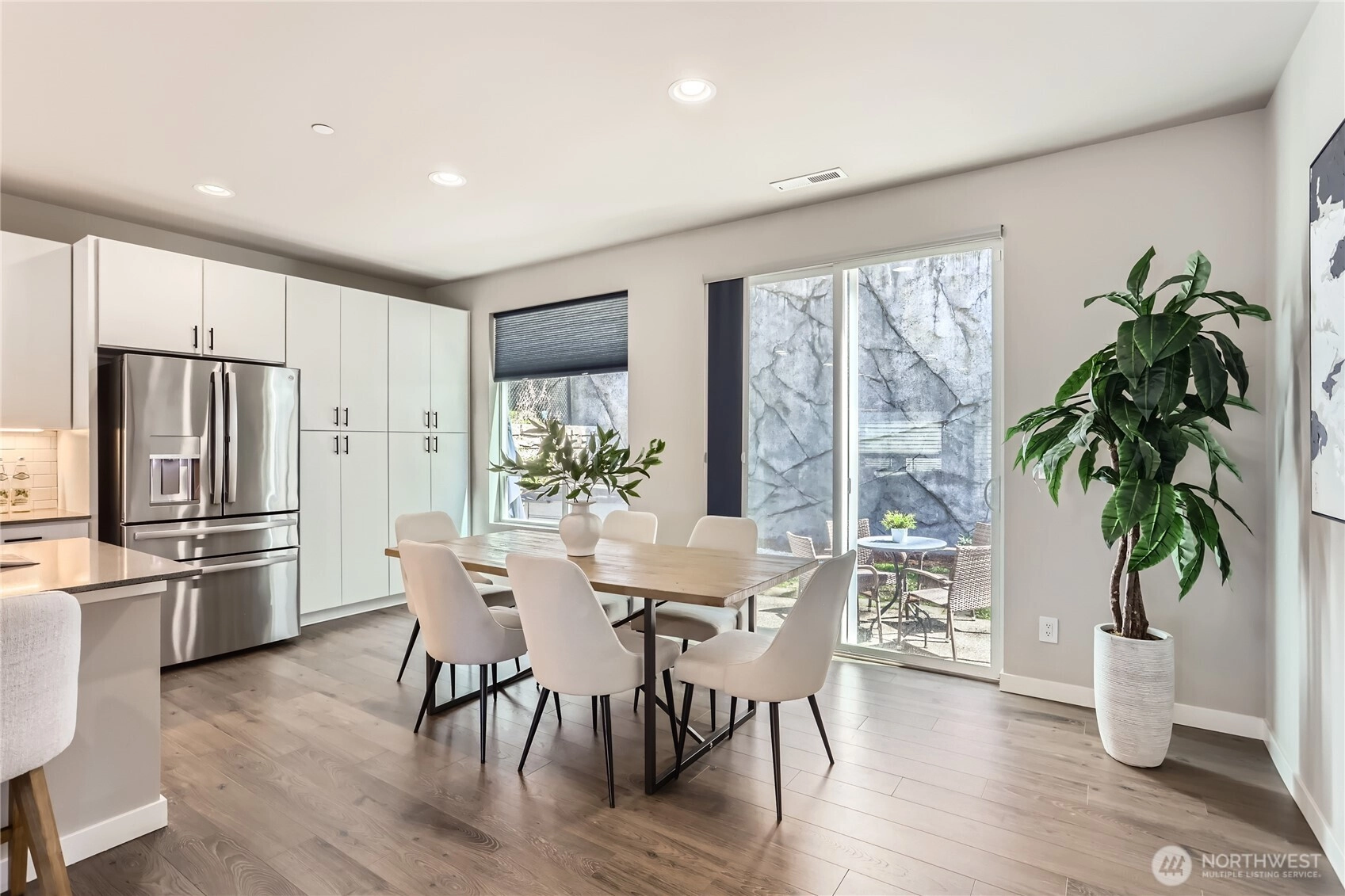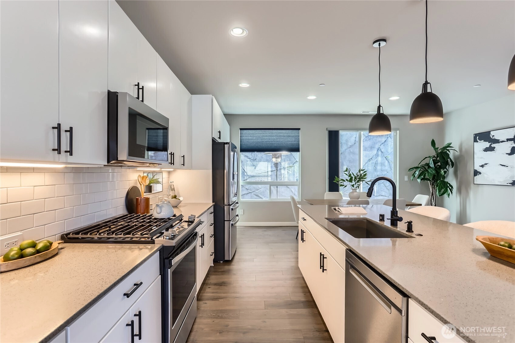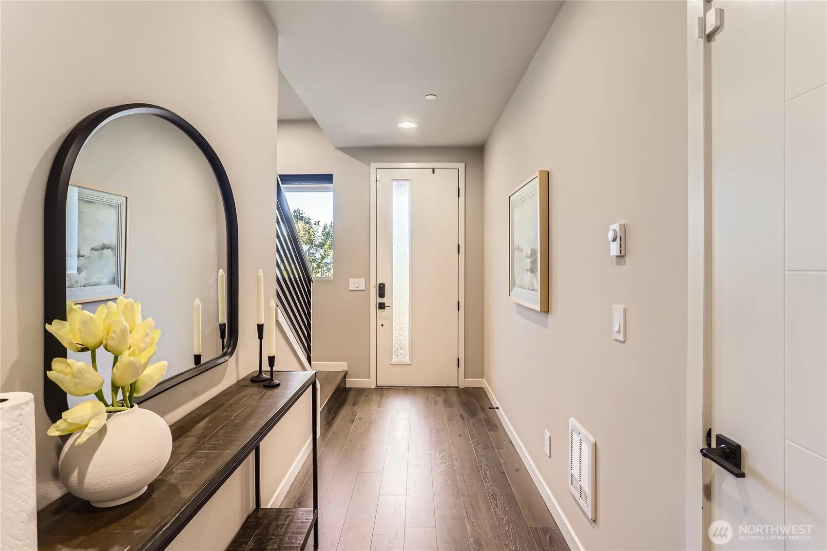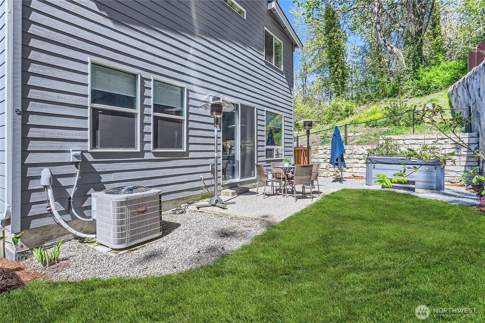 The 1st resale in Creekside Meadows community- back corner lot w/tons of privacy, only 1 direct neighbor & extra off-street parking. Better than new home with SO MANY upgrades - A/C, hot tub, designer blinds, 50 Amp EV Charger + more. You'll love the main floor's kitchen/dining/great room combo w/huge island, both a covered balcony off the great room & patio off the dining space at the back of the home. Fully fenced rear yard great for pets, entertaining & relaxing. Upper Floor w/primary bedroom, bathroom & walk-in closet, additional 2 bedrooms, full bath, laundry, and loft space. Entry level offers 4th bedroom, 3/4 bath, walk-in closet & storage that could make a great guest suite, playroom or home office. Edmonds Schools. Welcome Home.