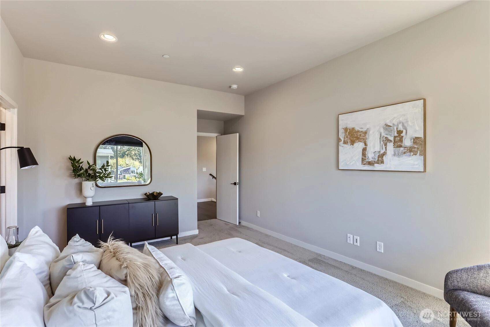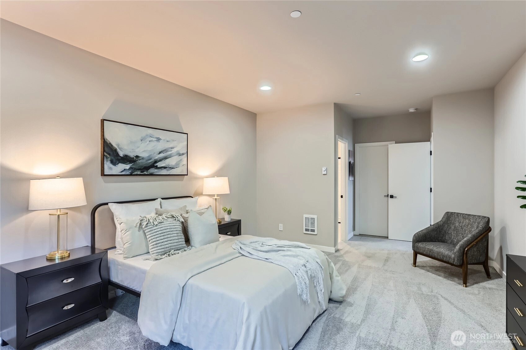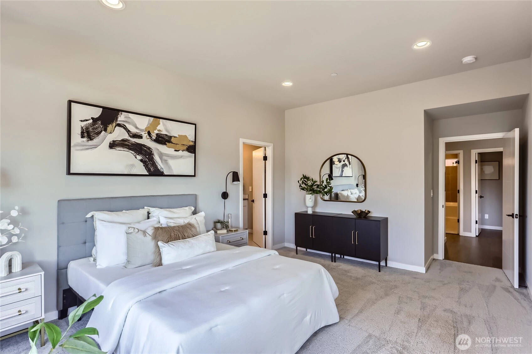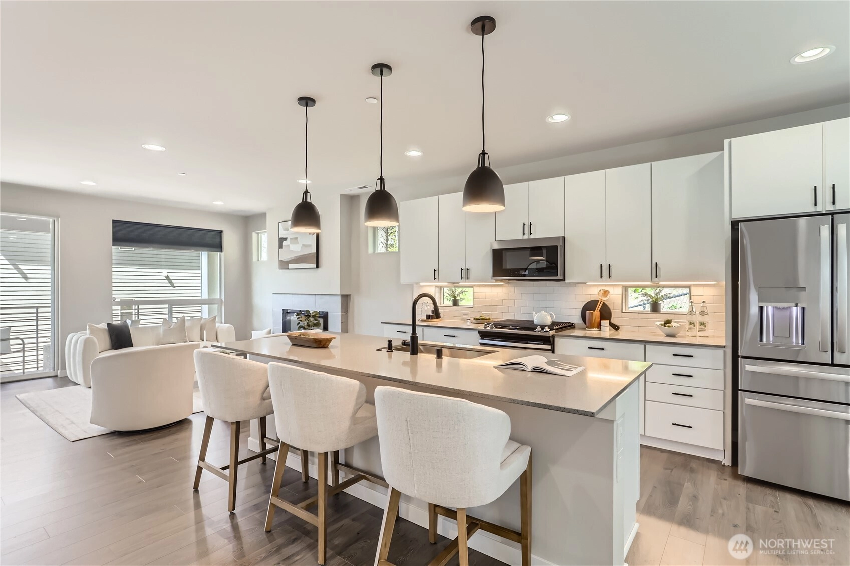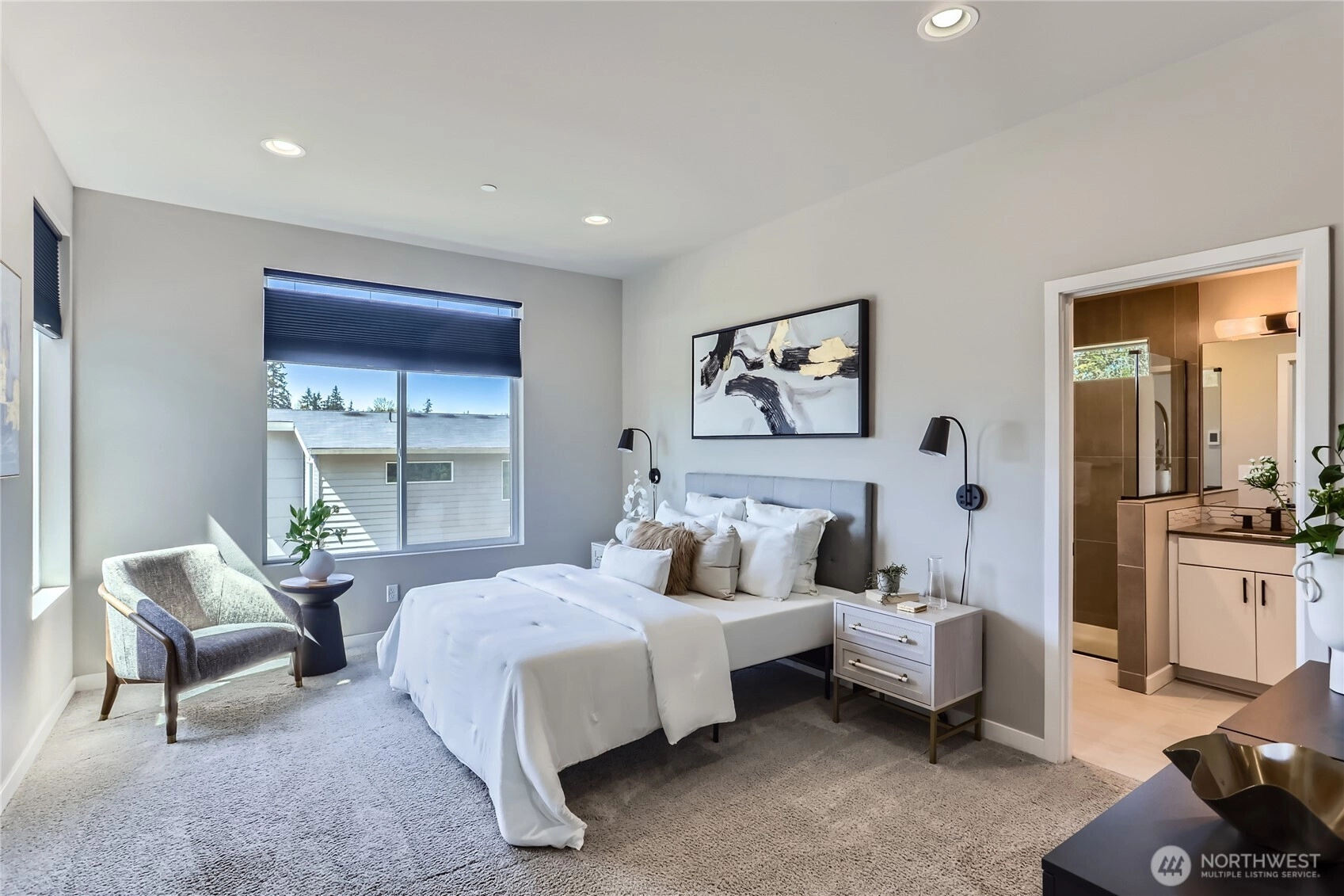 The 1st resale in Creekside Meadows community- back corner lot w/tons of privacy, only 1 direct neighbor & extra off-street parking. Better than new home with SO MANY upgrades - A/C, hot tub, designer blinds, 50 Amp EV Charger + more. You'll love the main floor's kitchen/dining/great room combo w/huge island, both a covered balcony off the great room & patio off the dining space at the back of the home. Fully fenced rear yard great for pets, entertaining & relaxing. Upper Floor w/primary bedroom, bathroom & walk-in closet, additional 2 bedrooms, full bath, laundry, and loft space. Entry level offers 4th bedroom, 3/4 bath, walk-in closet & storage that could make a great guest suite, playroom or home office. Edmonds Schools. Welcome Home.