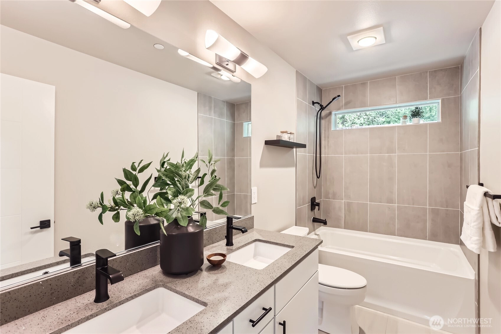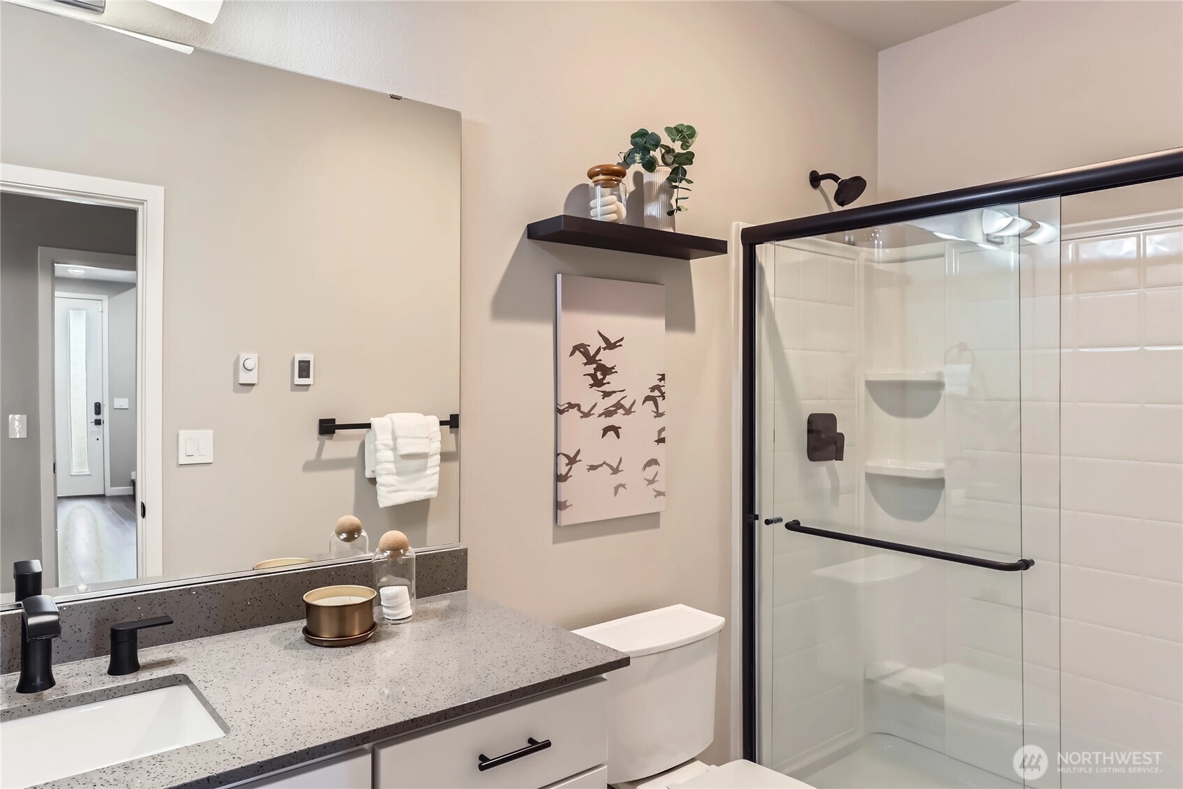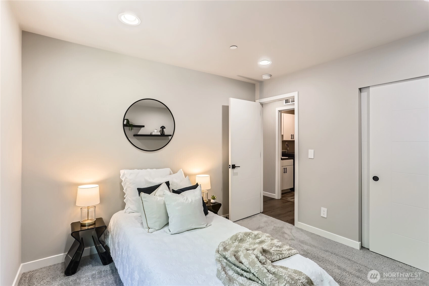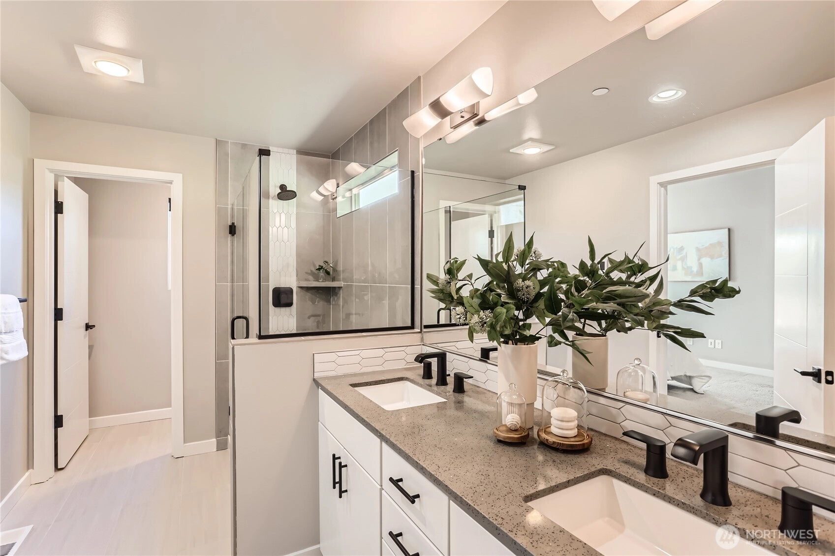 The 1st resale in Creekside Meadows community- back corner lot w/tons of privacy, only 1 direct neighbor & extra off-street parking. Better than new home with SO MANY upgrades - A/C, hot tub, designer blinds, 50 Amp EV Charger + more. You'll love the main floor's kitchen/dining/great room combo w/huge island, both a covered balcony off the great room & patio off the dining space at the back of the home. Fully fenced rear yard great for pets, entertaining & relaxing. Upper Floor w/primary bedroom, bathroom & walk-in closet, additional 2 bedrooms, full bath, laundry, and loft space. Entry level offers 4th bedroom, 3/4 bath, walk-in closet & storage that could make a great guest suite, playroom or home office. Edmonds Schools. Welcome Home.