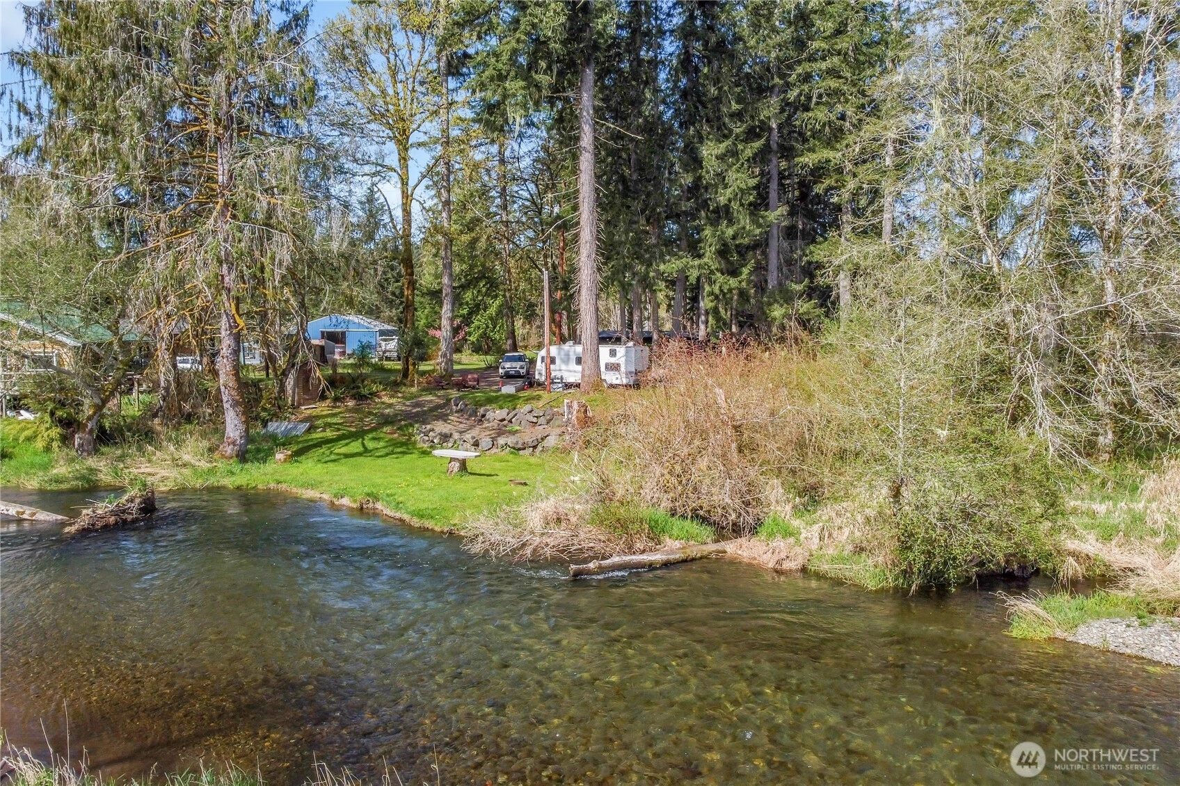 Escape to Nature at 21 W River Dr W, Elma! Tucked along the banks of Decker Creek, this 2-bedroom, 1-bath cabin sits on 1.5 peaceful acres spanning three parcels. Enjoy low-bank creek access for fishing, relaxing, or simply soaking in the quiet beauty of nature. The home features a newer roof and a flexible layout ready for your updates. Fiber internet is available—ideal for remote work, full-time living, or a weekend retreat. Outbuildings include a large bonus space with studio or workshop potential, garden area, and RV parking with power and water hookups. Just 45 minutes to Olympia and an hour to the coast, with outdoor recreation all around. A rare opportunity to make this special place your own and enjoy the best of the NW!