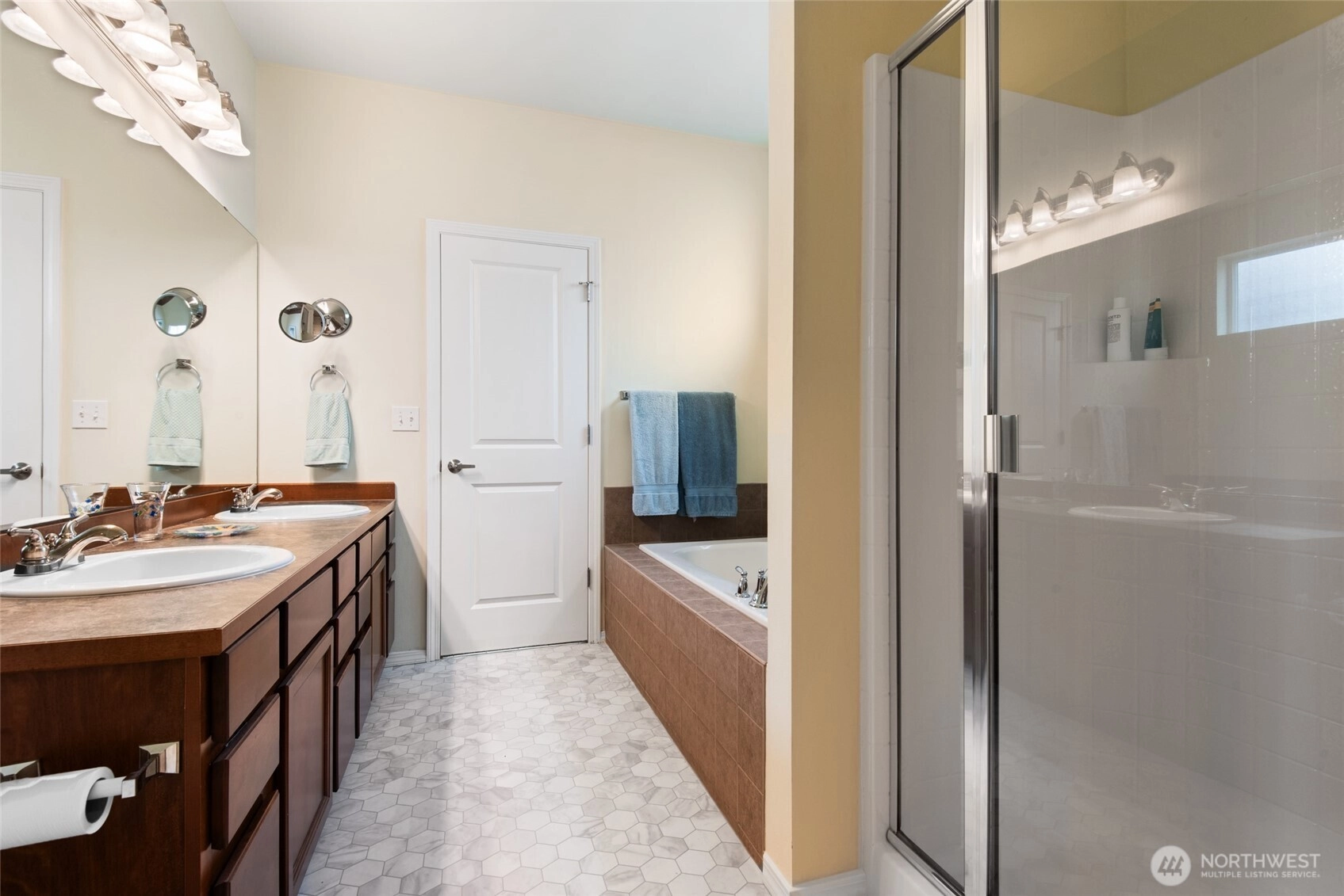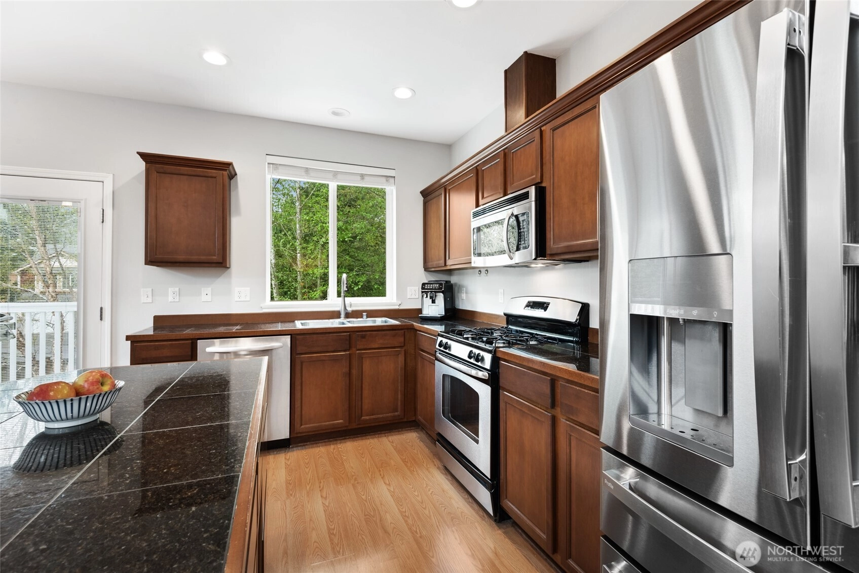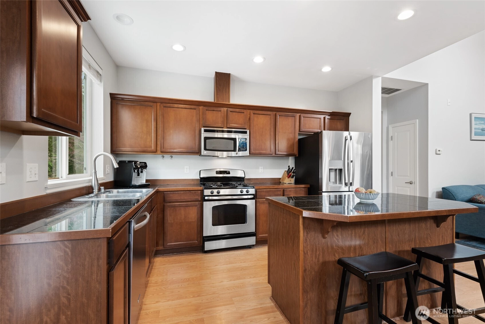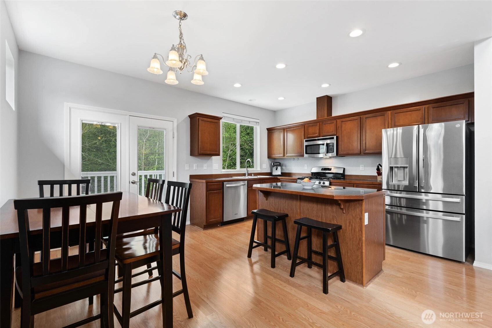 Experience comfort and convenience in this beautifully maintained 4-bed, 2.5-bath NW Craftsman tucked into a private Bothell neighborhood. The main-level primary suite includes an en-suite bath and walk-in closet. Enjoy a gourmet kitchen with island, stainless steel appliances, granite counters, birch cabinetry, hardwood floors, new carpet. and a smart thermostat. Soaring two-story ceilings add light and space. Step out to a private back deck and side yard bordering a greenbelt. Located near shopping, parks, transit, and in the highly rated Everett School District. Cedar shake and stone accents complete the charm. Don’t miss it!