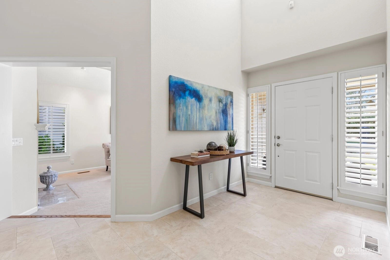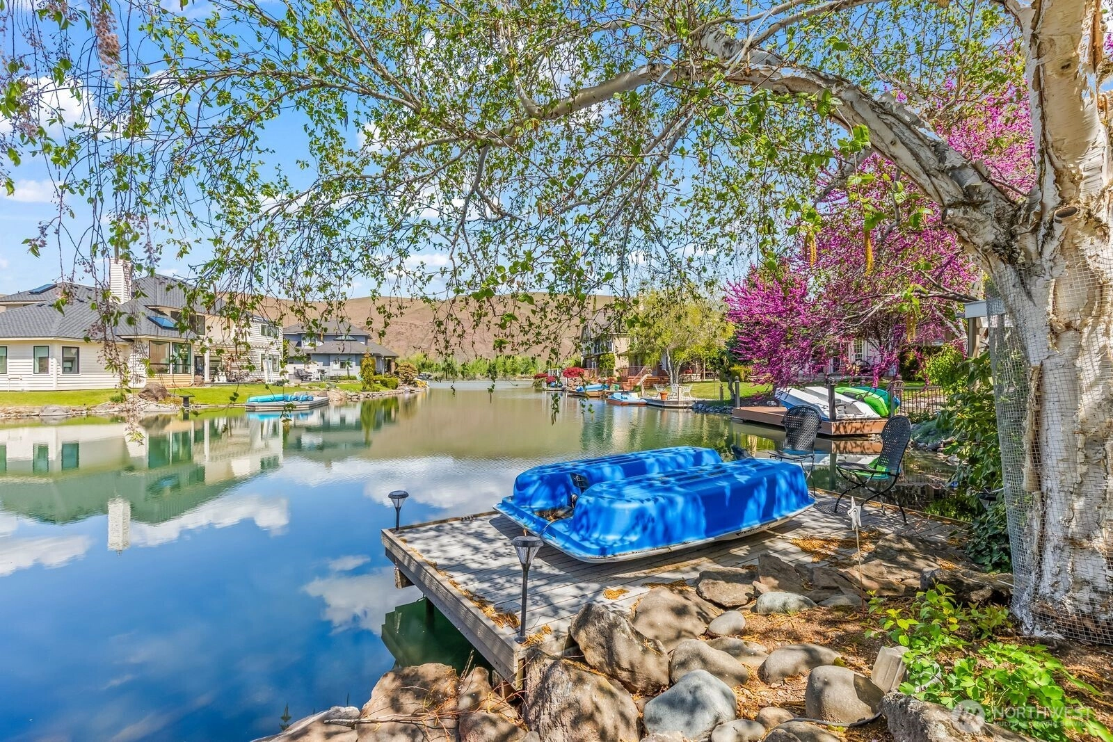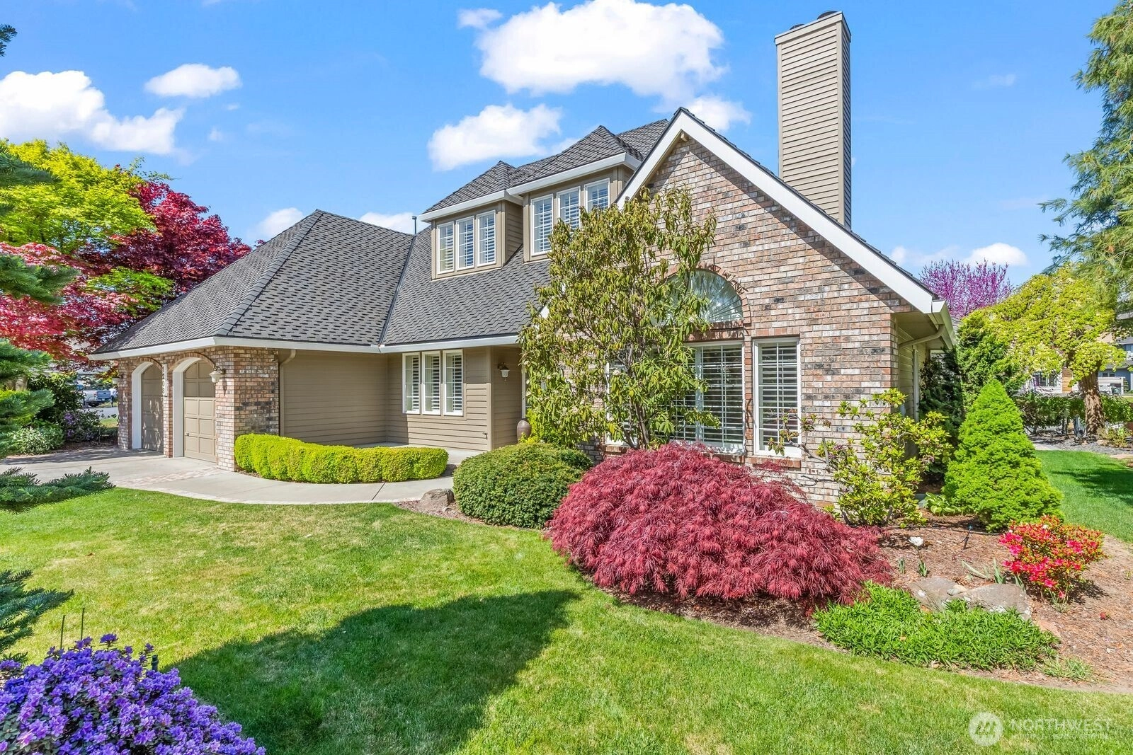 Nestled in a tranquil gated community, this stunning custom home offers a peaceful retreat. Soaring ceilings, a neutral palette, and natural light create an inviting ambiance. The open concept living area flows into a gourmet kitchen and formal dining room with views of Lake Aspen. The primary suite features a sitting area and luxurious ensuite. The main floor also includes a cozy living room with a gas fireplace and an office. Upstairs, additional bedrooms and a full bath provide guest comfort. Outside, serene patios and landscaped grounds invite relaxation. Enjoy a secure, lock-and-leave lifestyle surrounded by beauty, peace, and the perfect blend of comfort, elegance, and convenience.