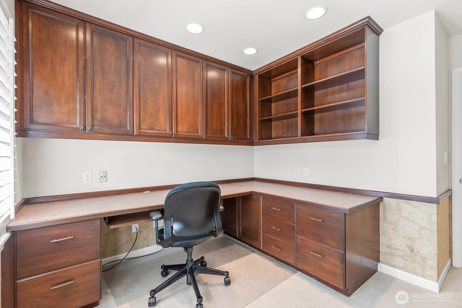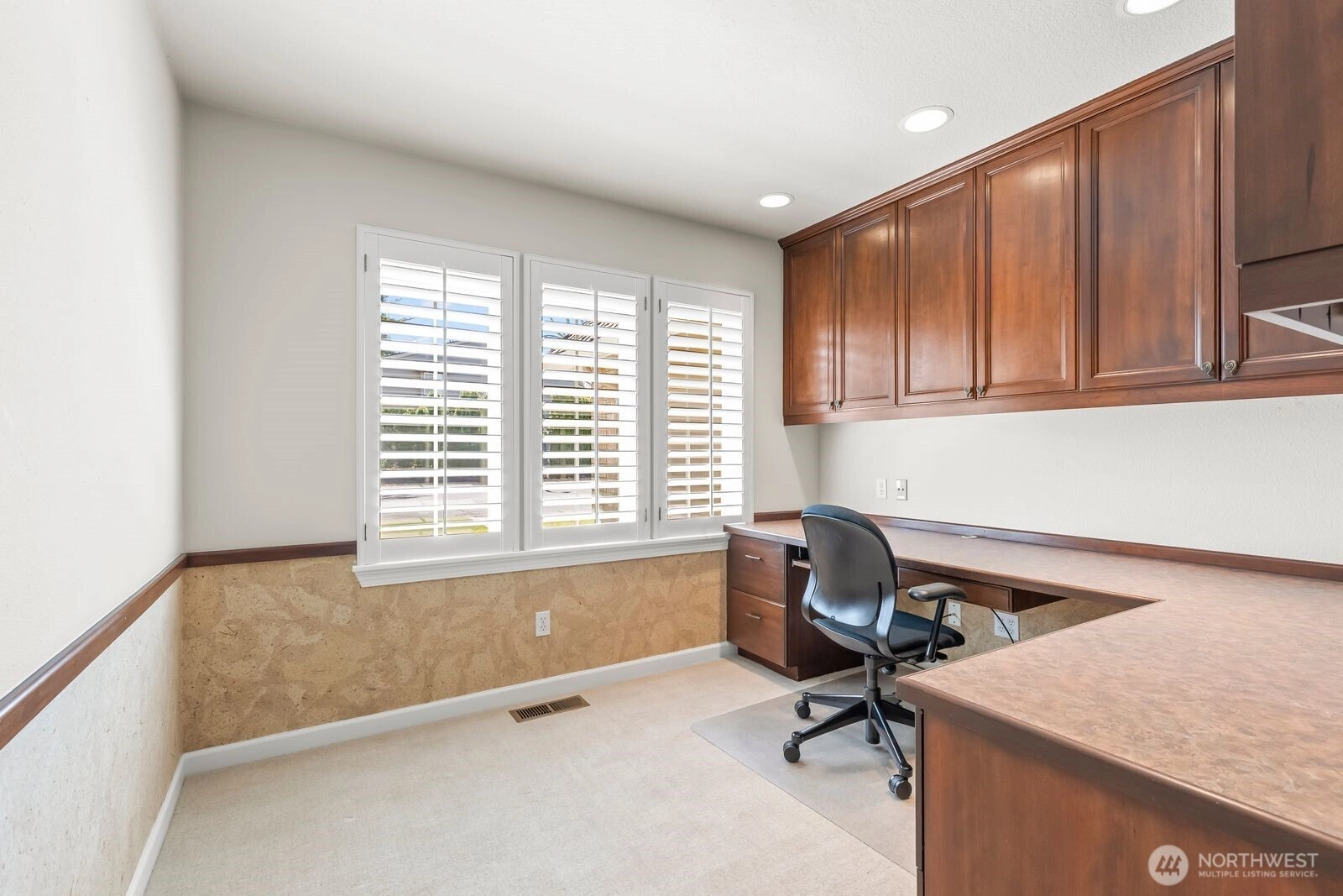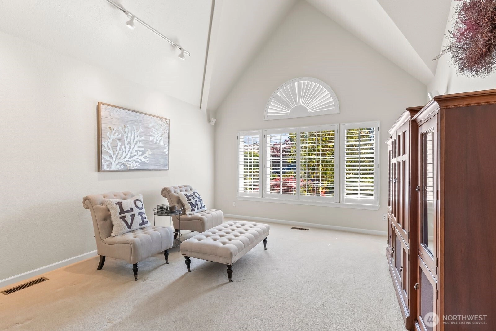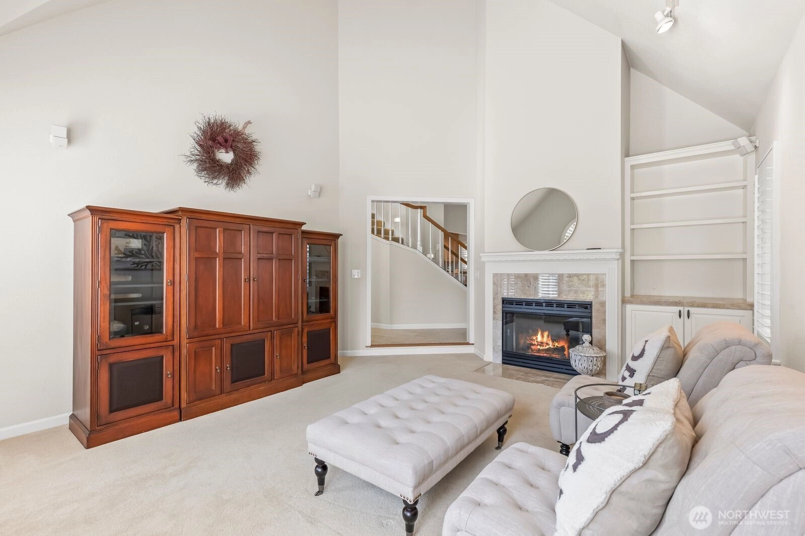 Nestled in a tranquil gated community, this stunning custom home offers a peaceful retreat. Soaring ceilings, a neutral palette, and natural light create an inviting ambiance. The open concept living area flows into a gourmet kitchen and formal dining room with views of Lake Aspen. The primary suite features a sitting area and luxurious ensuite. The main floor also includes a cozy living room with a gas fireplace and an office. Upstairs, additional bedrooms and a full bath provide guest comfort. Outside, serene patios and landscaped grounds invite relaxation. Enjoy a secure, lock-and-leave lifestyle surrounded by beauty, peace, and the perfect blend of comfort, elegance, and convenience.