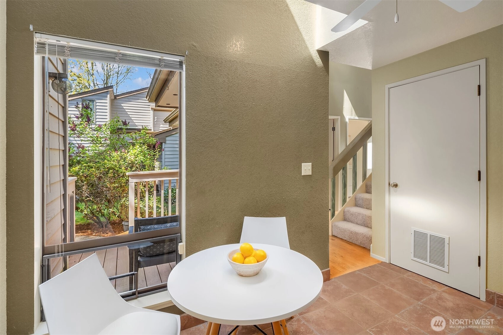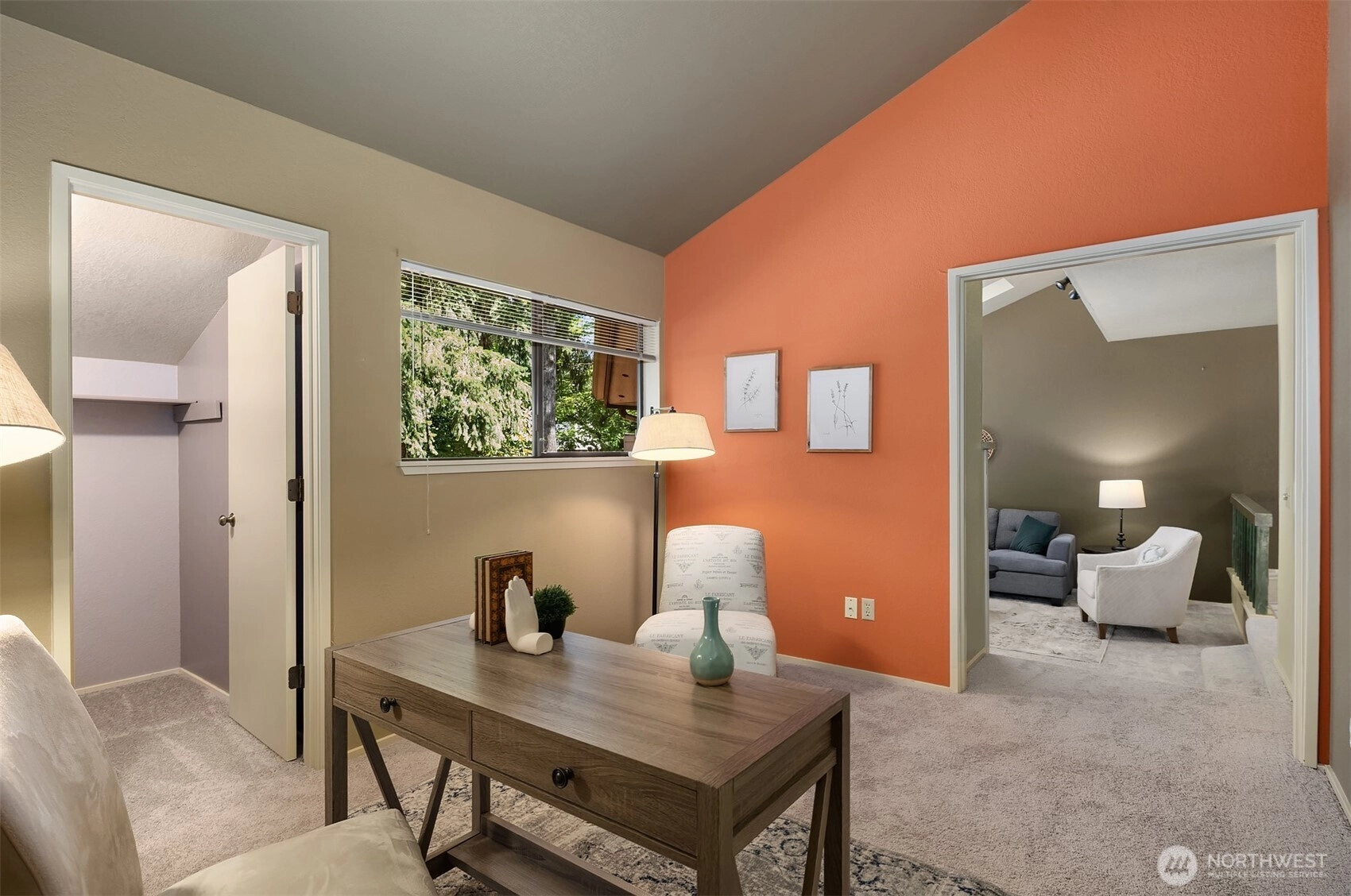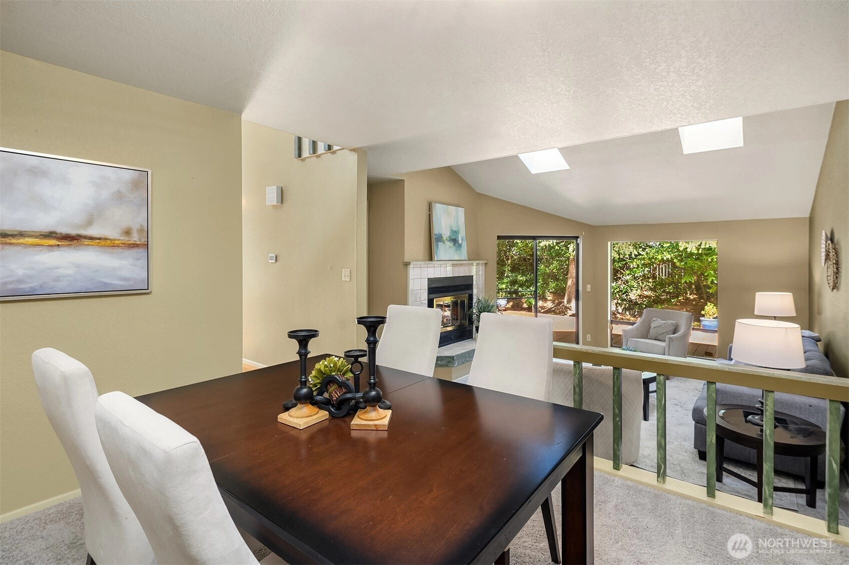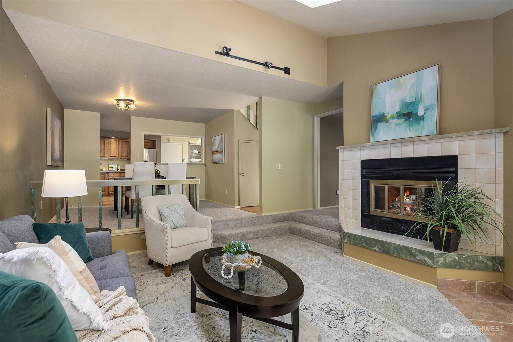 Ideal location and affordability in Bellevue. This 2-story townhome lives like a single-family home with an open floorplan. Kitchen & bathrooms updated in 2014 with engineered granite and stainless appliances in kitchen. Primary bedroom upstairs with 3/4 bath, large closets with organizers, and huge extra finished room for den/craft room/storage. Other features include new air conditioning & furnace in 2022, gas fireplace with hearth, full size laundry, and walk-in closet in main floor bedroom. New carpet and new hot water tank in 2025! Back yard with large composite deck is partially fenced - very private. 2 car garage with storage, plus driveway parking and ample guest parking. Close to shopping, restaurants and all amenities.