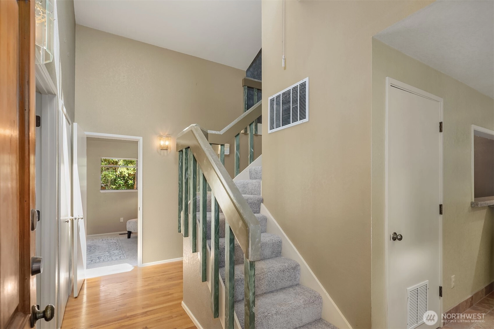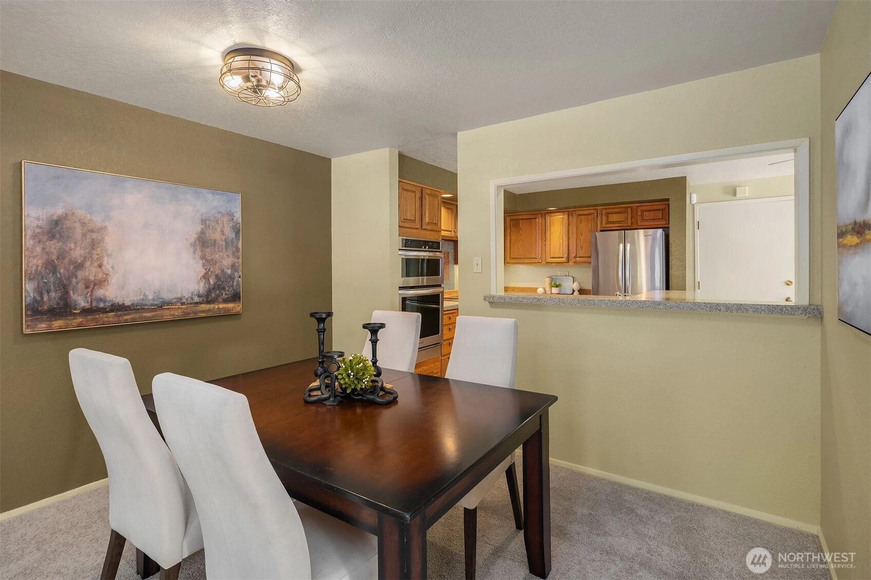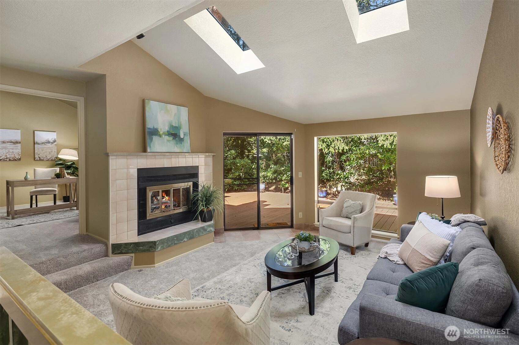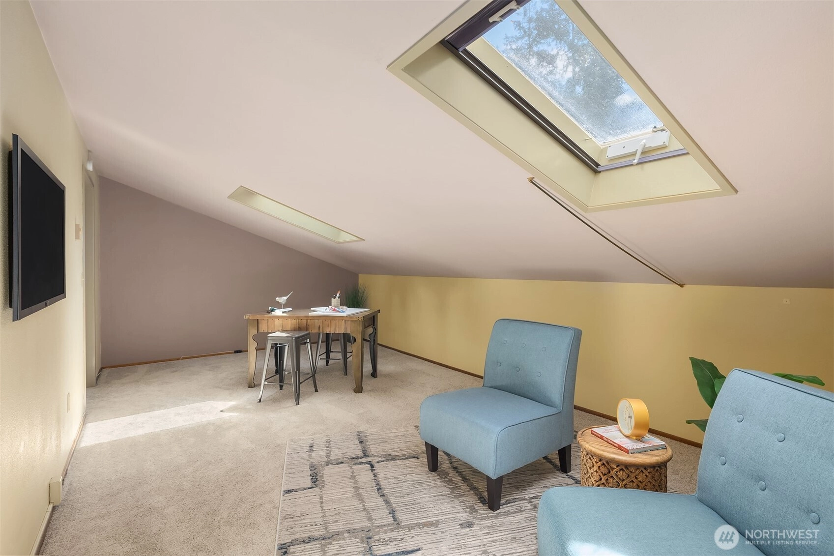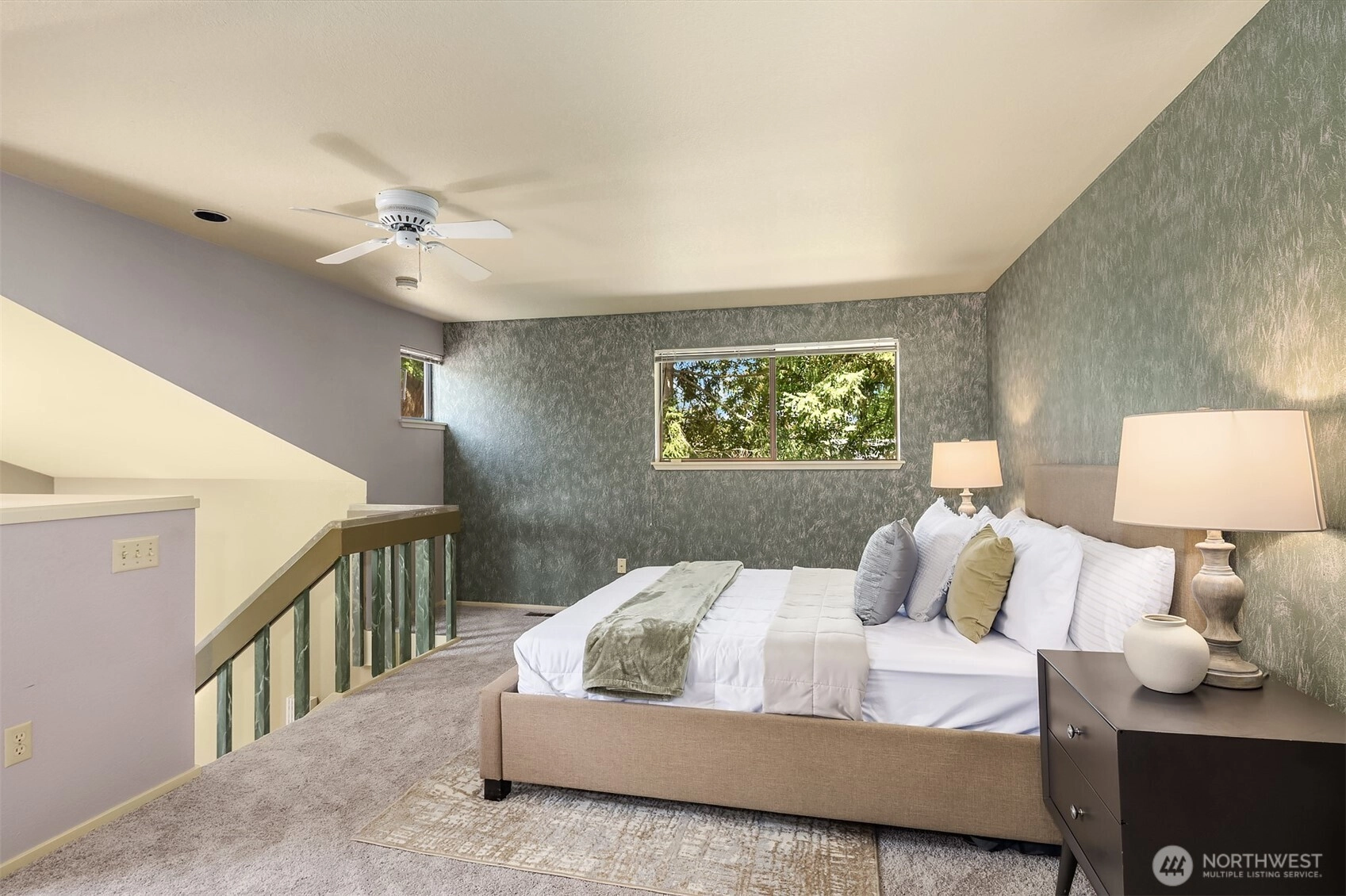 Ideal location and affordability in Bellevue. This 2-story townhome lives like a single-family home with an open floorplan. Kitchen & bathrooms updated in 2014 with engineered granite and stainless appliances in kitchen. Primary bedroom upstairs with 3/4 bath, large closets with organizers, and huge extra finished room for den/craft room/storage. Other features include new air conditioning & furnace in 2022, gas fireplace with hearth, full size laundry, and walk-in closet in main floor bedroom. New carpet and new hot water tank in 2025! Back yard with large composite deck is partially fenced - very private. 2 car garage with storage, plus driveway parking and ample guest parking. Close to shopping, restaurants and all amenities.