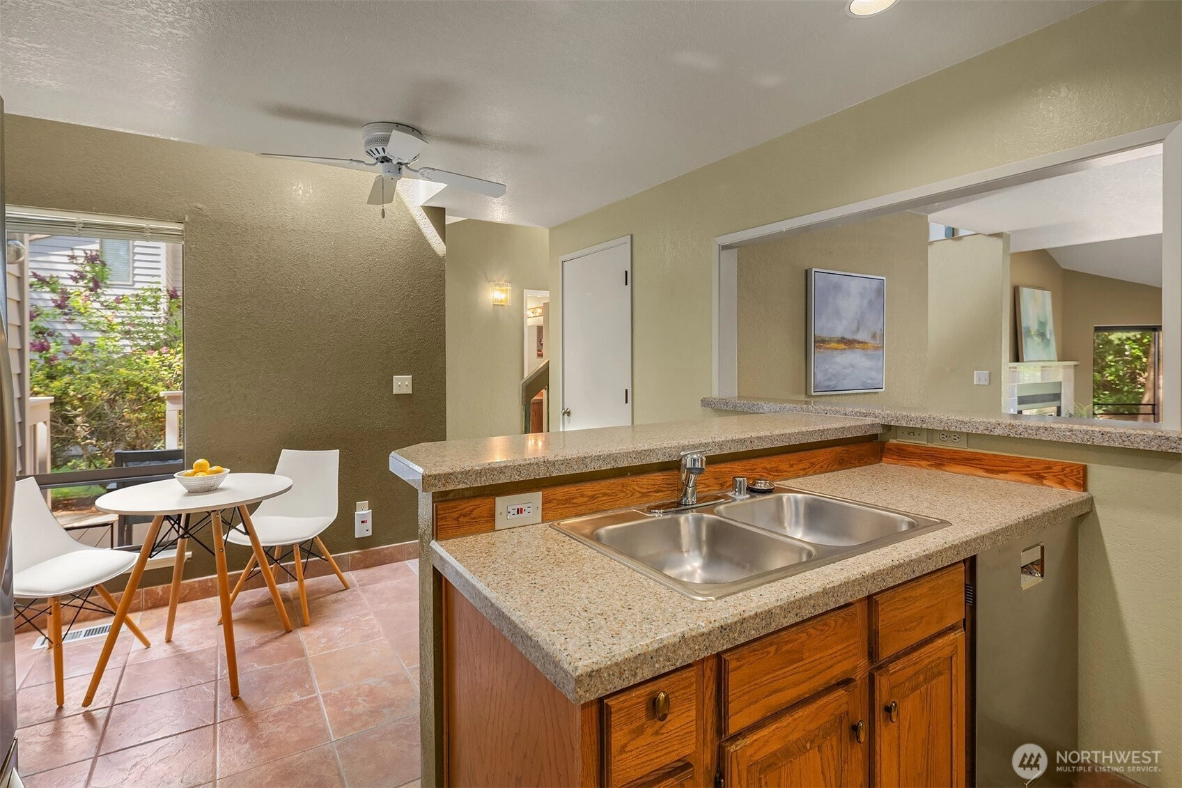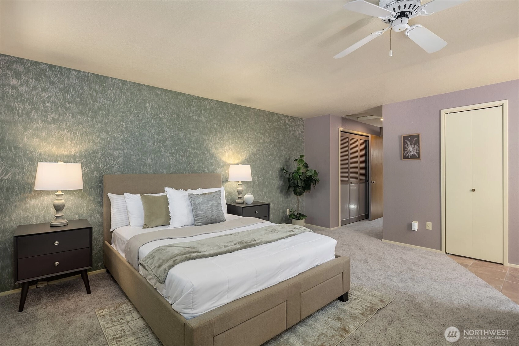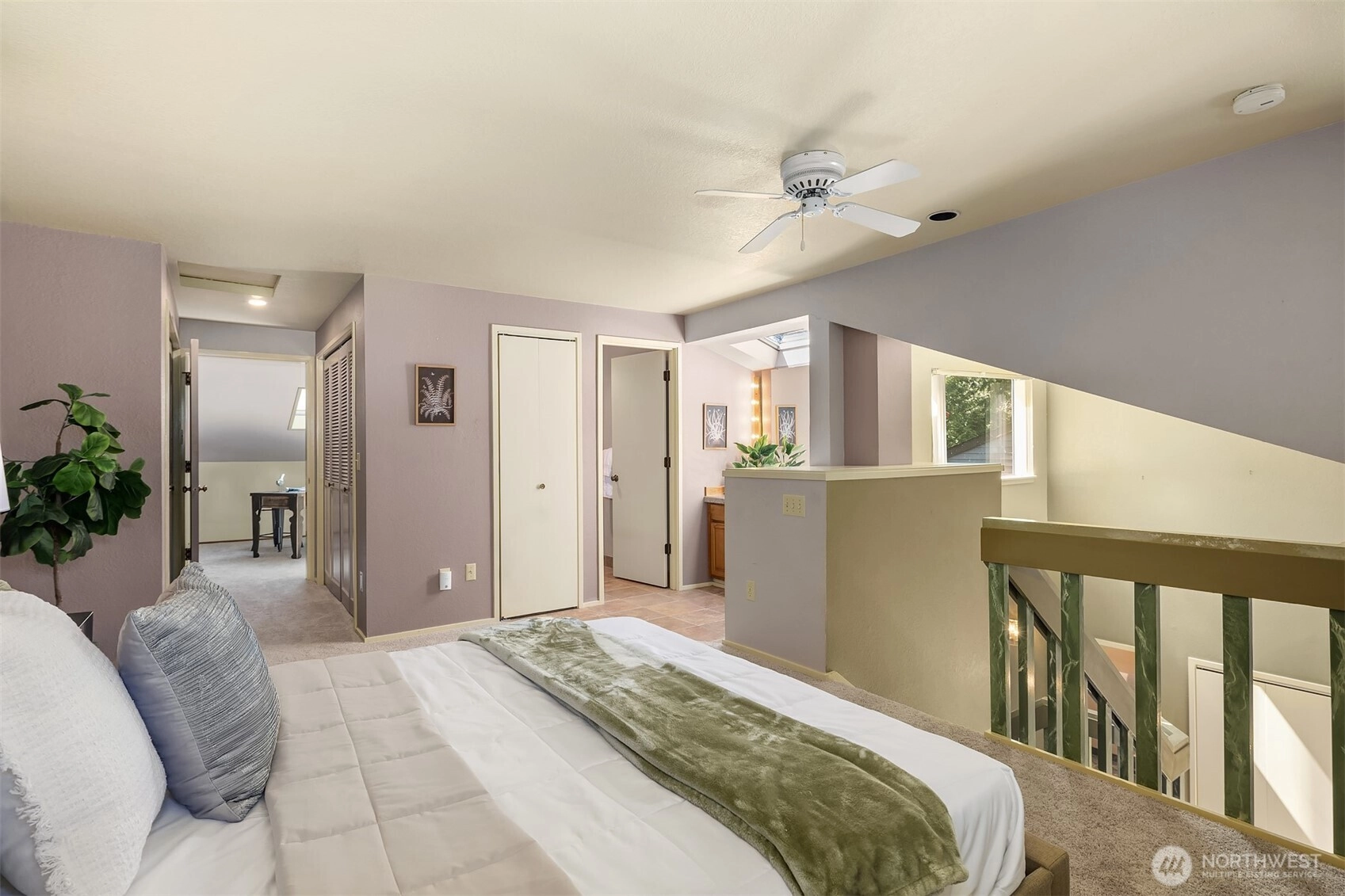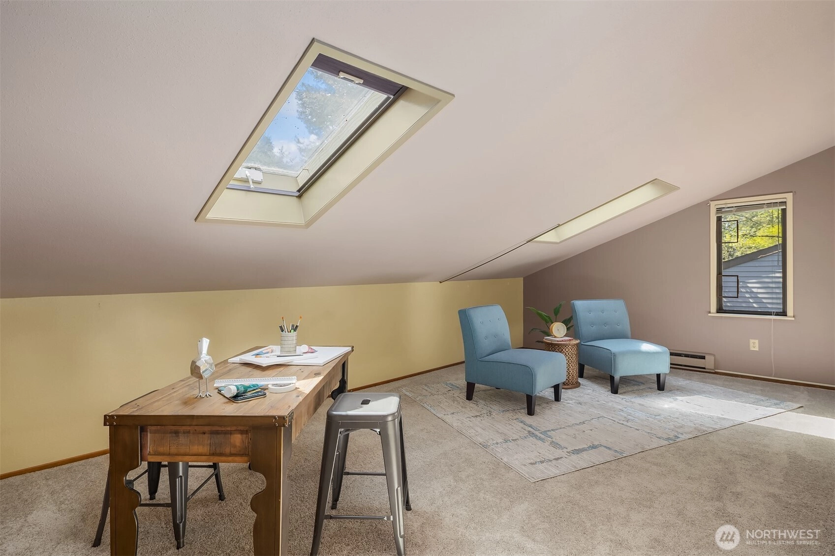 Ideal location and affordability in Bellevue. This 2-story townhome lives like a single-family home with an open floorplan. Kitchen & bathrooms updated in 2014 with engineered granite and stainless appliances in kitchen. Primary bedroom upstairs with 3/4 bath, large closets with organizers, and huge extra finished room for den/craft room/storage. Other features include new air conditioning & furnace in 2022, gas fireplace with hearth, full size laundry, and walk-in closet in main floor bedroom. New carpet and new hot water tank in 2025! Back yard with large composite deck is partially fenced - very private. 2 car garage with storage, plus driveway parking and ample guest parking. Close to shopping, restaurants and all amenities.
