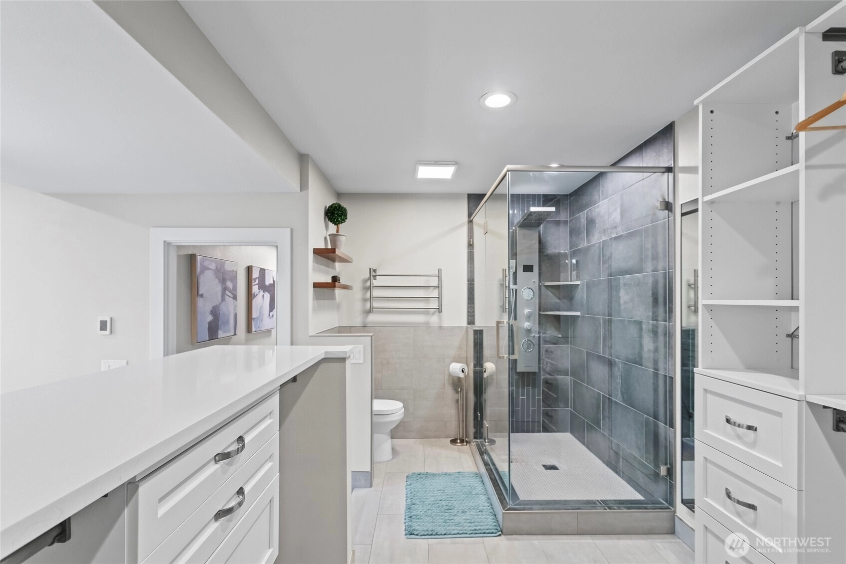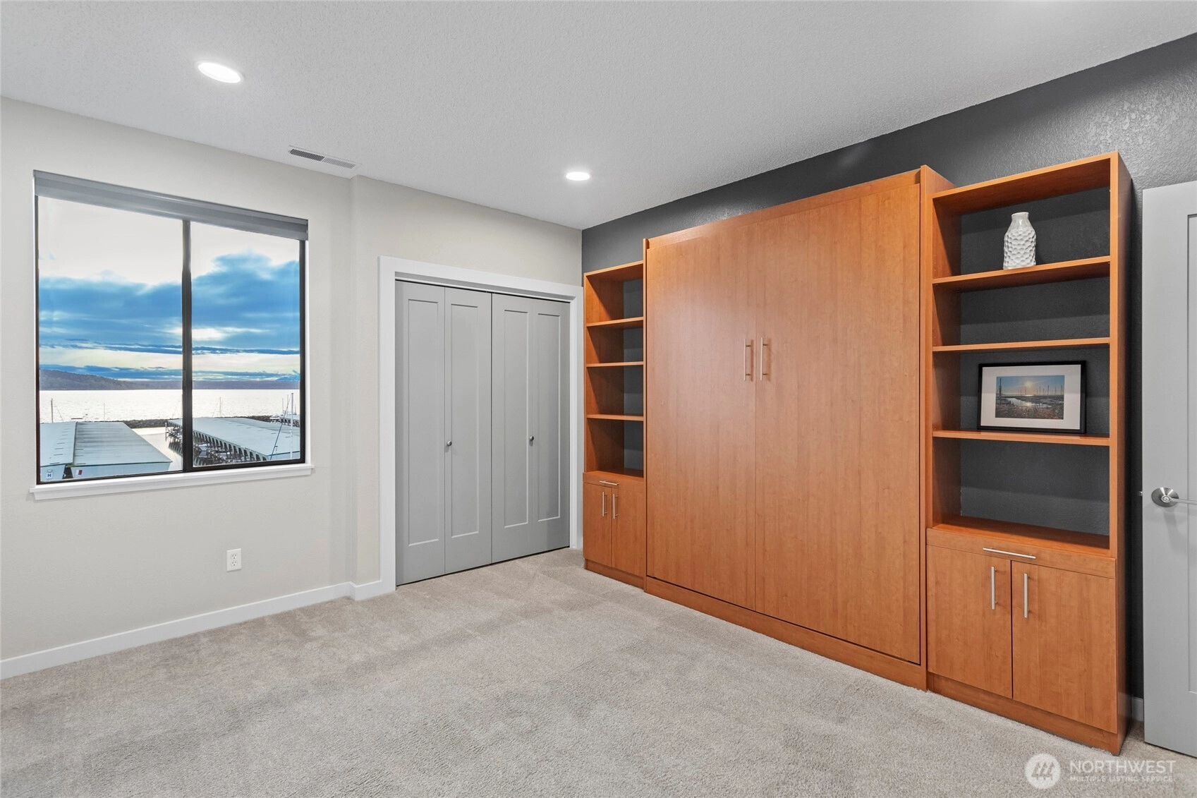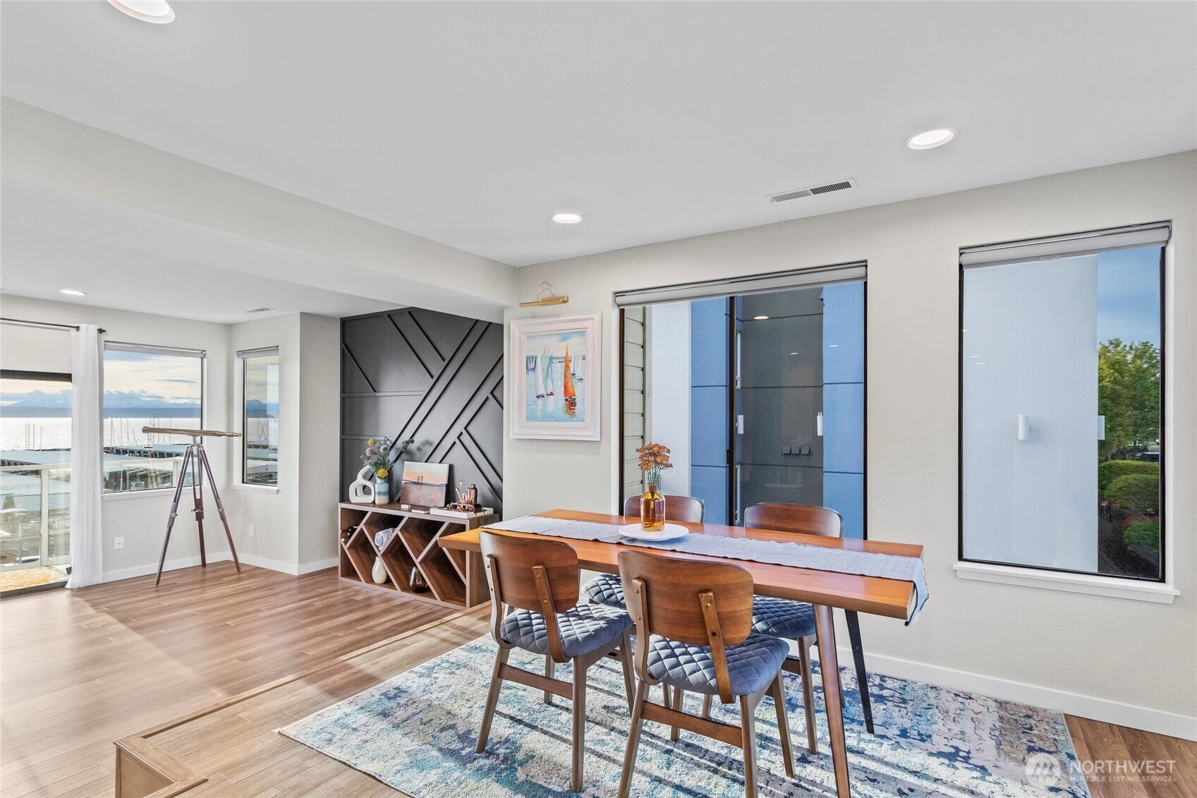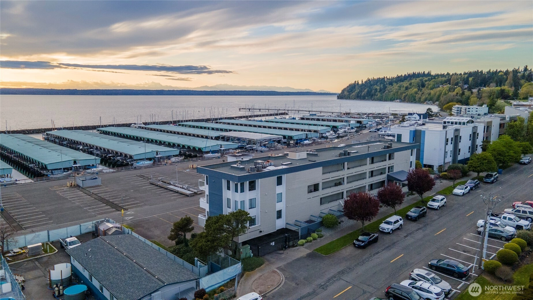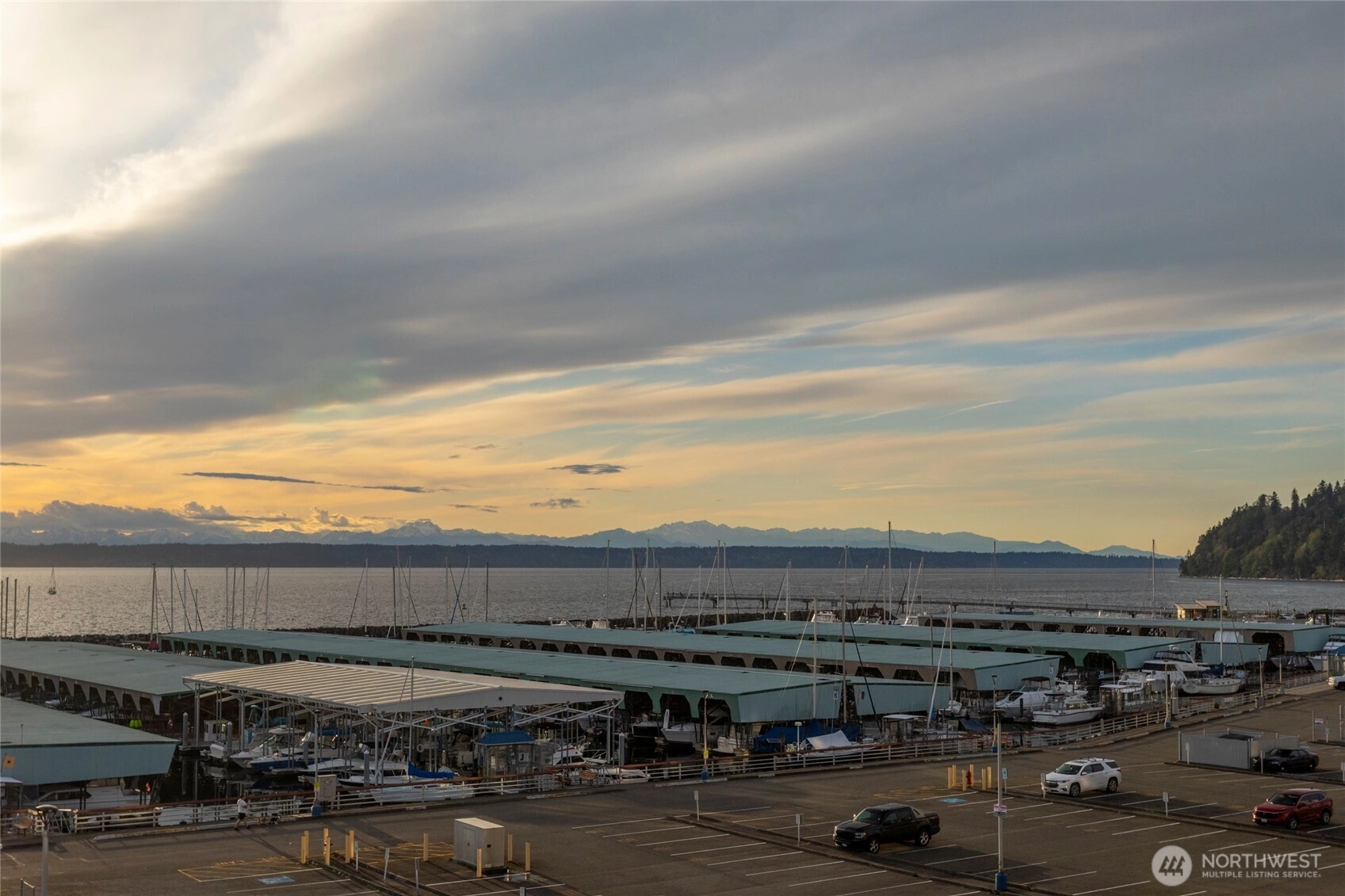 Stunning Penthouse end unit condo. Panoramic views of Des Moines Marina, Puget Sound and Cascade Mtns. Meticulously updated throughout with local interior designer. Quartz countertops w/undermount kitchen sink and stainless appliances. Tinted windows to cut down on UV and heat, central ac to keep you cool. No shared common walls! Primary bathroom features heated floors, walk in closet, lots of storage, double vanity with makeup area w/lighted mirror. Custom walk in shower w/full tile and glass. 2nd bedroom features a murphy bed with storage. Close walking distance to the beach, marina, or the downtown shops/restaurants. Take in the beautiful sunsets from this condo. HOA includes high speed internet, cable, water, sewer and garbage.