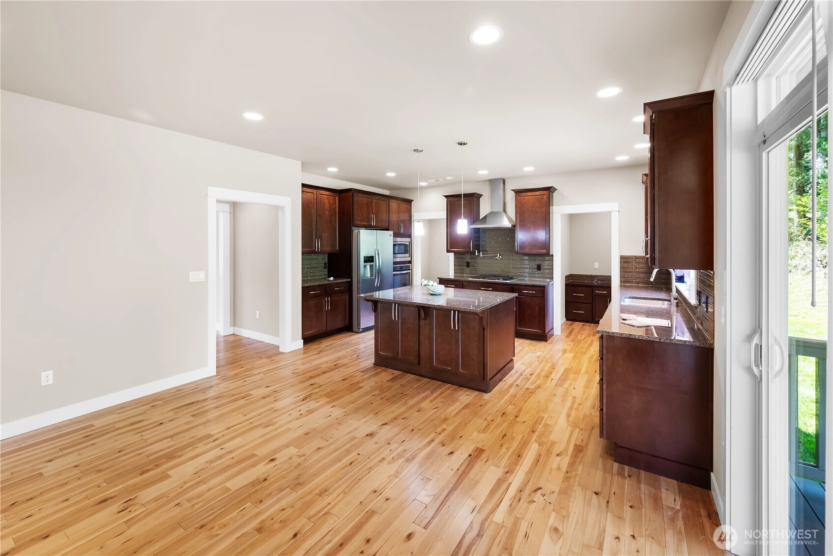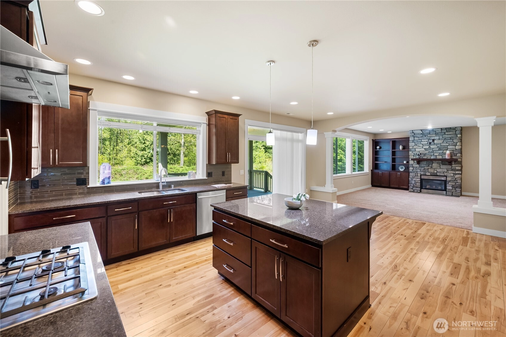 Experience refined living in this 4-bedroom + den home on a 1+ acre lot in the sought-after Eaglecrest community near Sunday Lake. With 2,828 sq ft of thoughtfully planned space, this home offers rich hardwood flooring, custom finishes, and an open-concept layout. The chef’s kitchen features slab granite counters, a butler’s pantry, walk-in pantry, and stainless appliances. The great room centers around a custom gas fireplace for cozy, elegant gatherings. Upstairs, the primary bedroom includes a 5-piece bath and large walk-in closet - plus, 3 additional bedrooms and a full bath. A covered patio invites year-round enjoyment, and the oversized 3-car garage provides ample space. Minutes from I-5, this home blends privacy with convenience.