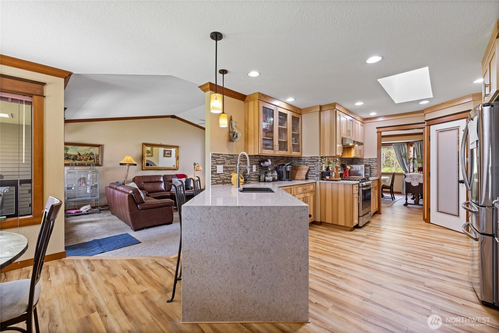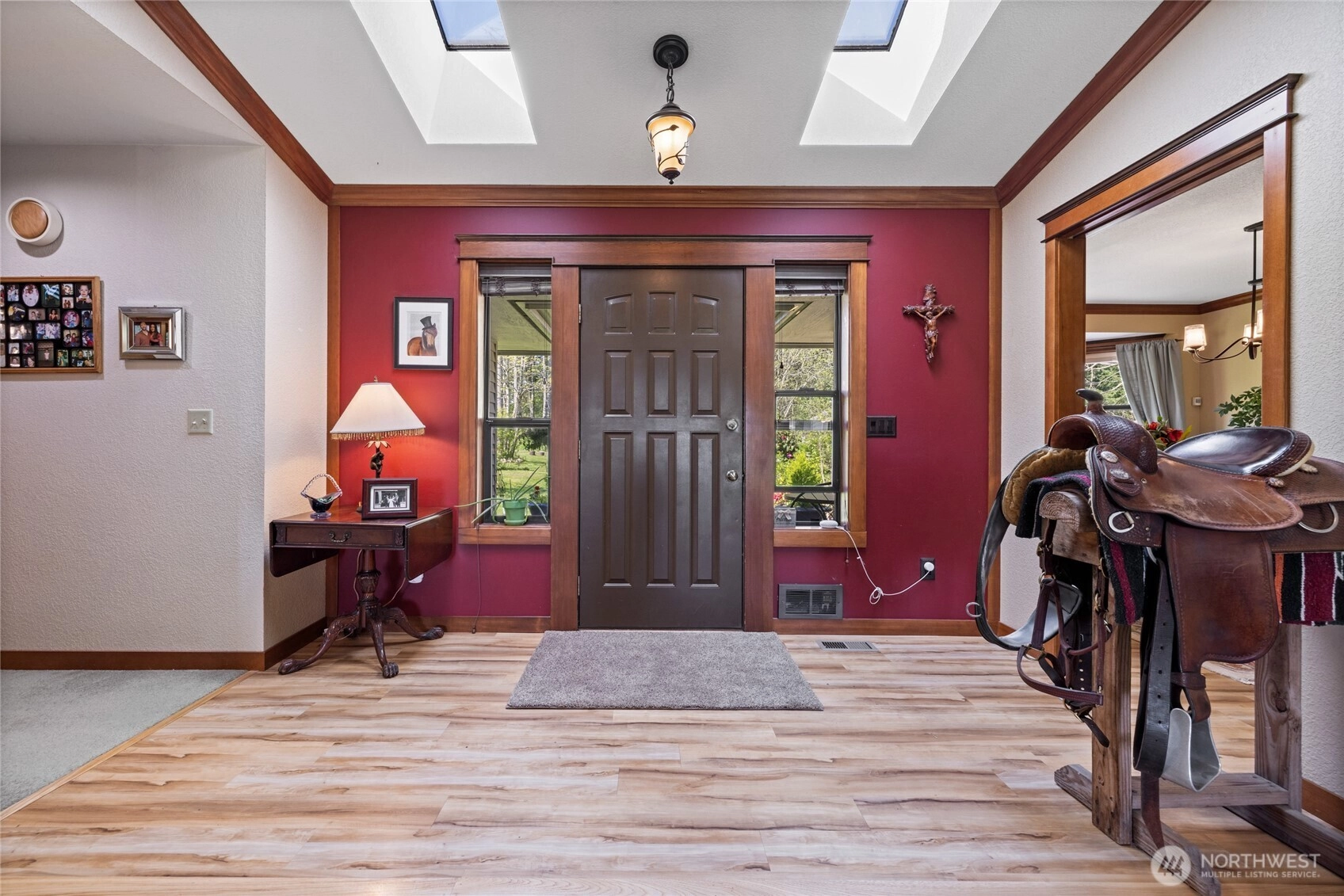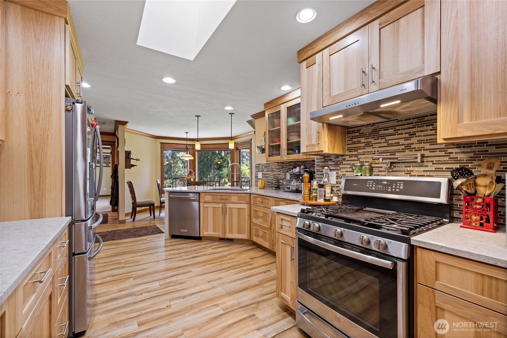 Captivating & stunning at every turn, this one Level Ranch in Olalla is 1 mile to Waterfront & Olalla Bay Market. Detached Hobby Room sports 3/4 bath, Minisplit, & large patio. Custom built one of a kind home, just 2 owners. Chef's Kitchen w/a 10' Walk In Pantry, Pot Filler, Hickory Cabinets with pull outs, & Gas Range. Woodstove in a brick igloo, amazing heat transfer for those chilly nights. Bay windows, multiple skylights & windows, custom handmade millwork. Massive Heat Pump & whole house Backup Generator. Heated Garage floors in 2 Car Gar for your sports cars, Det Shop/Garage w/heat also fully finished. Fenced, X fenced & gated. Sand Arena, hay storage, Tack Room & Hot/Cold Wash for your animals & cars. Bring your animals.