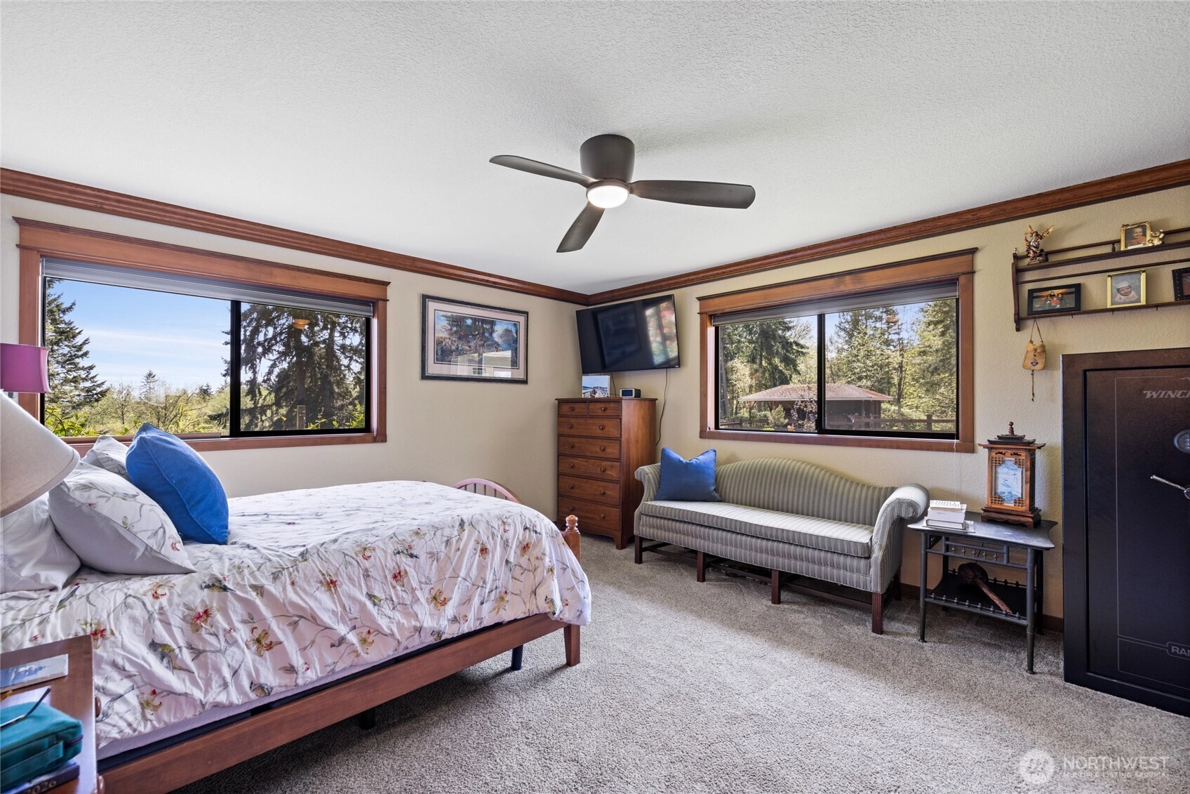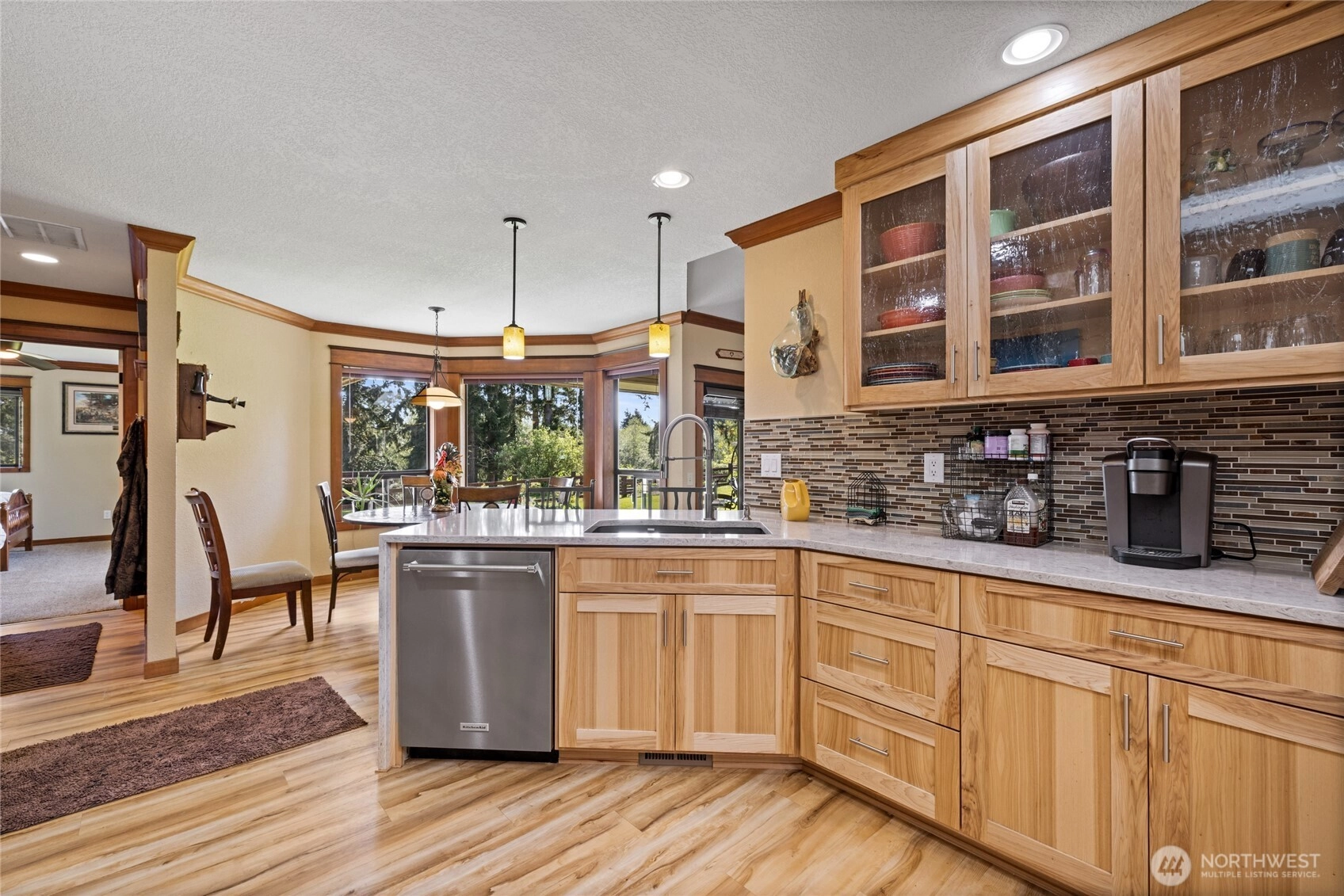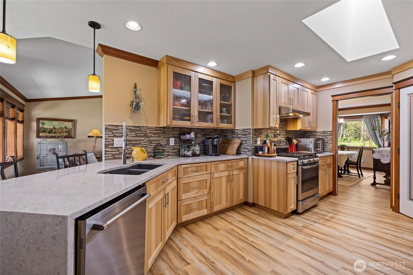 Captivating & stunning at every turn, this one Level Ranch in Olalla is 1 mile to Waterfront & Olalla Bay Market. Detached Hobby Room sports 3/4 bath, Minisplit, & large patio. Custom built one of a kind home, just 2 owners. Chef's Kitchen w/a 10' Walk In Pantry, Pot Filler, Hickory Cabinets with pull outs, & Gas Range. Woodstove in a brick igloo, amazing heat transfer for those chilly nights. Bay windows, multiple skylights & windows, custom handmade millwork. Massive Heat Pump & whole house Backup Generator. Heated Garage floors in 2 Car Gar for your sports cars, Det Shop/Garage w/heat also fully finished. Fenced, X fenced & gated. Sand Arena, hay storage, Tack Room & Hot/Cold Wash for your animals & cars. Bring your animals.