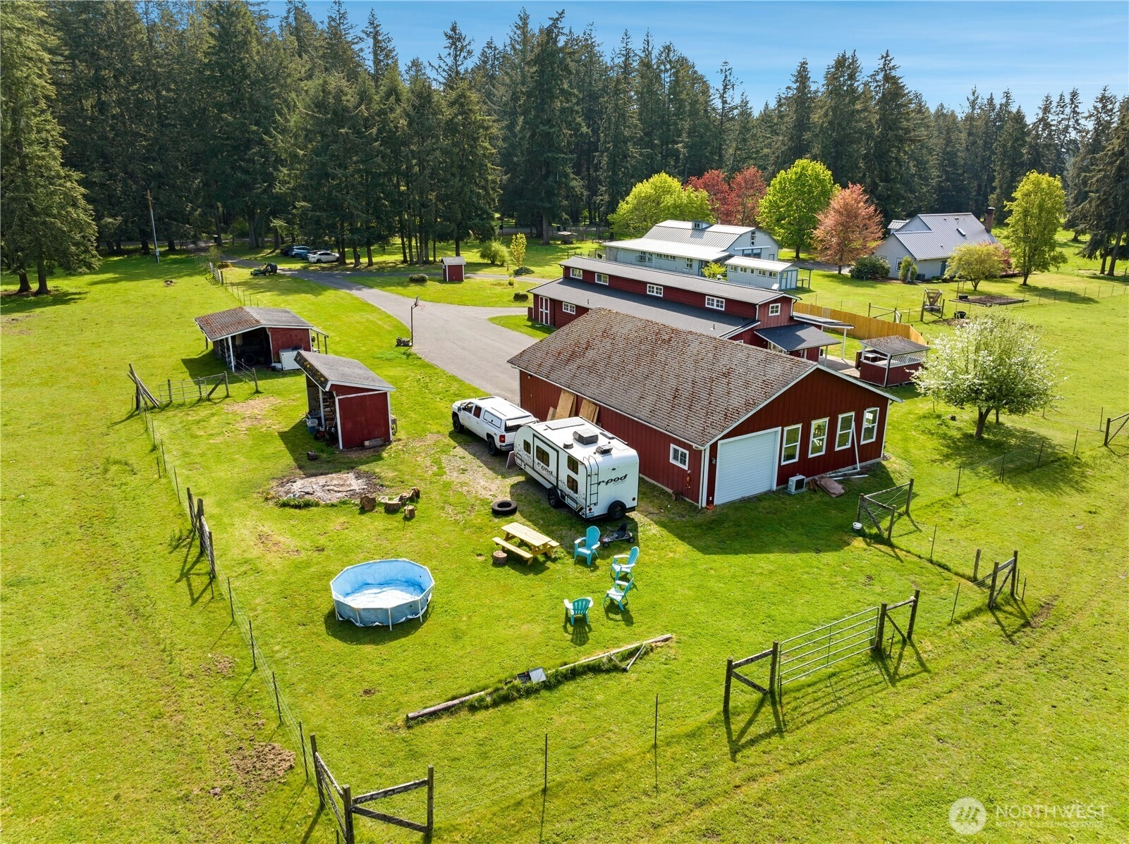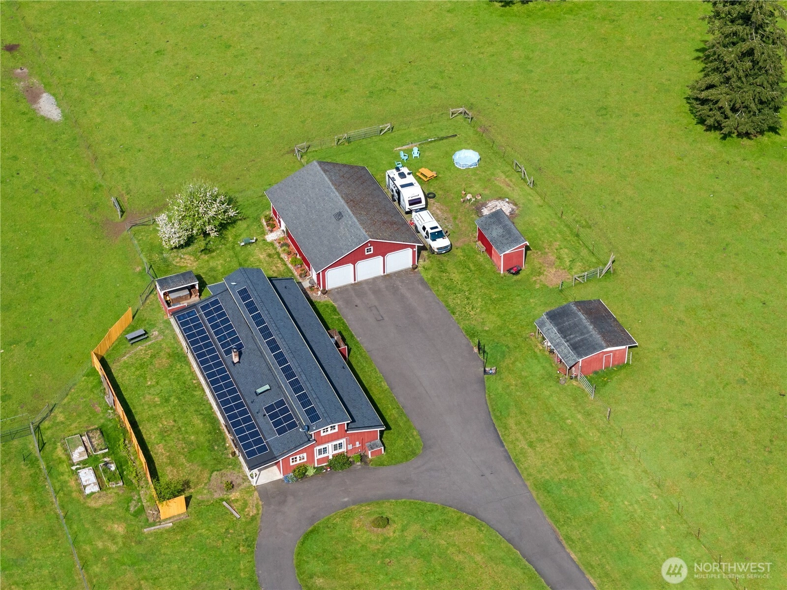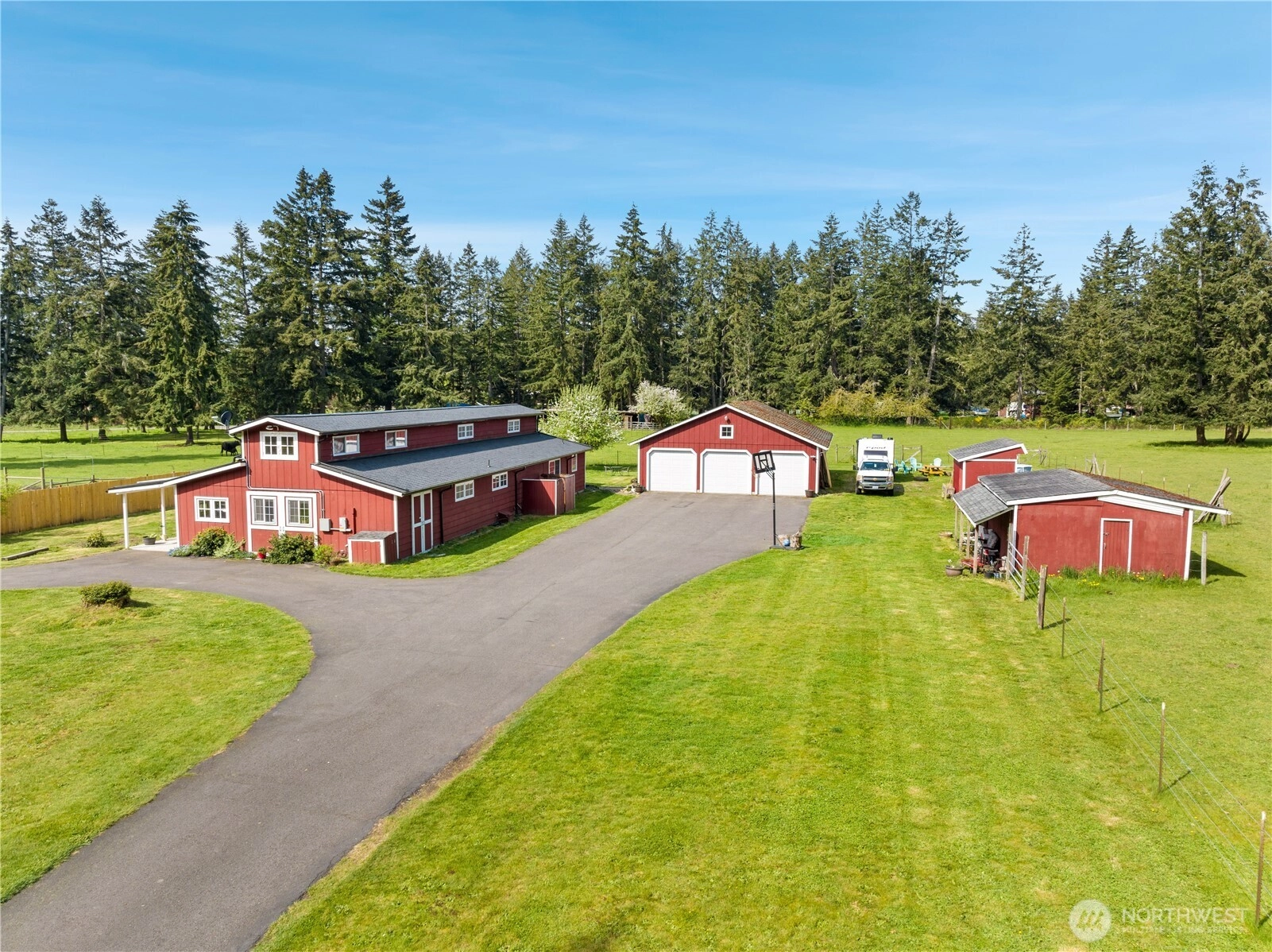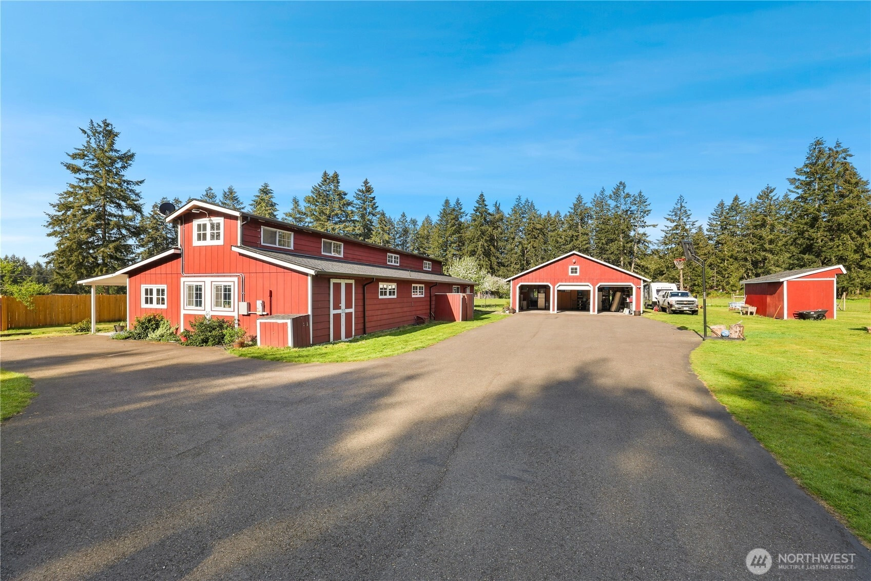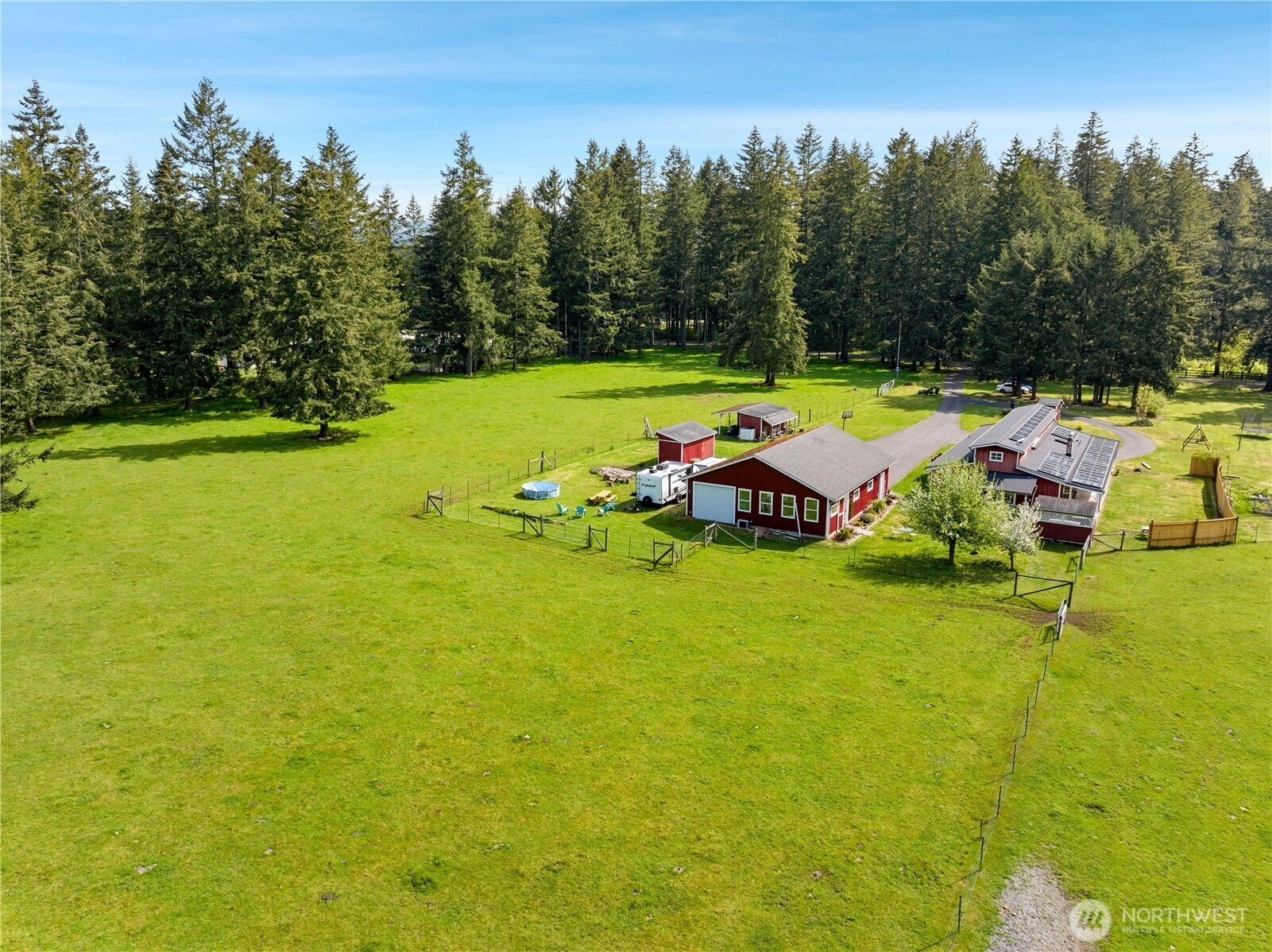Dreaming of a mini-farm? This unique barn-conversion home sits on a flat 5+ acres with fenced pasture ready for livestock, a huge 3-car garage with attached shop and partially finished space, outbuildings, and a second 3bd septic system ready for your ADU/FMU. The spacious home has 4 potential sleeping rooms on the main floor, plus another upstairs. Wood stove to keep you warm all winter, a minisplit to keep you cool in summer, and an impressive 42 panel solar array to lower your electric bill! New roof (2022), water heater, minisplit, and appliances. RV parking w/30amp outlet. Quiet and peaceful rural living, but just minutes to downtown Rainier and less than 15 min to Yelm and a easy commute to JBLM.