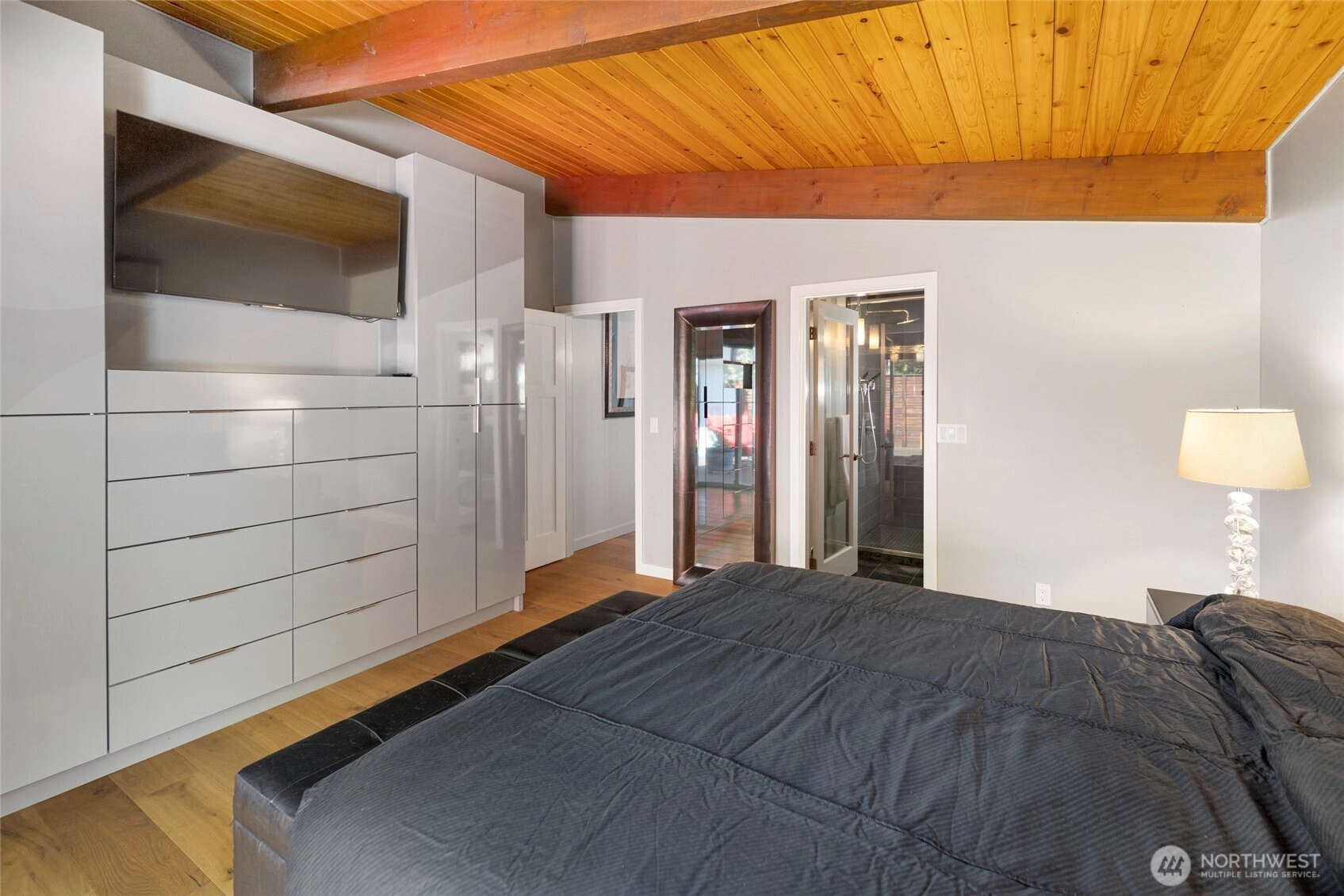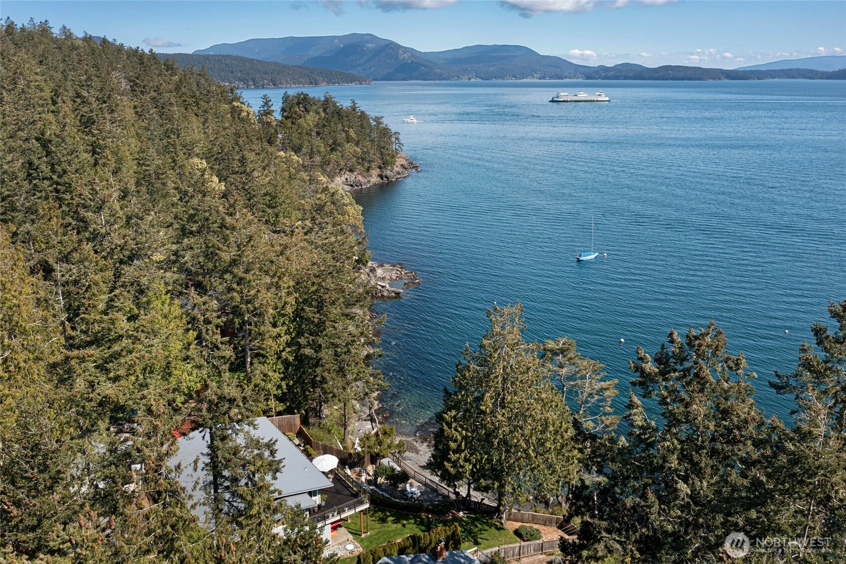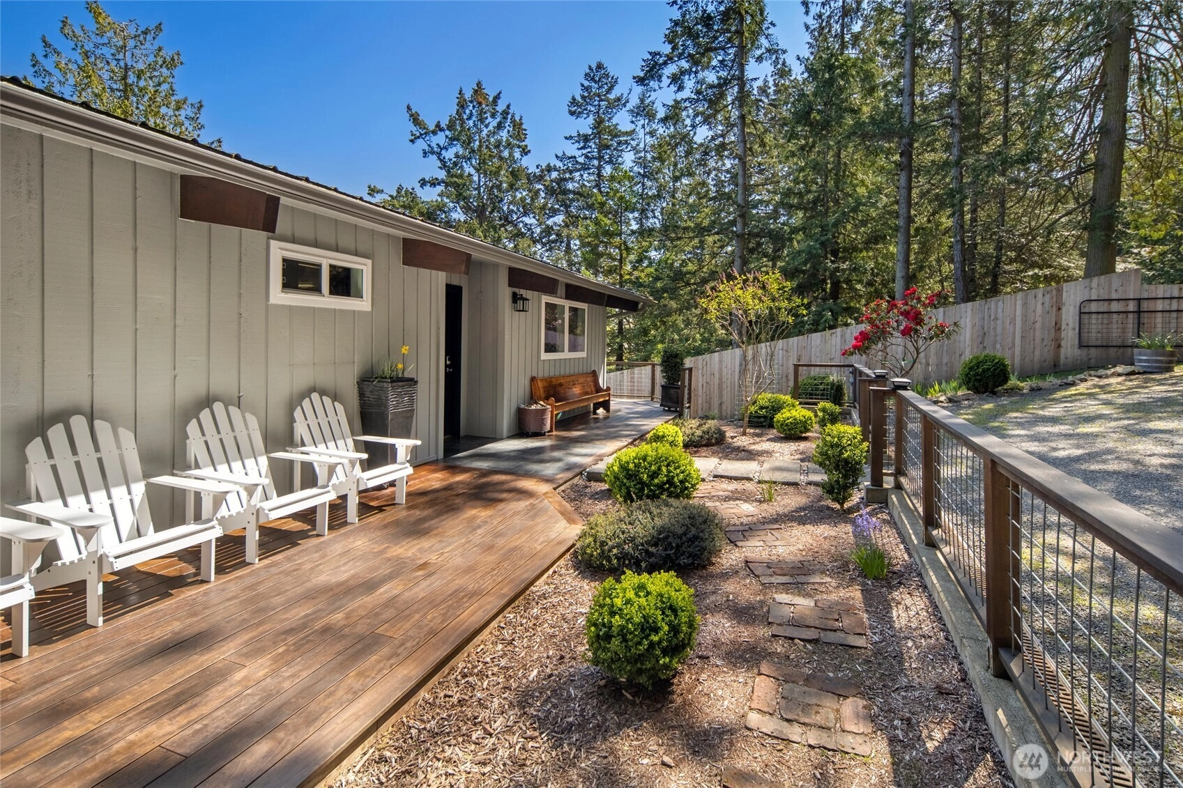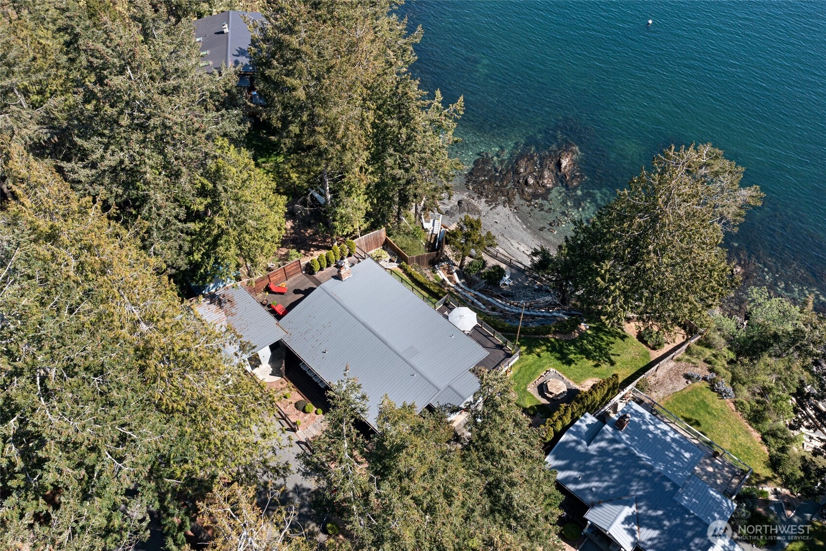 This striking 3 bedroom waterfront home features premium upgrades throughout, vaulted tongue & groove cedar ceilings, wide plank oak floors, marble countertops, high-end appliances. Primary en-suite bedroom on main level with sliders to a private deck. Two bedrooms and a spacious bonus room on the lower level. Revel in the captivating water views, ferry & boating activity right from your sizable IPE deck or light-filled living room. Property features towering evergreens, attractive landscaping, tall cedar fences, and a gated entry for privacy. Take the sturdy steps down to the beach for your enjoyment. The bulkhead has power, water, a boat lift, and room for seating. A timeless house with unforgettable views and close proximity to ferry!