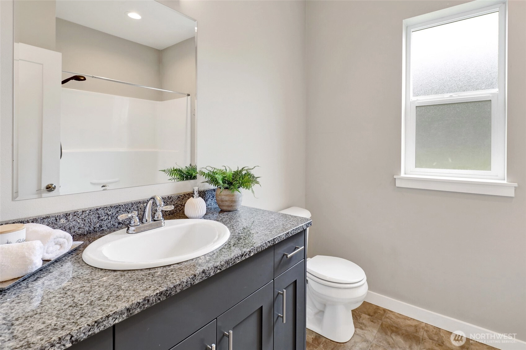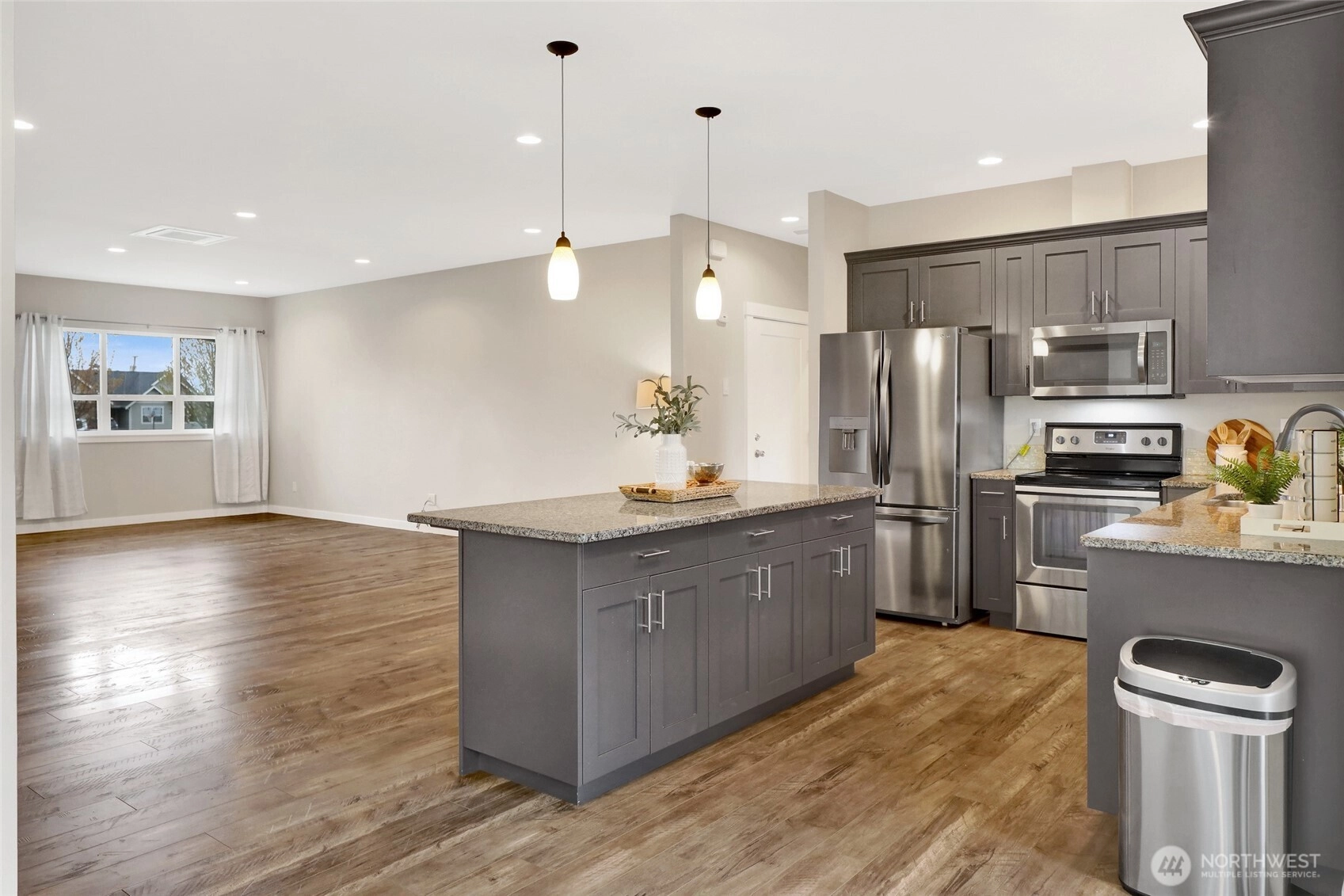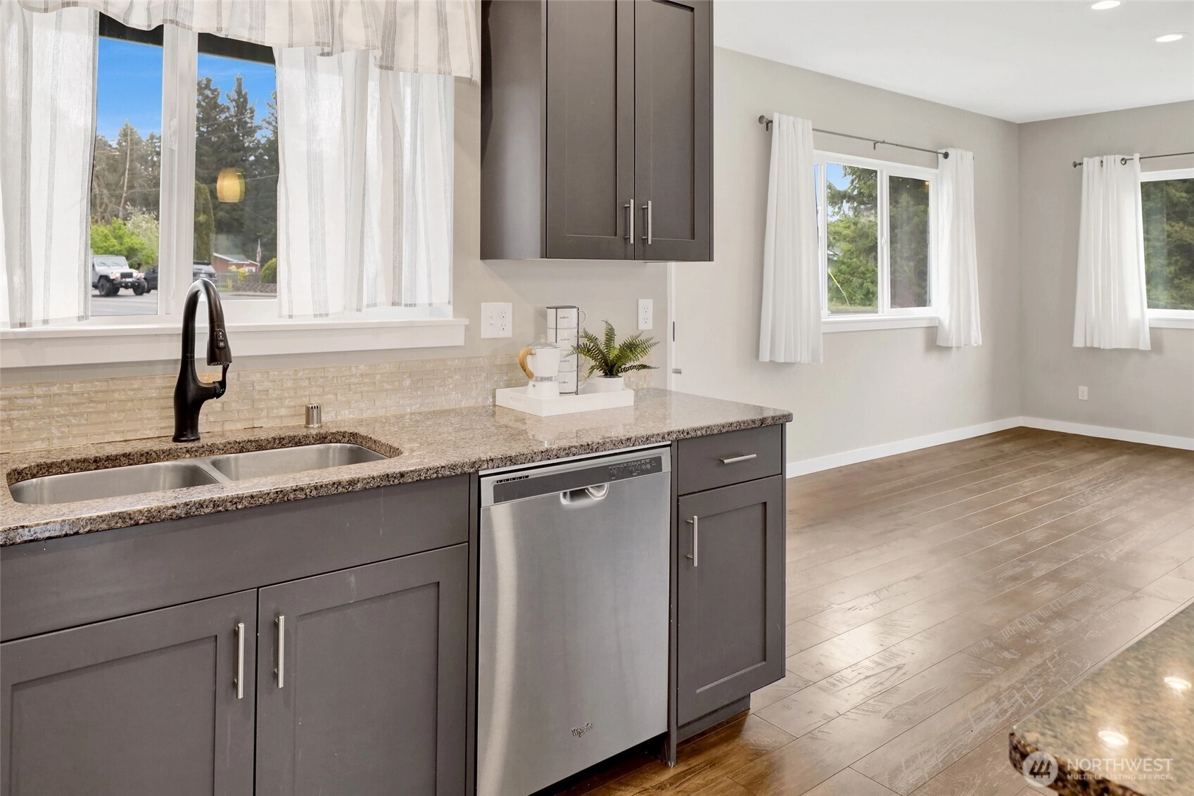 Welcome to your dream home in Everson. This rambler was built in 2017 with an inviting open floor plan that lives large with 1769sf, with 3 bedrooms and 2 full baths on .26 acre level lot and not in the flood plain. Enjoy the abundant natural light, with seller upgraded solar panels producing low power bills, home water filtration system, and you will beat the heat in air-conditioned comfort. Nicely appointed primary bedroom with ensuite soaking tub and walk-in closet. The kitchen is nicely appointed with an island and granite countertops, stainless steel appliances, and kitchen dining area. The kitchen door leads out to patio for barbecuing and enjoying the spacious backyard while relaxing around the firepit and enjoying Mt Baker views.