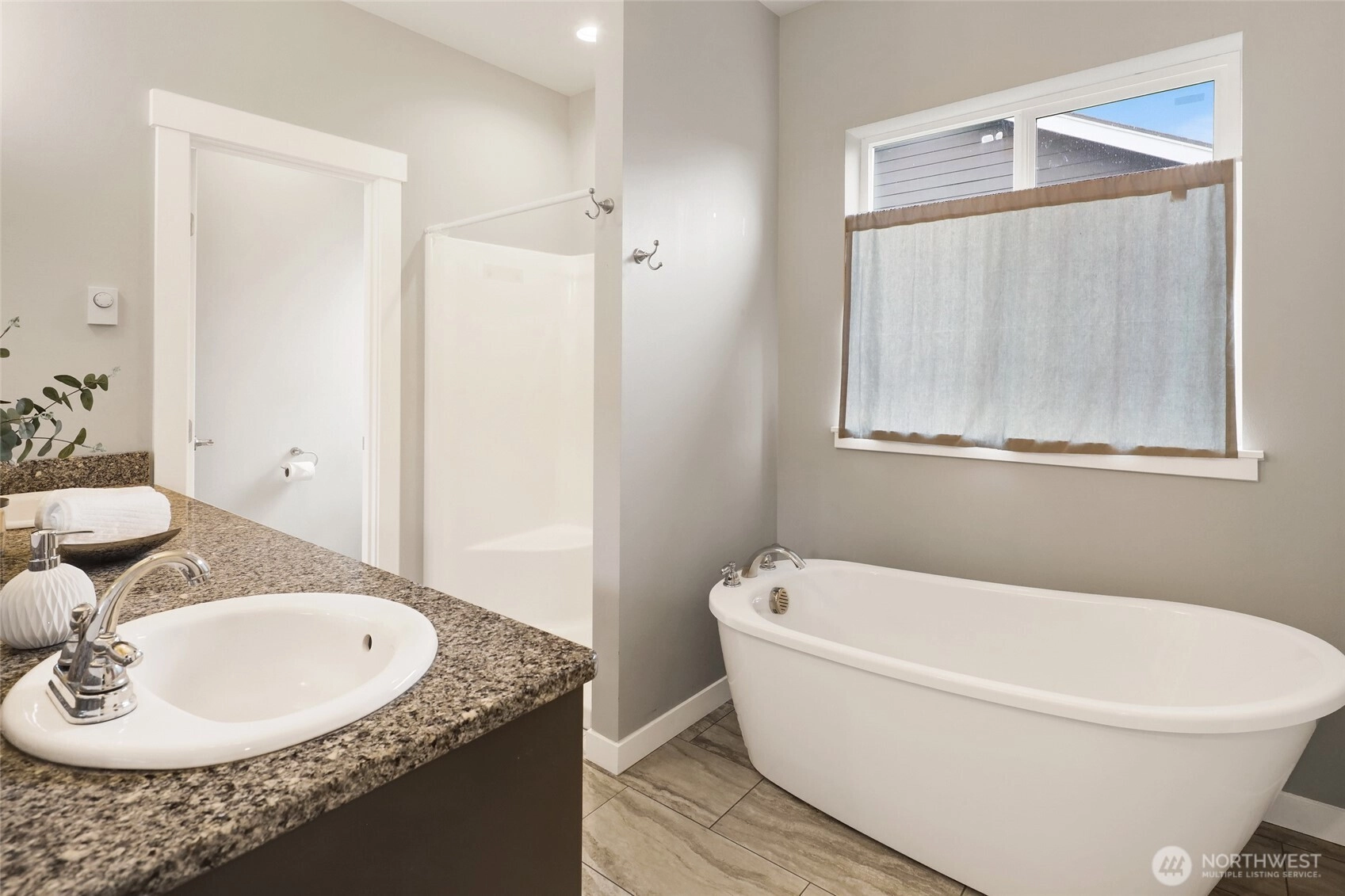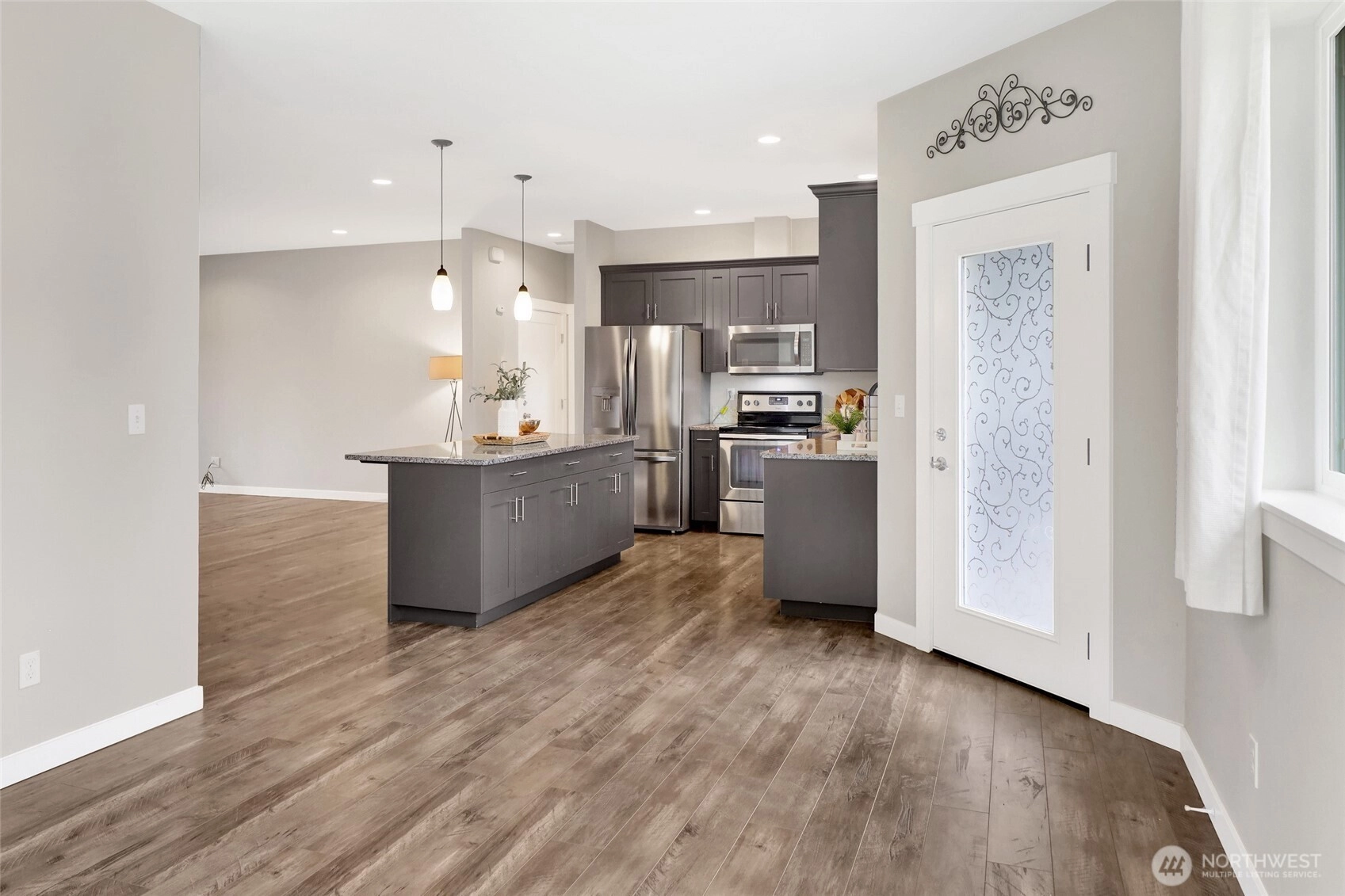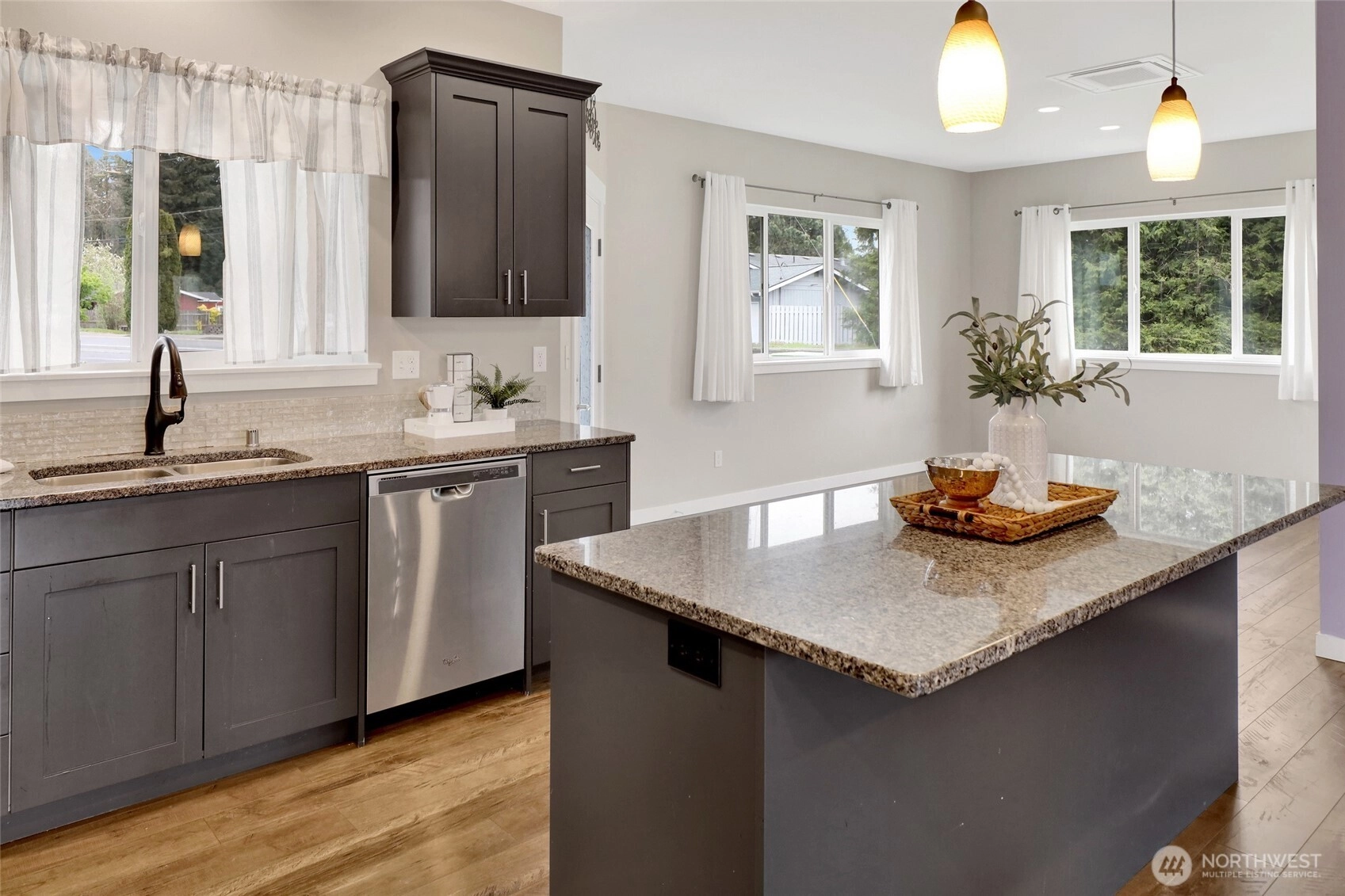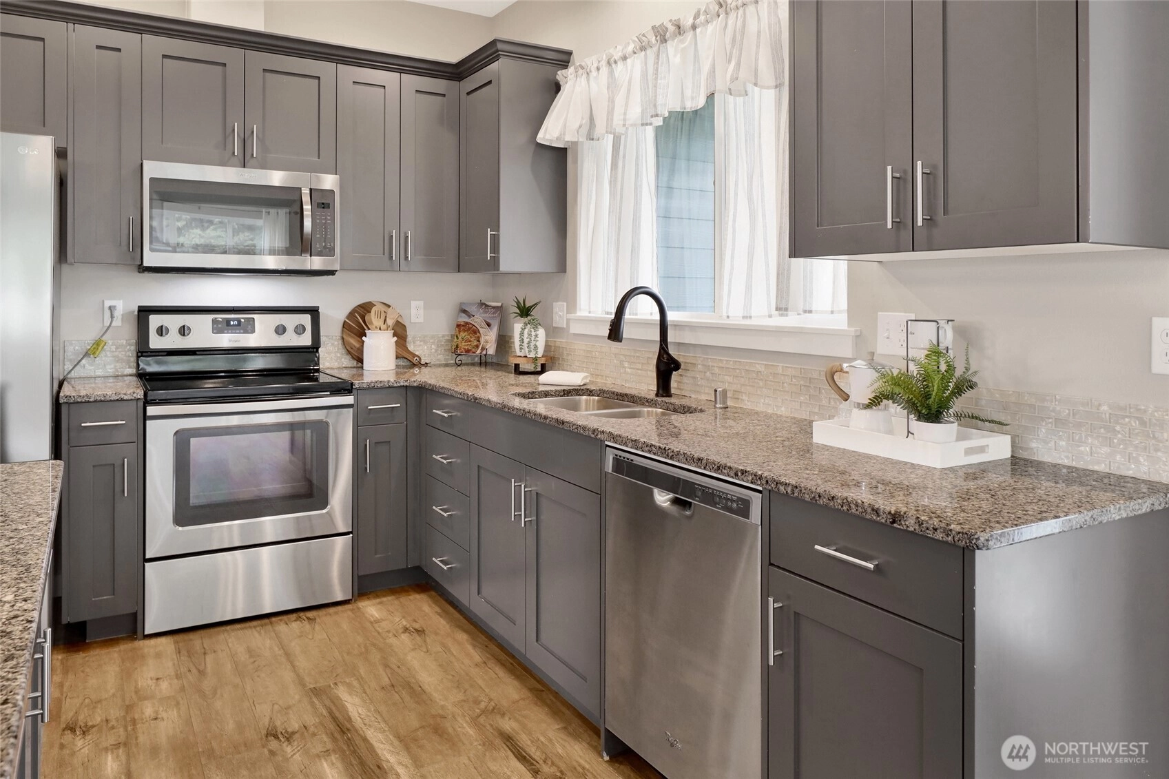 Welcome to your dream home in Everson. This rambler was built in 2017 with an inviting open floor plan that lives large with 1769sf, with 3 bedrooms and 2 full baths on .26 acre level lot and not in the flood plain. Enjoy the abundant natural light, with seller upgraded solar panels producing low power bills, home water filtration system, and you will beat the heat in air-conditioned comfort. Nicely appointed primary bedroom with ensuite soaking tub and walk-in closet. The kitchen is nicely appointed with an island and granite countertops, stainless steel appliances, and kitchen dining area. The kitchen door leads out to patio for barbecuing and enjoying the spacious backyard while relaxing around the firepit and enjoying Mt Baker views.