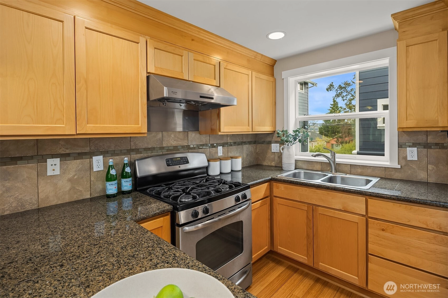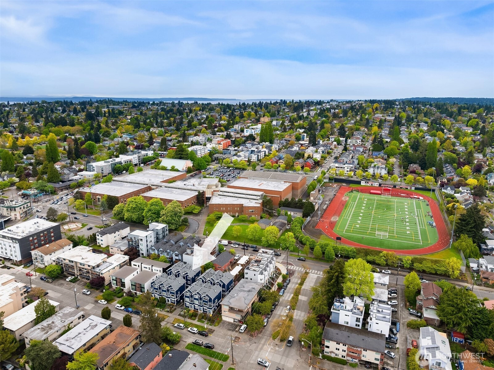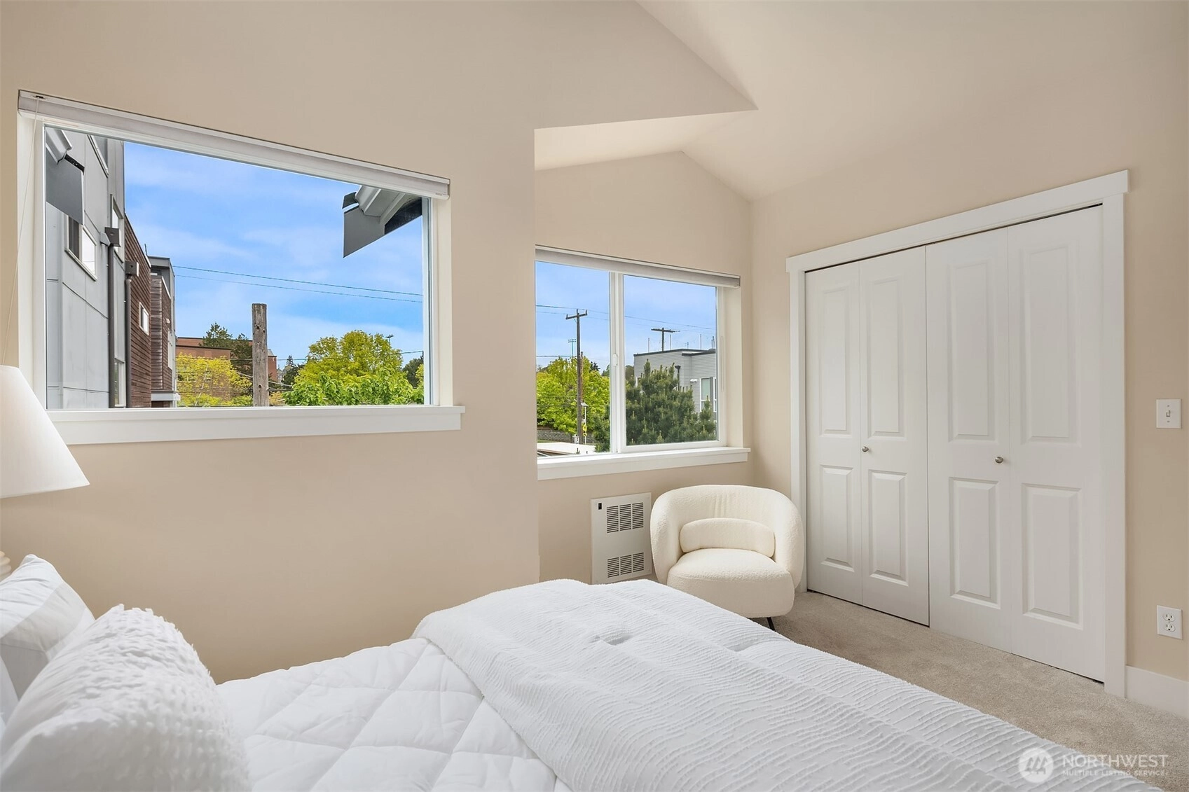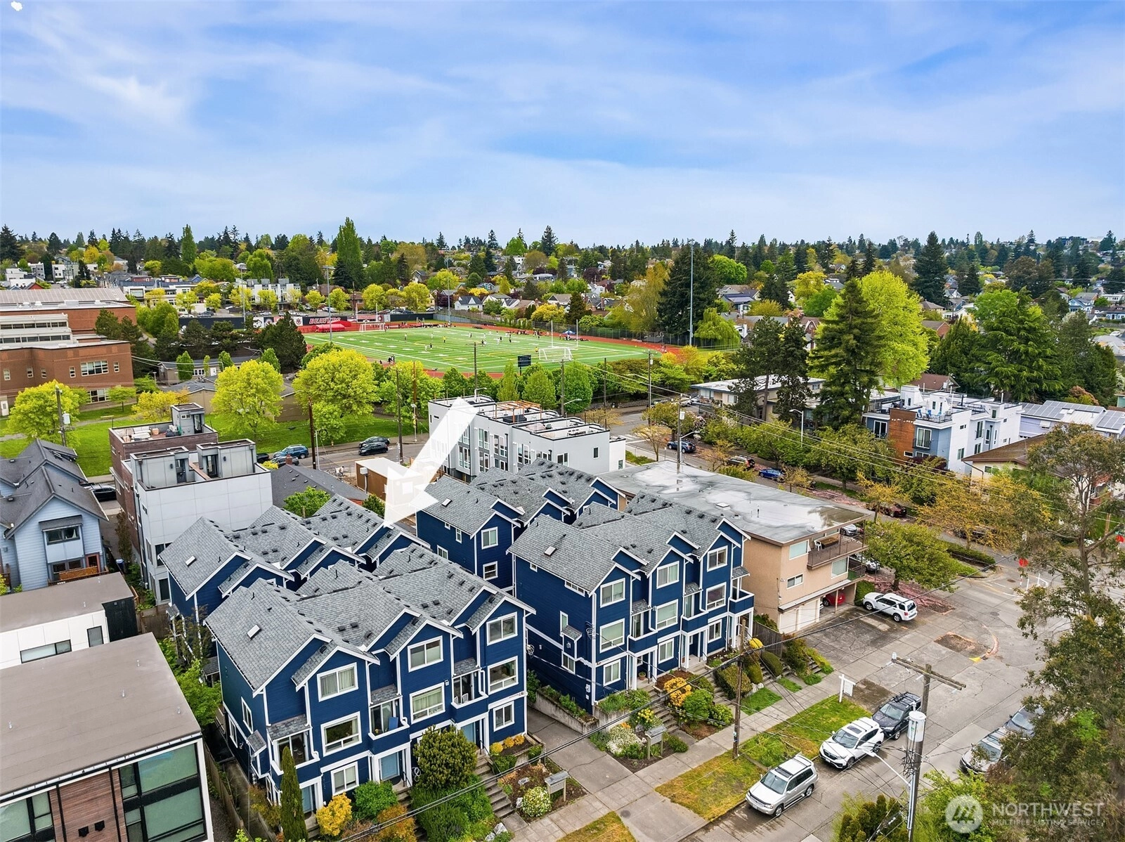 Beautifully crafted end-unit townhome tucked away in a serene setting in the heart of Ballard. Sunlit open-concept main floor showcases living room w/cozy gas fireplace & balcony, flowing to dining area & chef’s kitchen w/breakfast bar, granite countertops & gas range. Upstairs offers 2 bedrooms w/vaulted ceilings, skylight & well-appointed full bath w/dual vanities. Entry level features spacious guest bedroom w/ full bath & laundry room. Enjoy fully fenced private backyard & oversized 1-car attached garage w/ample storage. Recent updates include new carpet, fresh exterior & interior wall paint & new composite deck. Short stroll to SLU & DT Seattle. Steps away from parks, grocery stores, gyms, restaurants & everything Ballard has to offer.