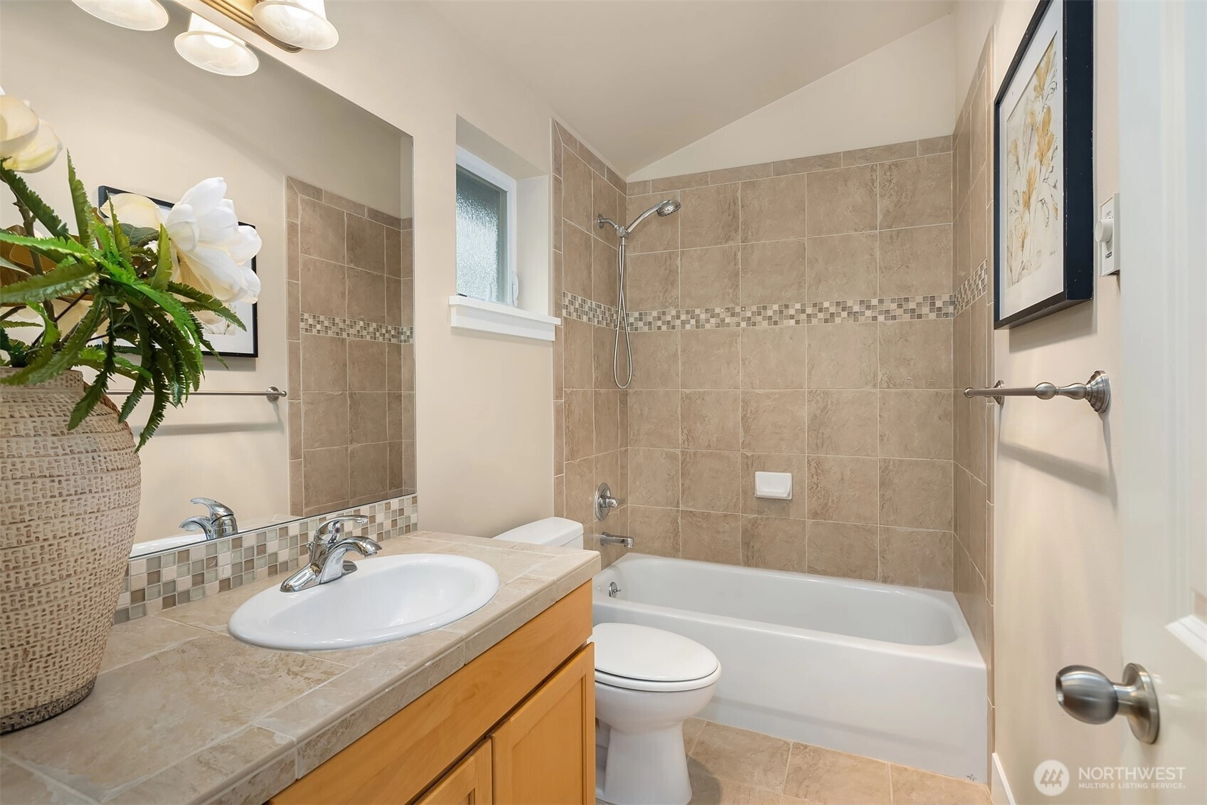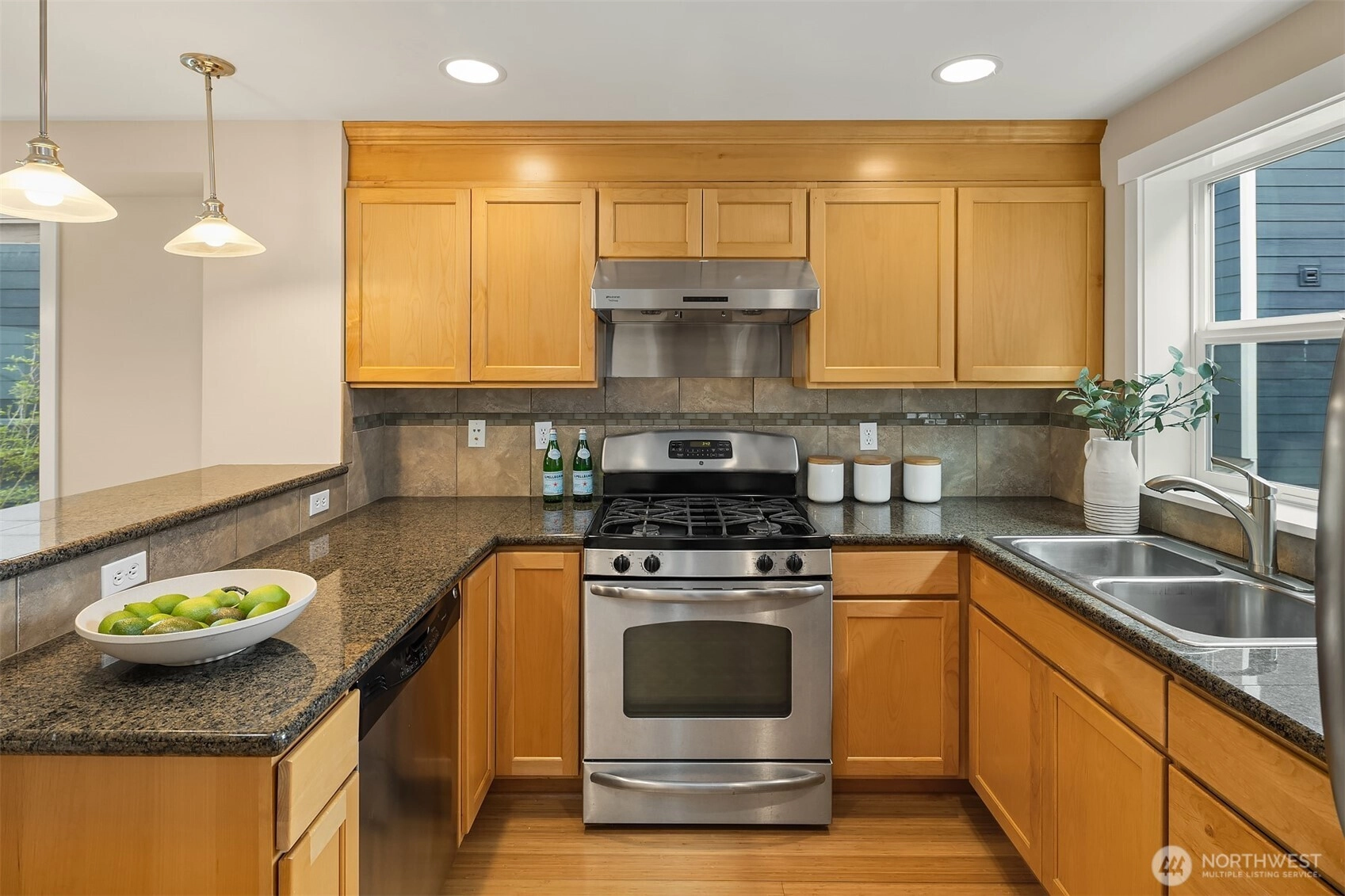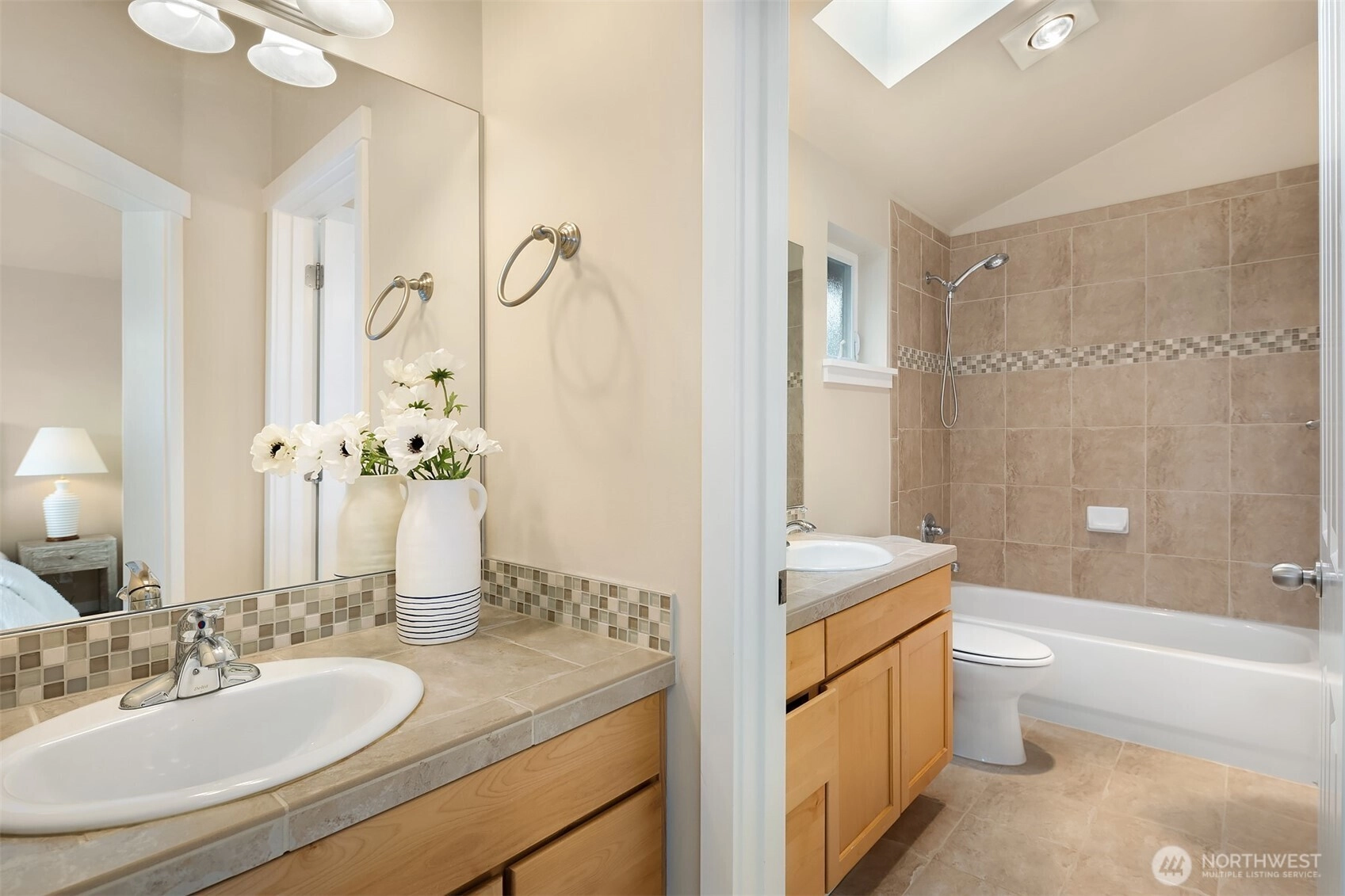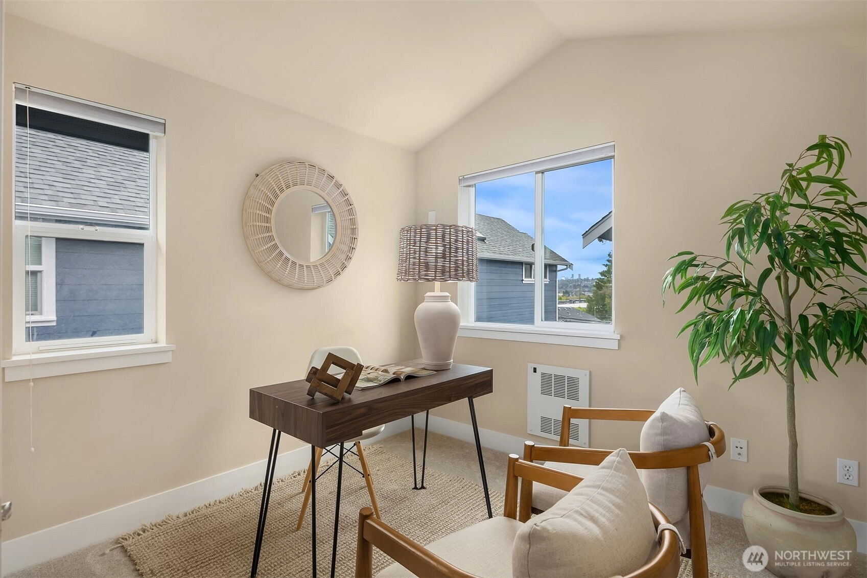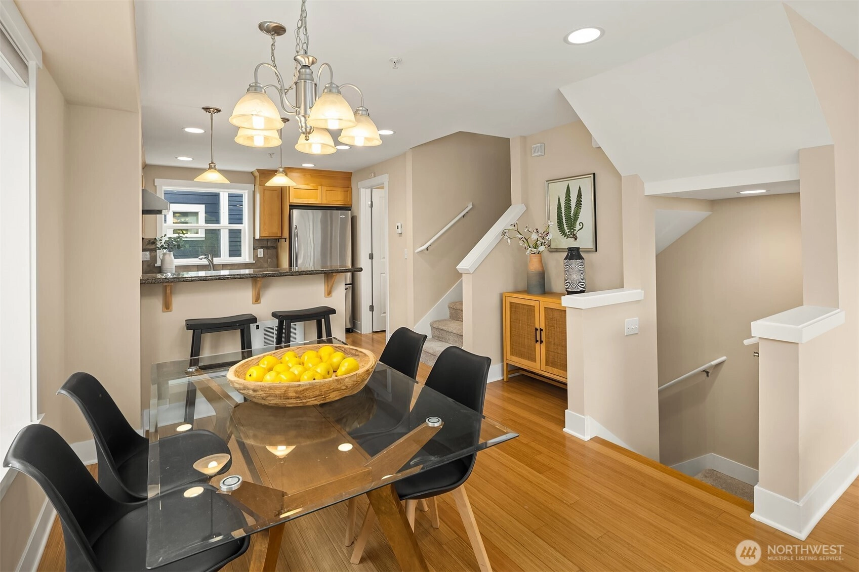 Beautifully crafted end-unit townhome tucked away in a serene setting in the heart of Ballard. Sunlit open-concept main floor showcases living room w/cozy gas fireplace & balcony, flowing to dining area & chef’s kitchen w/breakfast bar, granite countertops & gas range. Upstairs offers 2 bedrooms w/vaulted ceilings, skylight & well-appointed full bath w/dual vanities. Entry level features spacious guest bedroom w/ full bath & laundry room. Enjoy fully fenced private backyard & oversized 1-car attached garage w/ample storage. Recent updates include new carpet, fresh exterior & interior wall paint & new composite deck. Short stroll to SLU & DT Seattle. Steps away from parks, grocery stores, gyms, restaurants & everything Ballard has to offer.