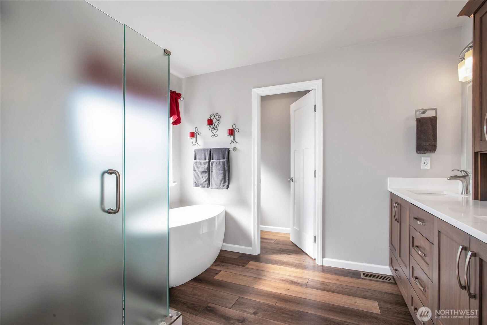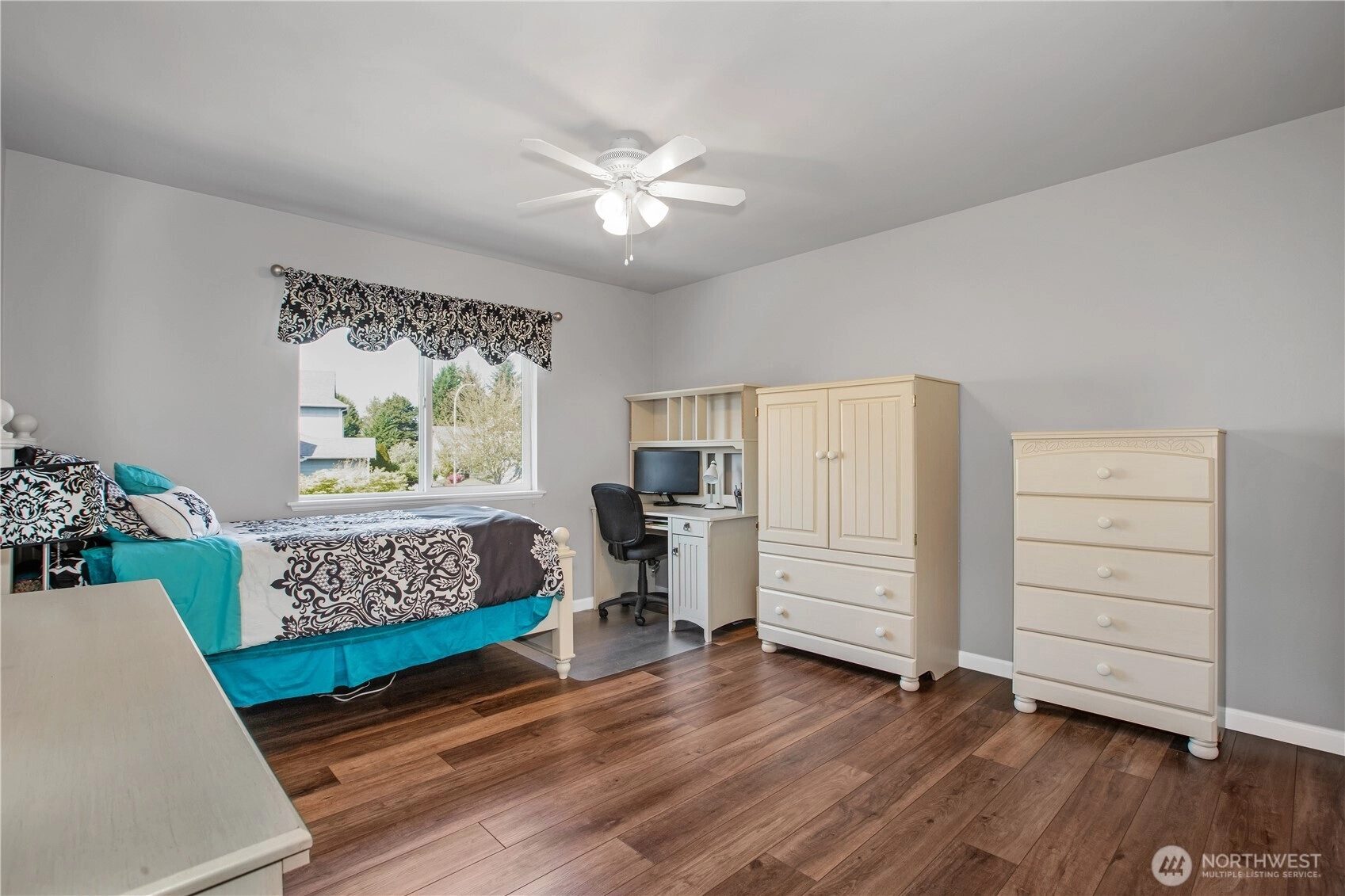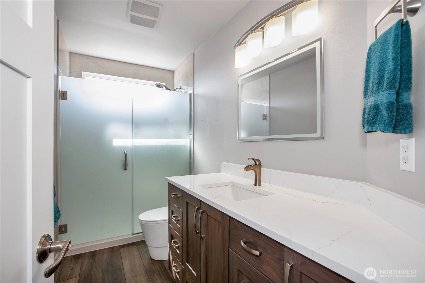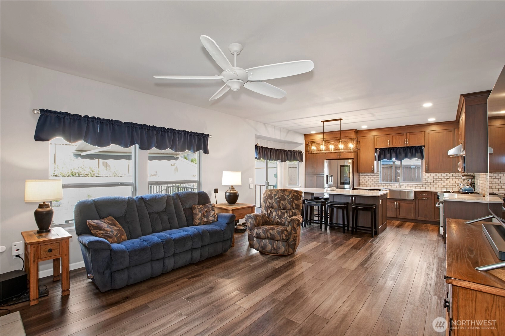 Welcome to this spacious 5-bed, 2.5-bath home with cathedral ceilings in the living and dining rooms and LVP flooring throughout. The open-concept kitchen features walnut soft-close cabinets, quartz counters with seating for 7, SS appliances, and flows into a cozy great room with a gas fireplace. A downstairs bedroom sits next to a large utility room—ideal for guests or a home office. Upstairs, enjoy a roomy primary en-suite with a soaking tub and walk-in closet, plus 3 more bedrooms. Entertain in the backyard oasis w/ Trex decking and aluminum rails, a hot tub with a retractable awning, and low-maintenance artificial turf in the front & back yards. Motivated Sellers. Pre-inspection report available