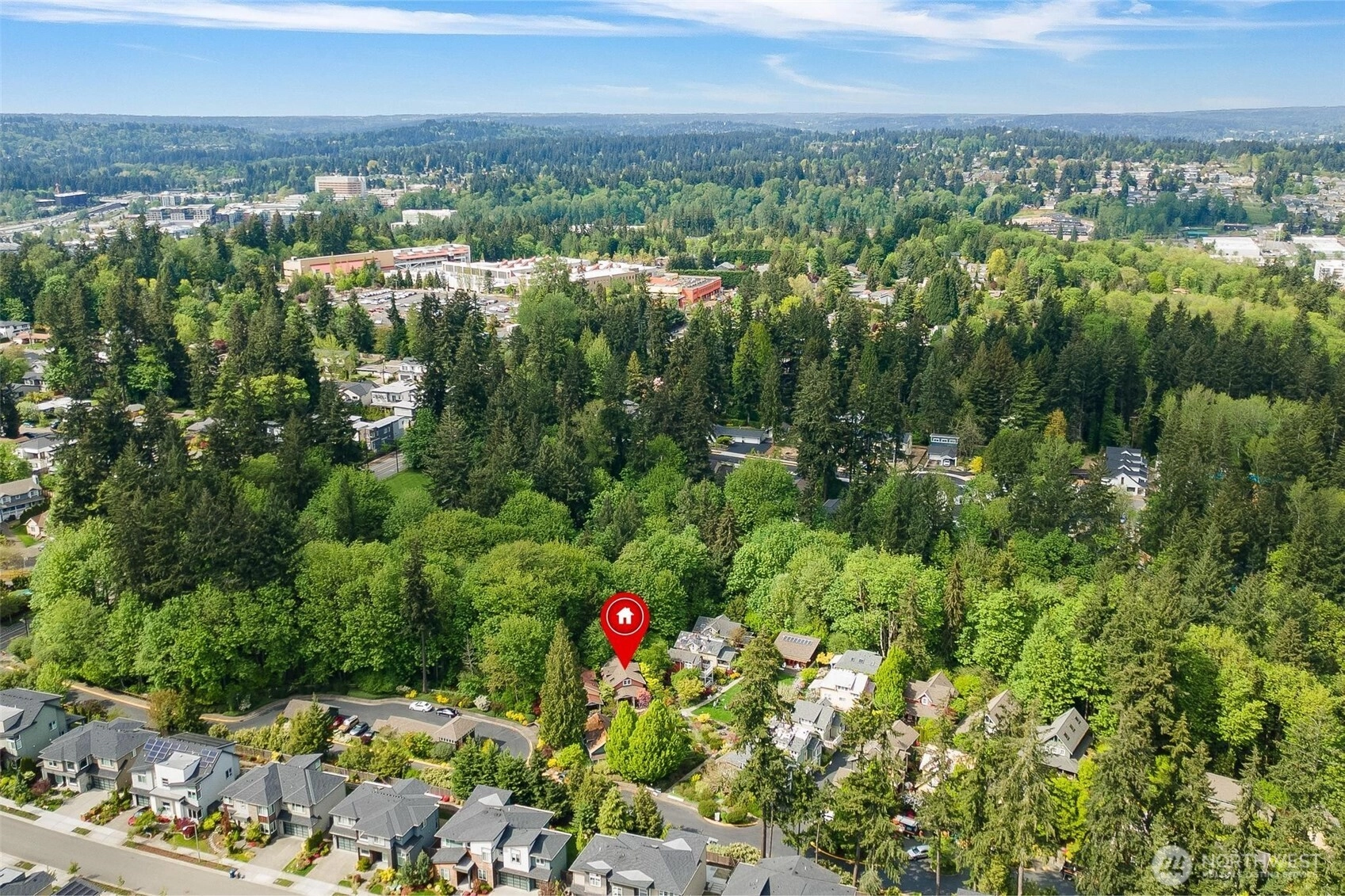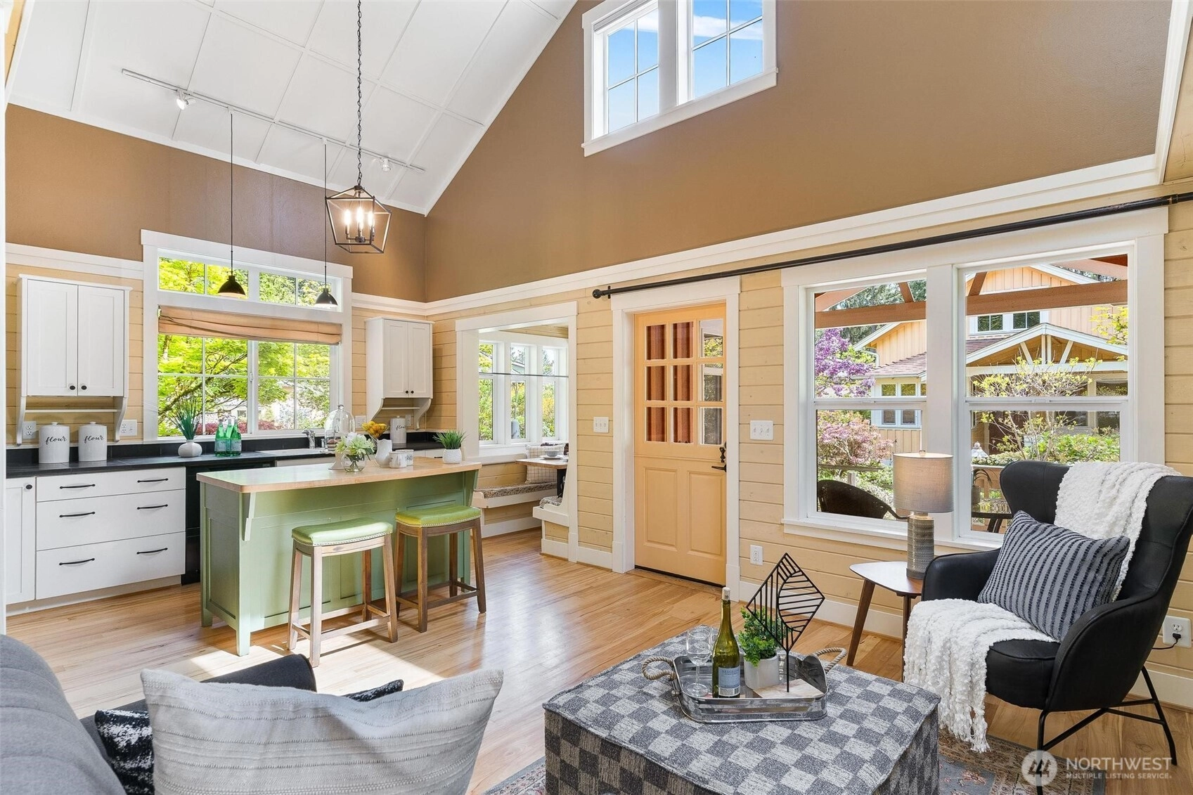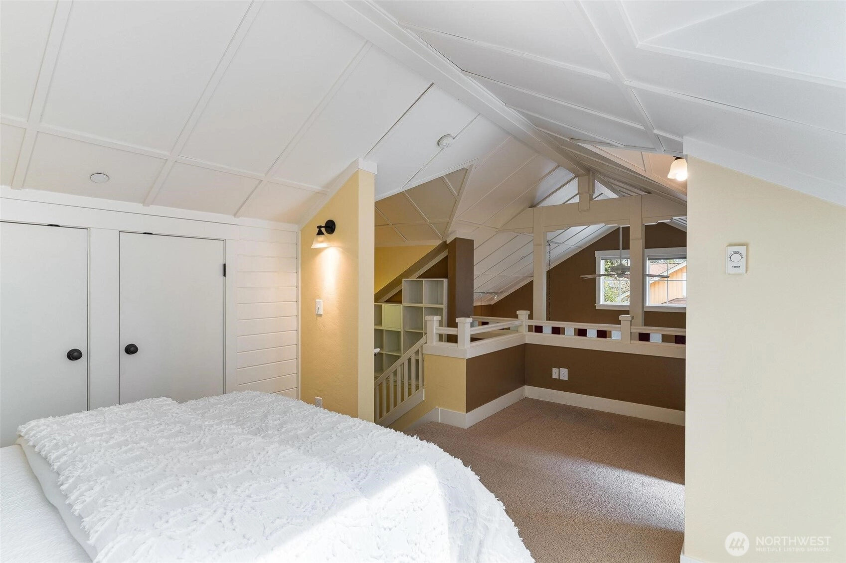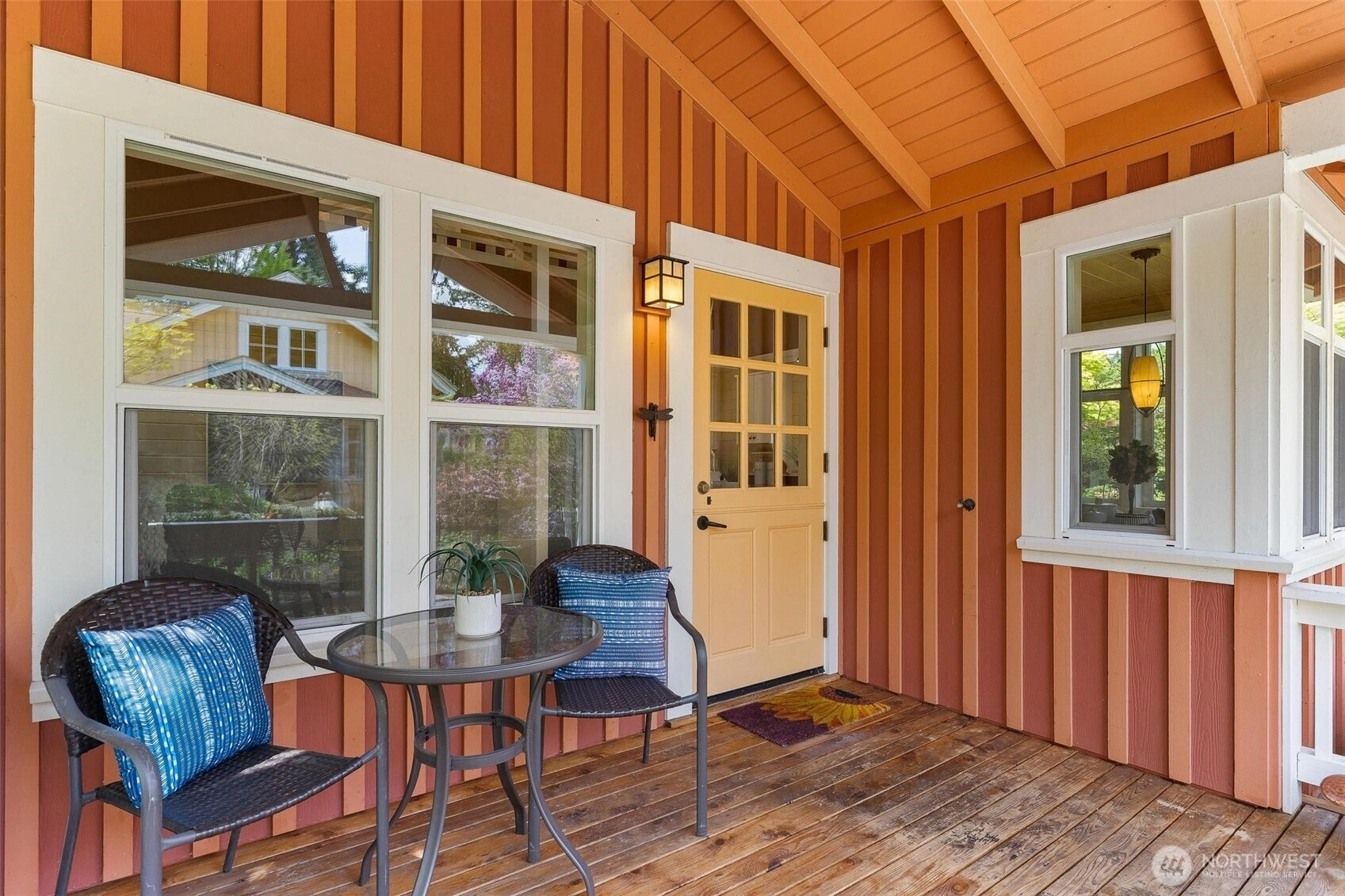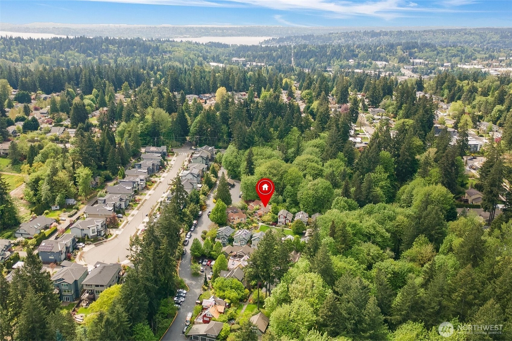 Conover Commons Cottages – Peaceful, private, and just minutes to Kirkland, Redmond, Microsoft, and nearby trails. Backing nearly 5 acres of protected woodland, this cottage blends charm with thoughtful updates. The main floor offers a bedroom, full bath, walk-in closet and a slider that opens to a private deck with tranquil forest views. The open kitchen features a maple island, Wolf range, matte granite counters, and stainless steel appliances. A cozy living room is flanked by a gas fireplace, creating a warm and inviting atmosphere. Upstairs, a spacious loft serves as a second bedroom with its own ¾ bathroom—perfect for guests or a home office. Enjoy the storybook front porch, lush gardens, and low-maintenance landscaping.